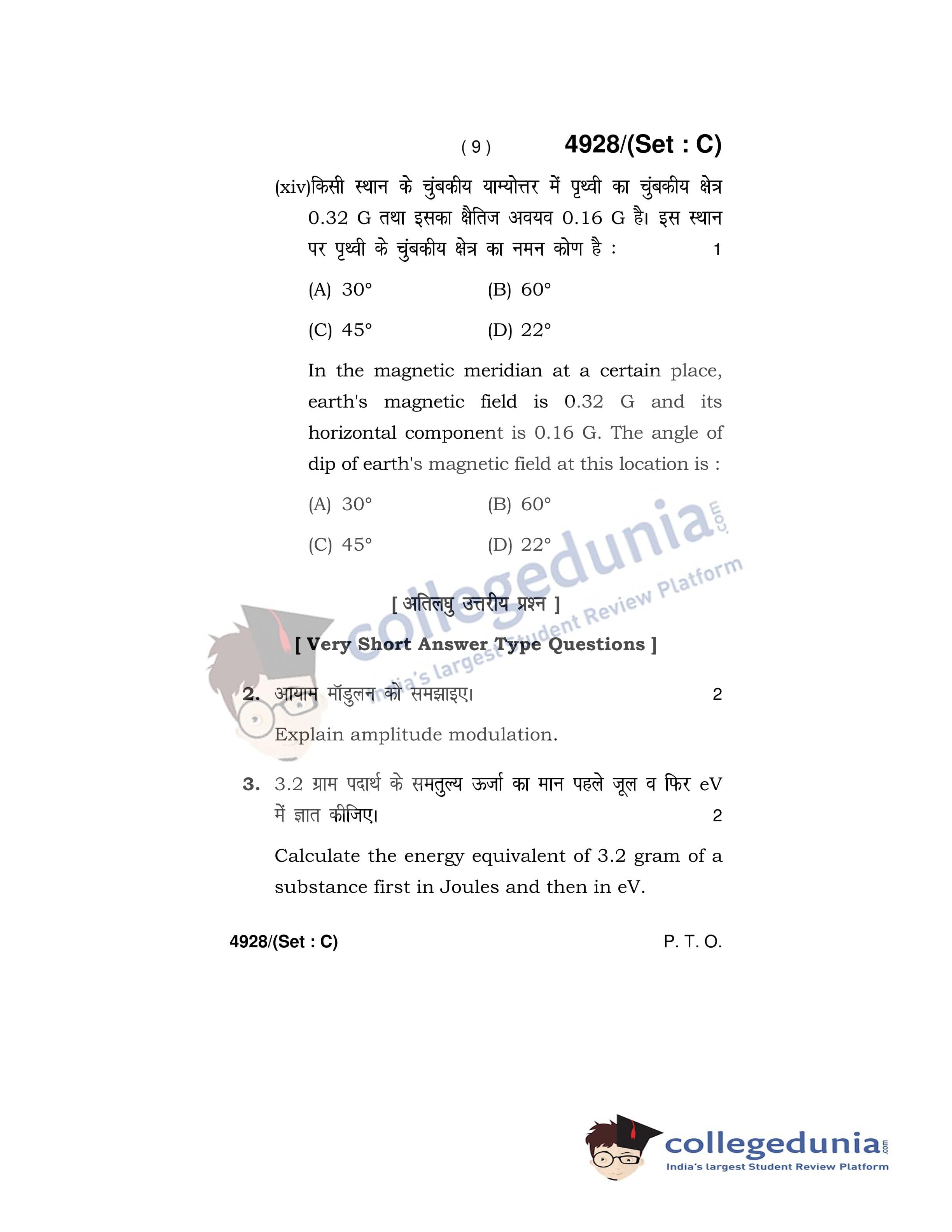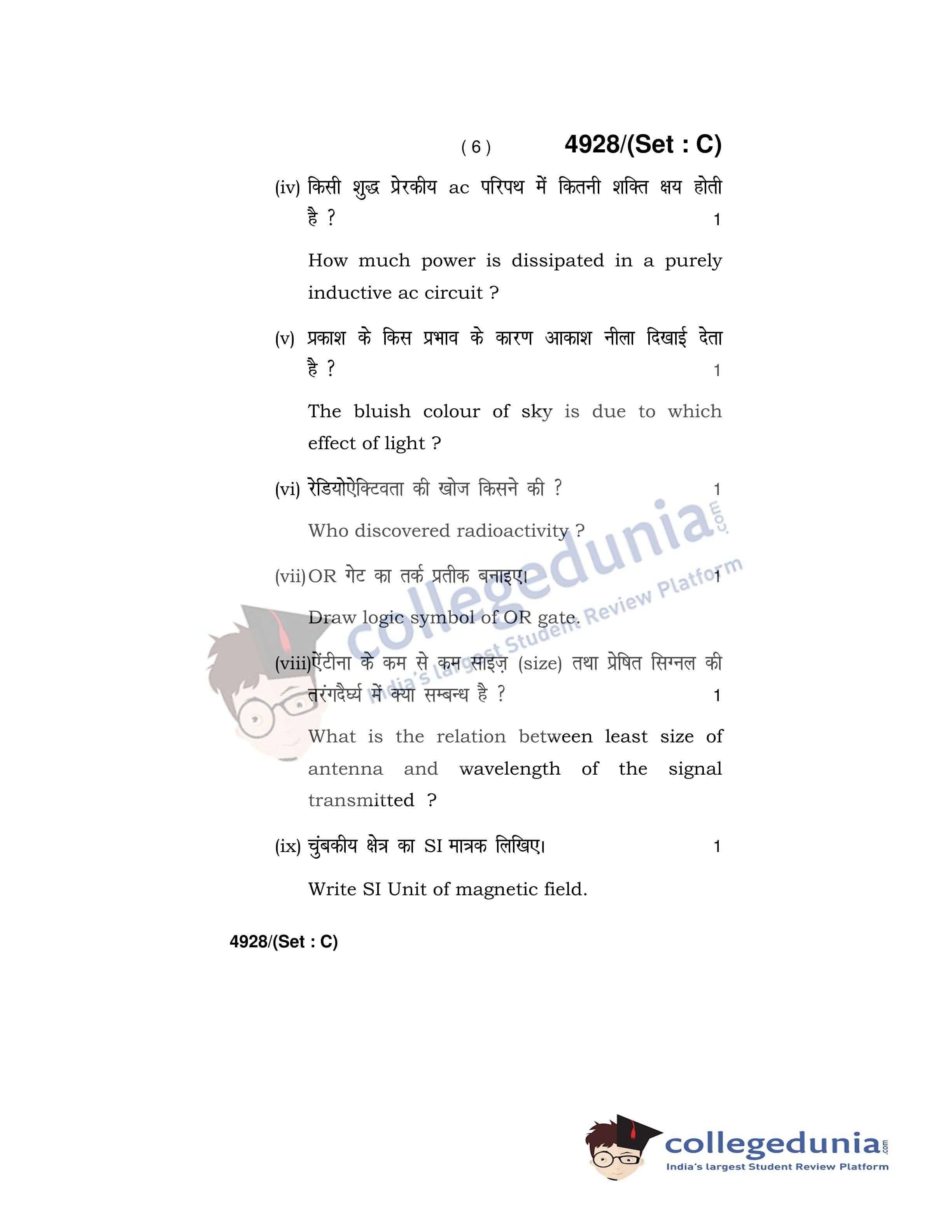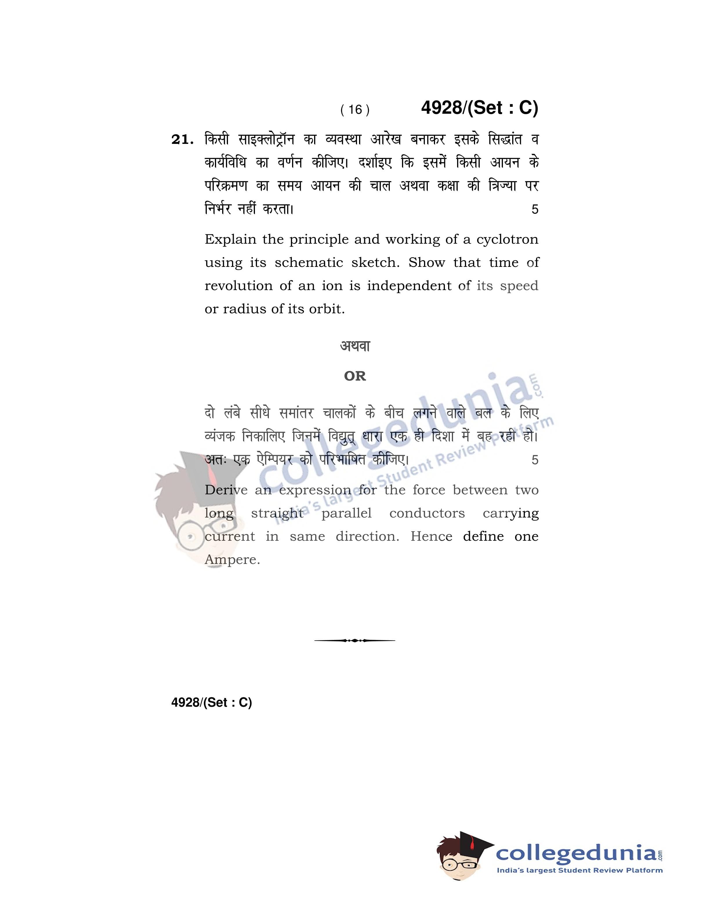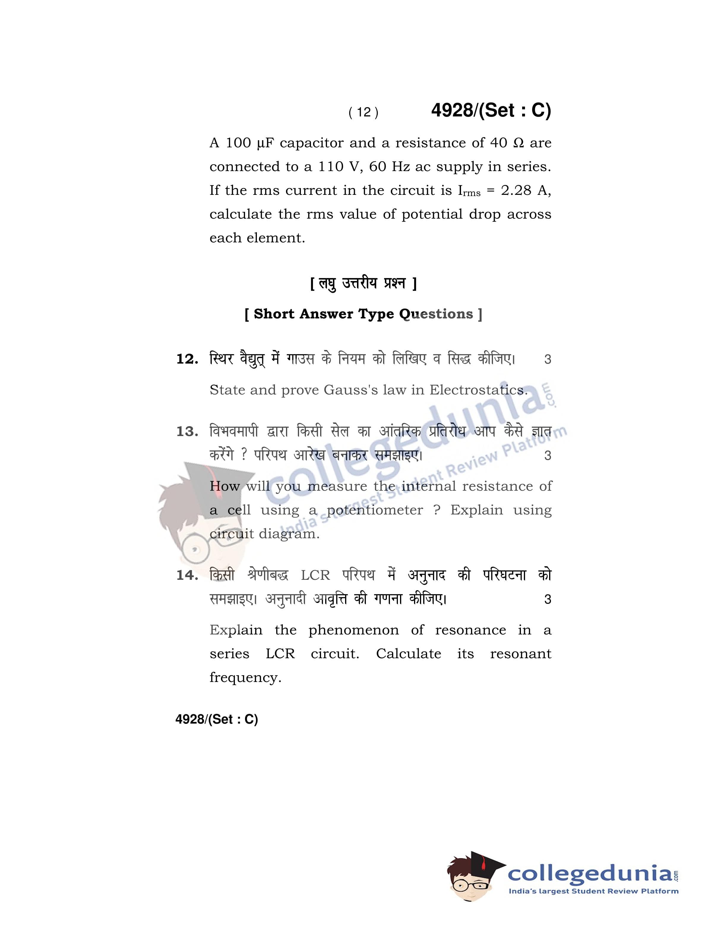 HBSE Class 12 Physics Set C Question Paper 2020 with Answer Key (March 5)
