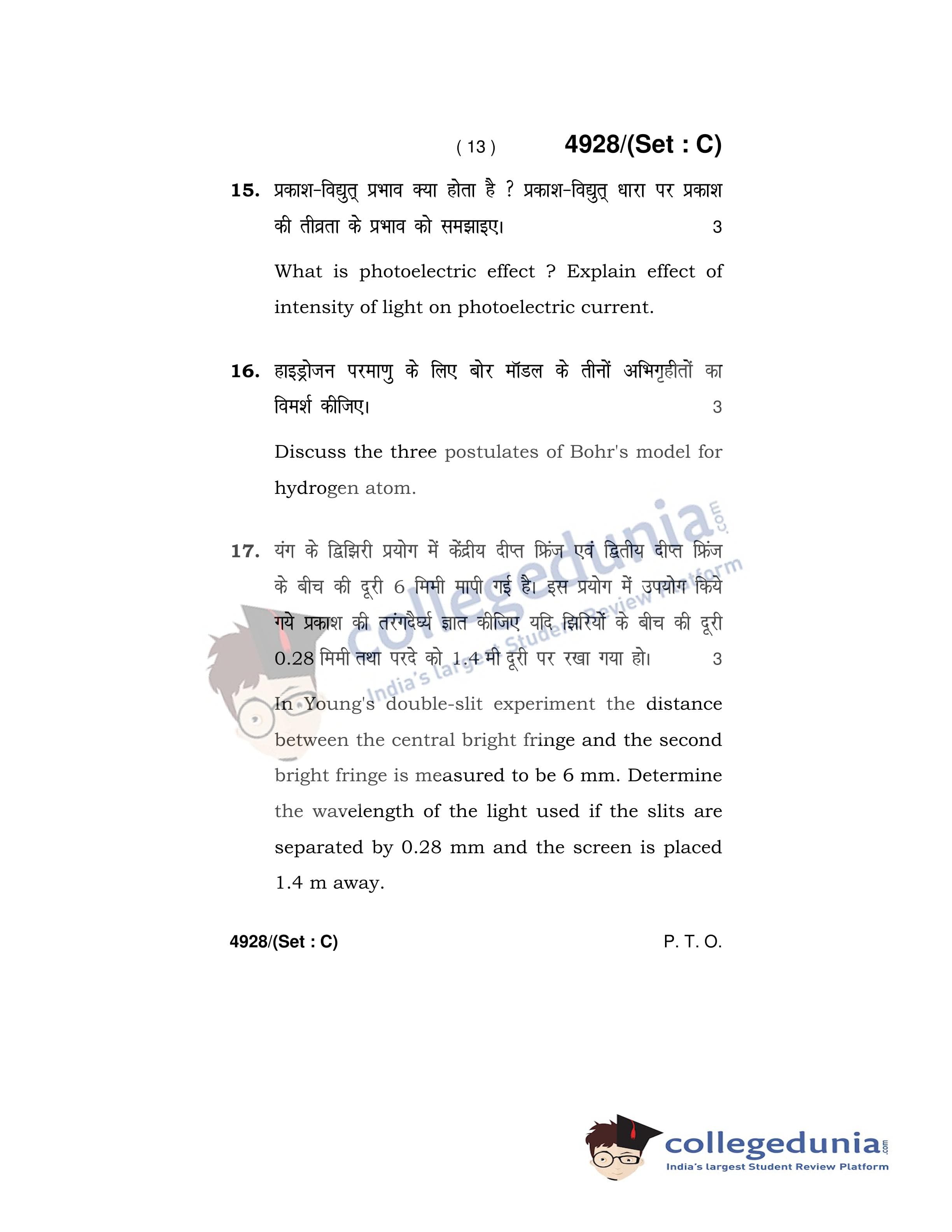 HBSE Class 12 Physics Question Paper 2020 with Answer Key Set C is available for download. The exam was conducted by the Board of School Education Haryana on March 5, 2020 in the Afternoon Session 12:30 PM to 3:30 PM. The medium of paper was English and Hindi. The question paper comprised a total of 21 questions.
