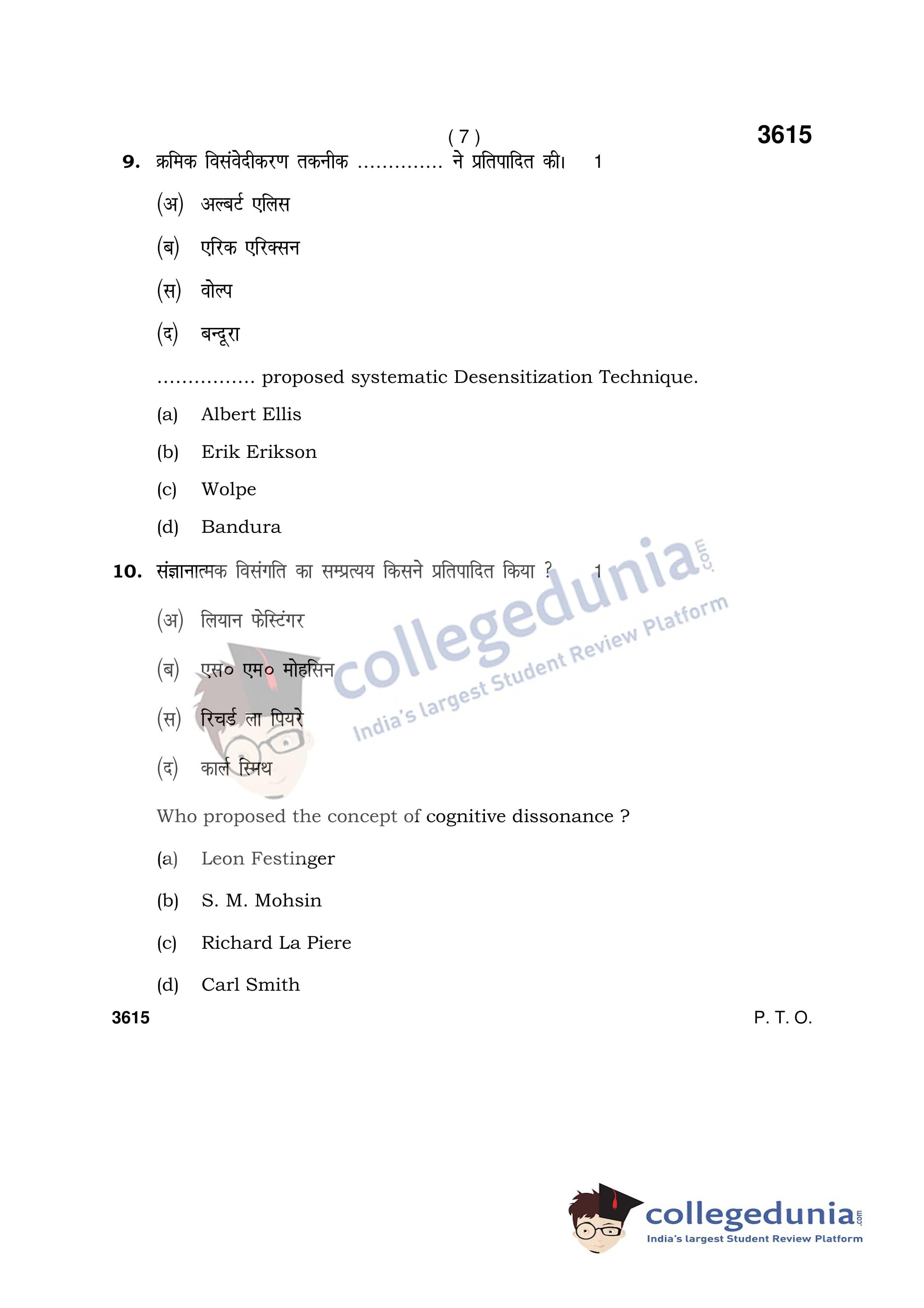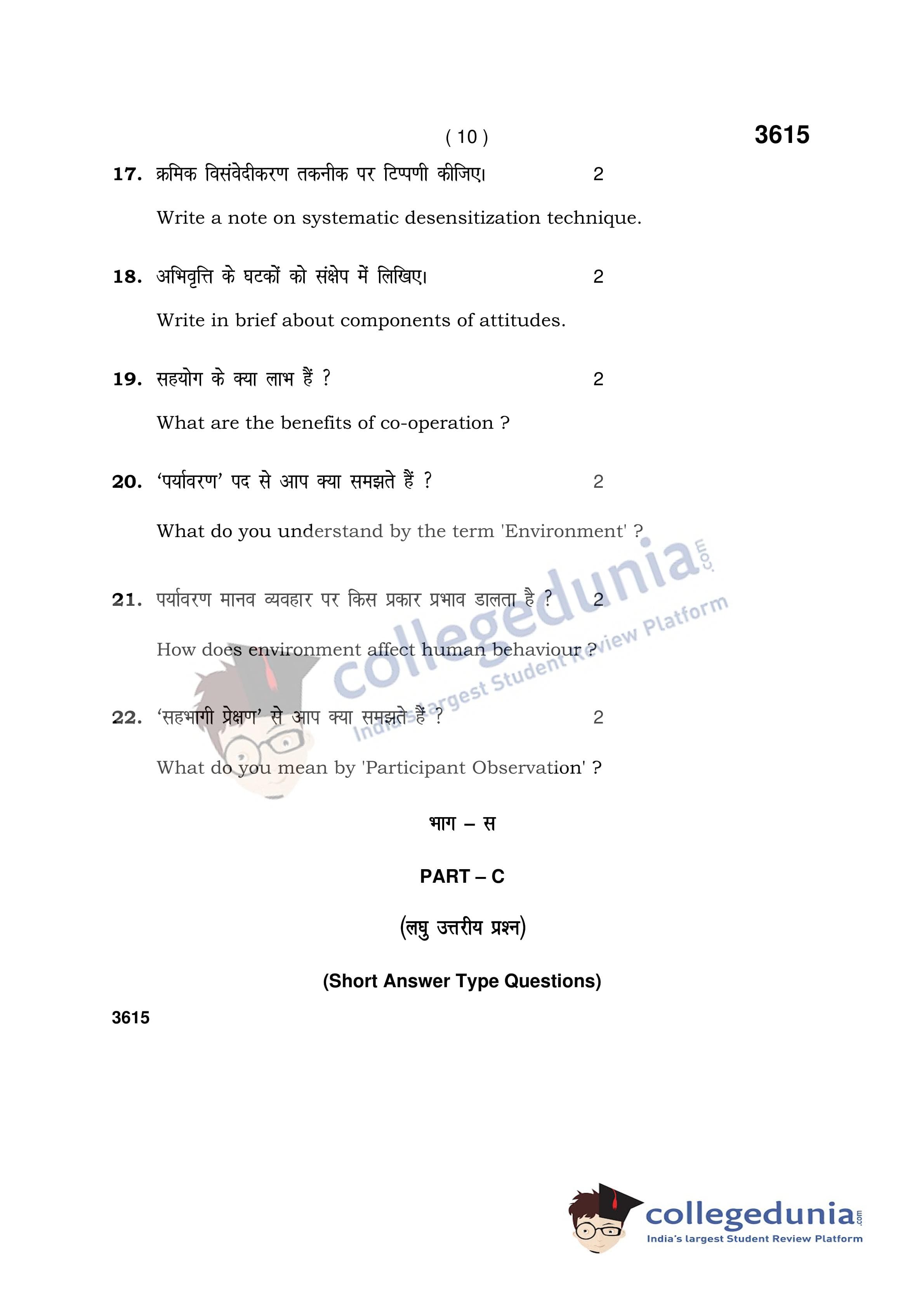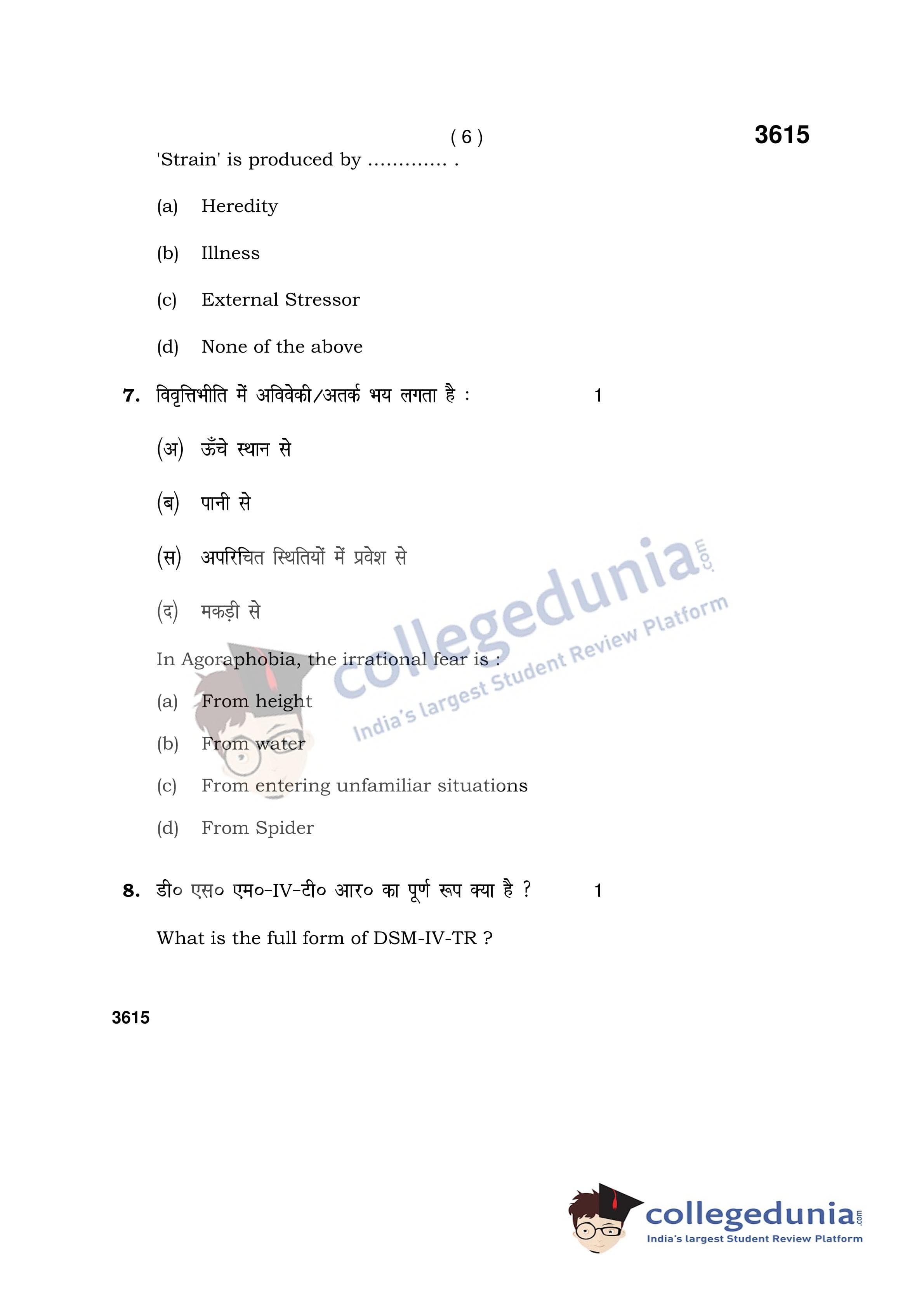 HBSE Class 12 Psychology Question Paper 2018 with Answer Key (March 30)