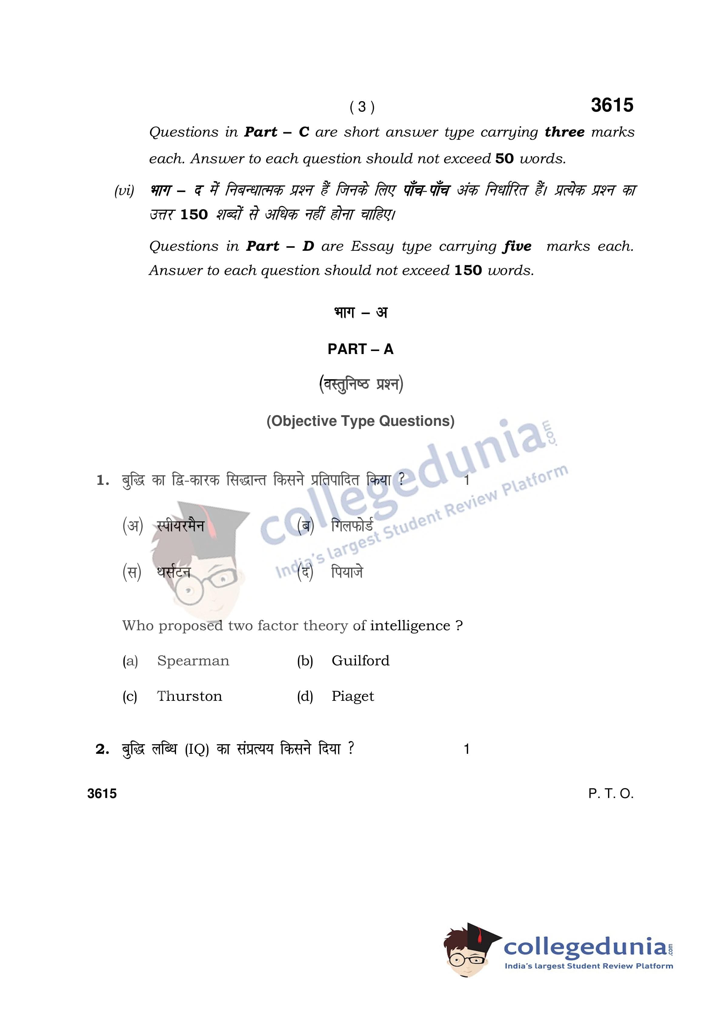 HBSE Class 12 Psychology Question Paper 2018 with Answer Key is available for download. The exam was conducted by the Board of School Education Haryana on March 30, 2018 in the Afternoon Session 12:30 PM to 3:30 PM. The medium of paper was English and Hindi. The question paper comprised a total of 30 questions.