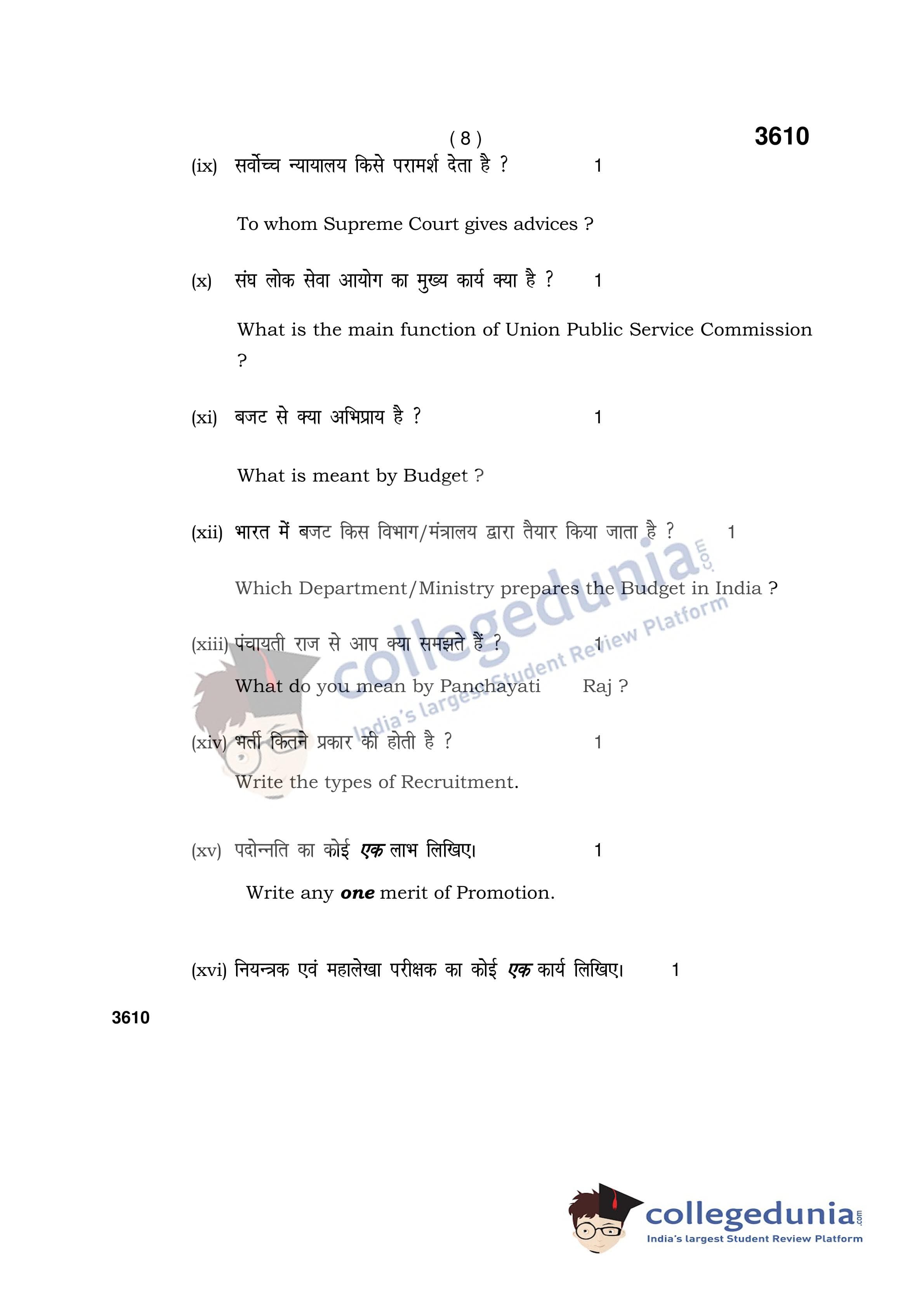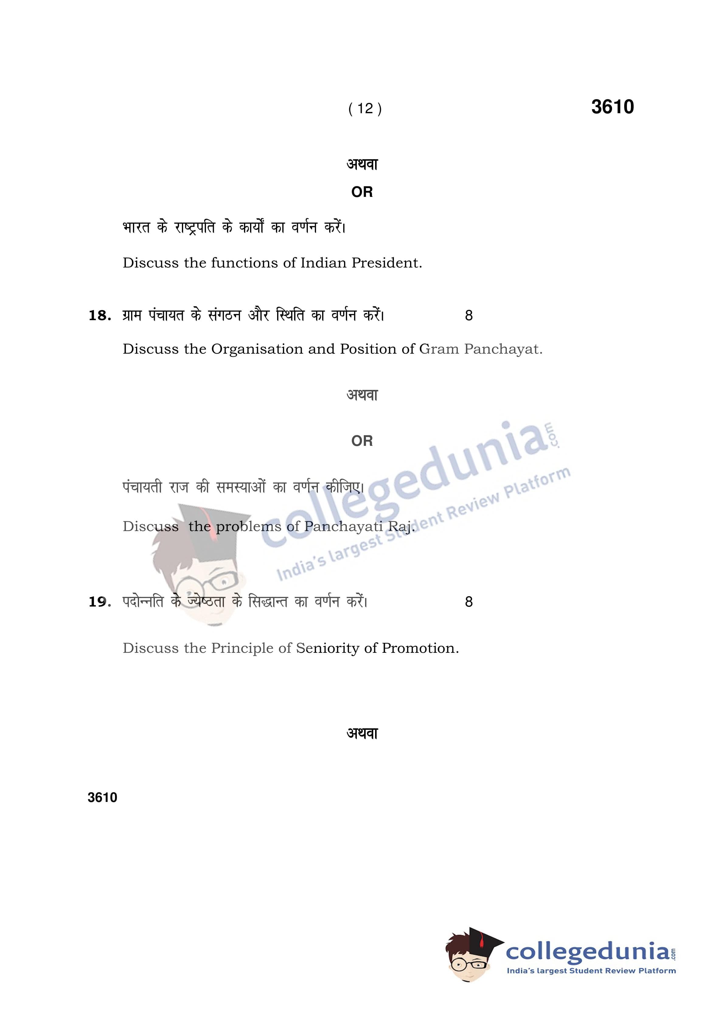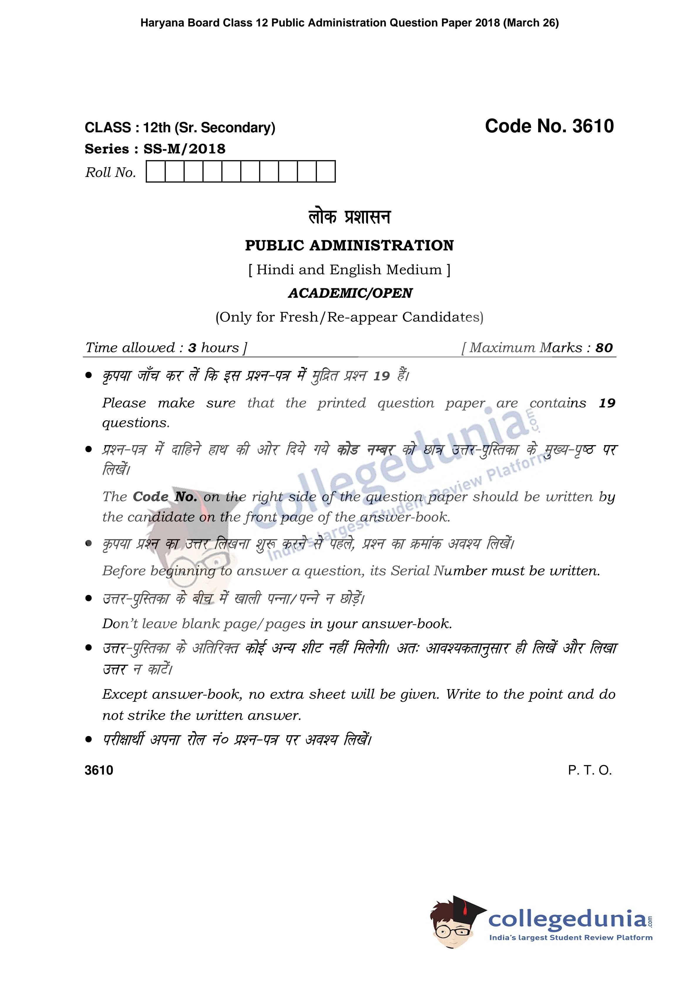 HBSE Class 12 Public Administration Question Paper 2018 with Answer Key (March 26)