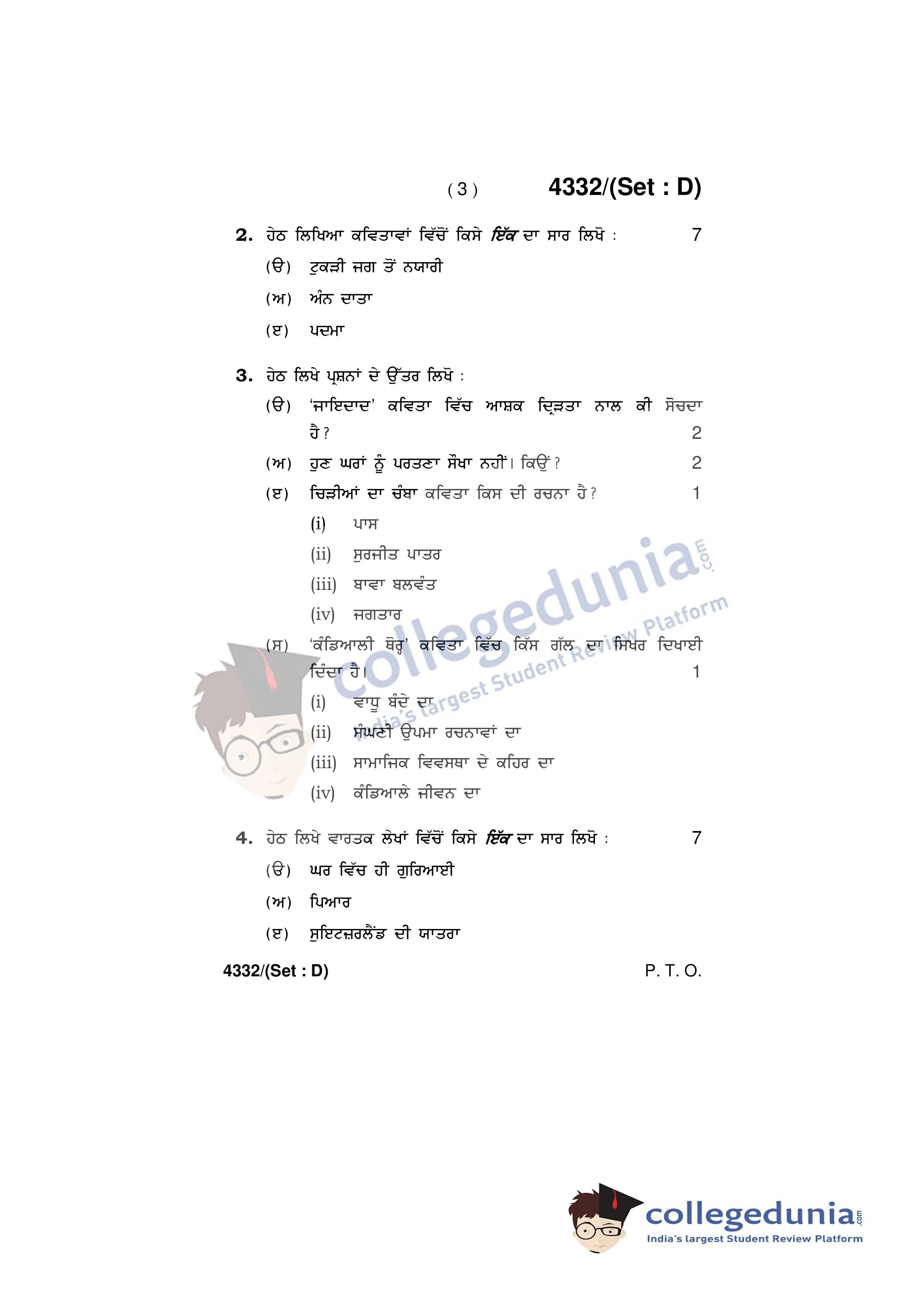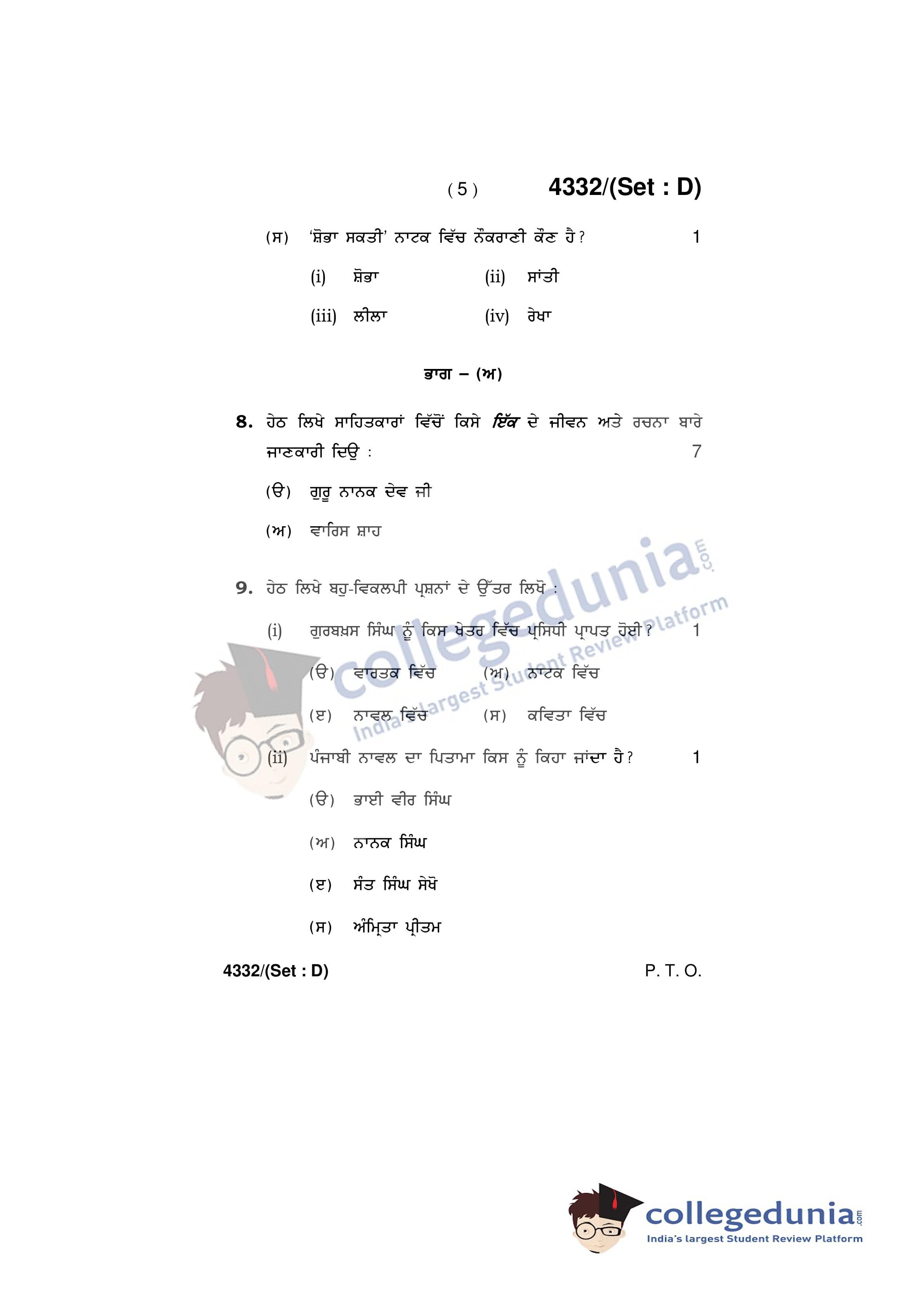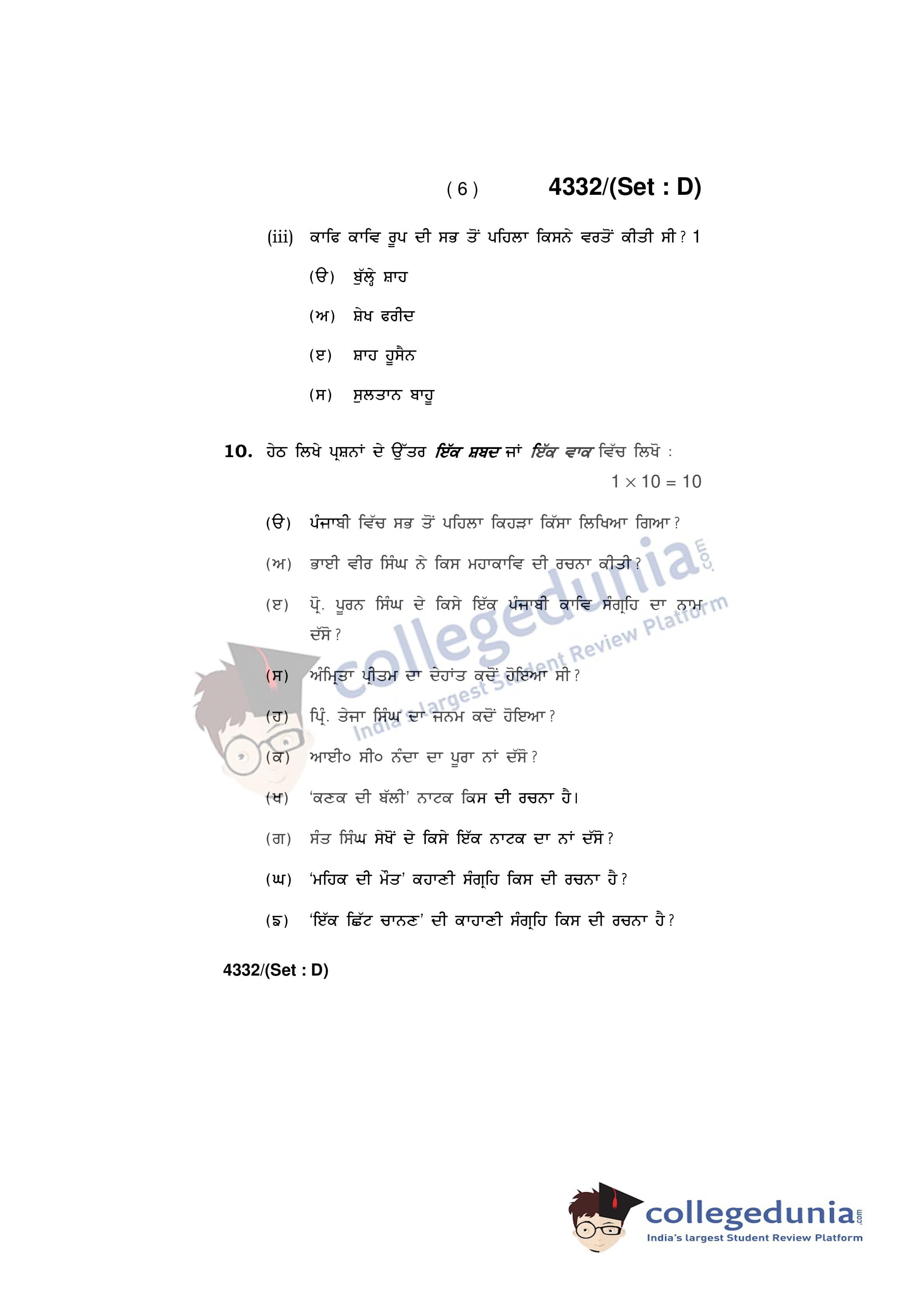 HBSE Class 12 Punjabi Set D Question Paper 2019 with Answer Key (March 25)