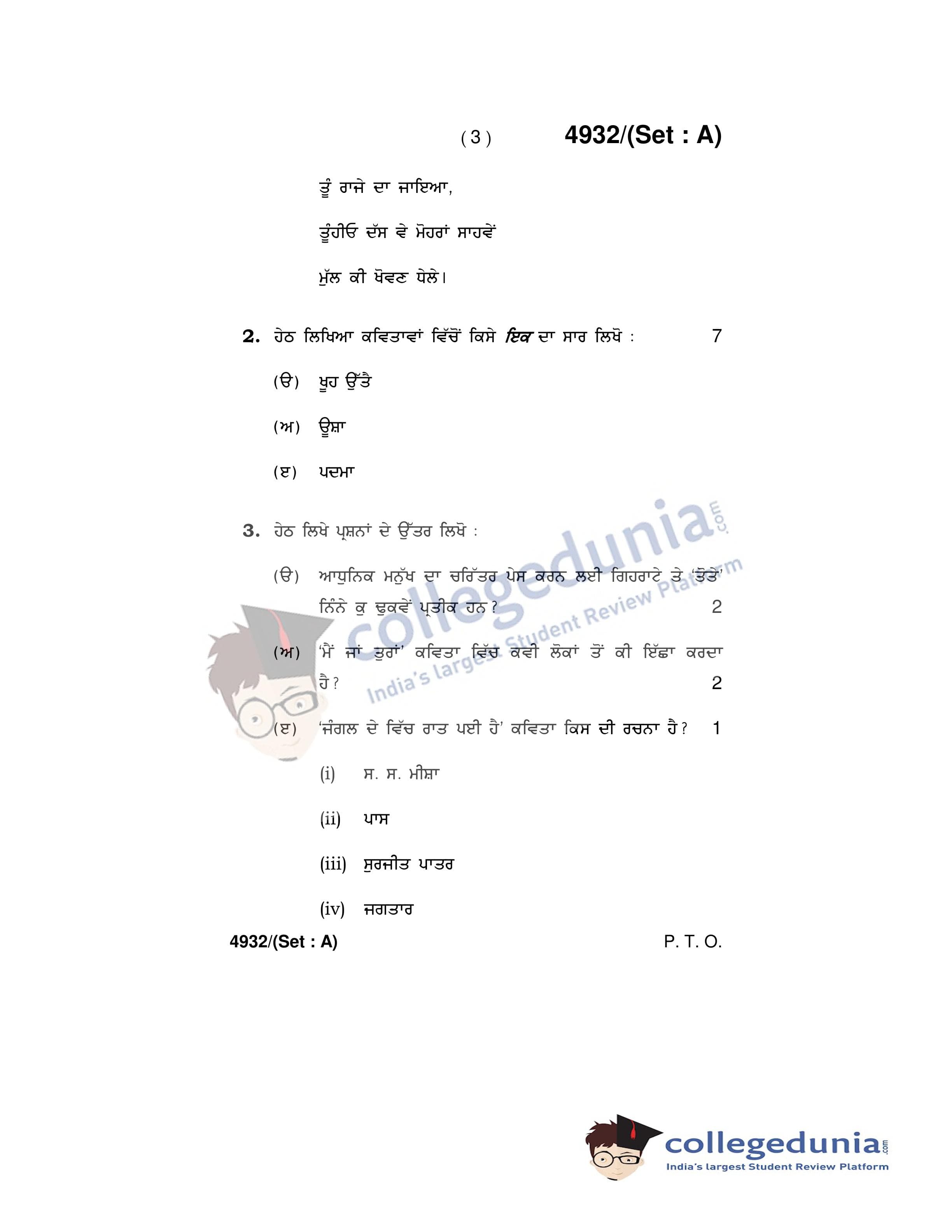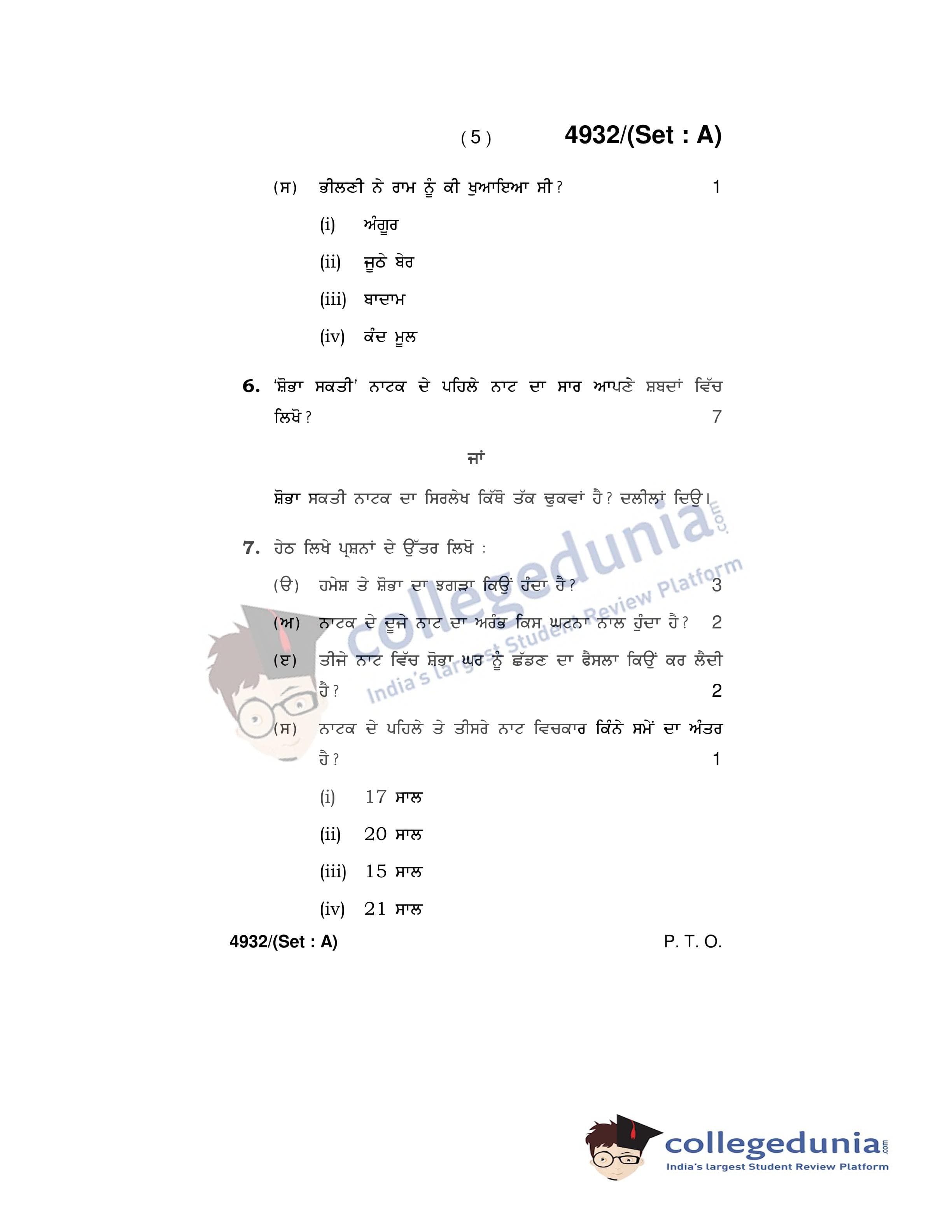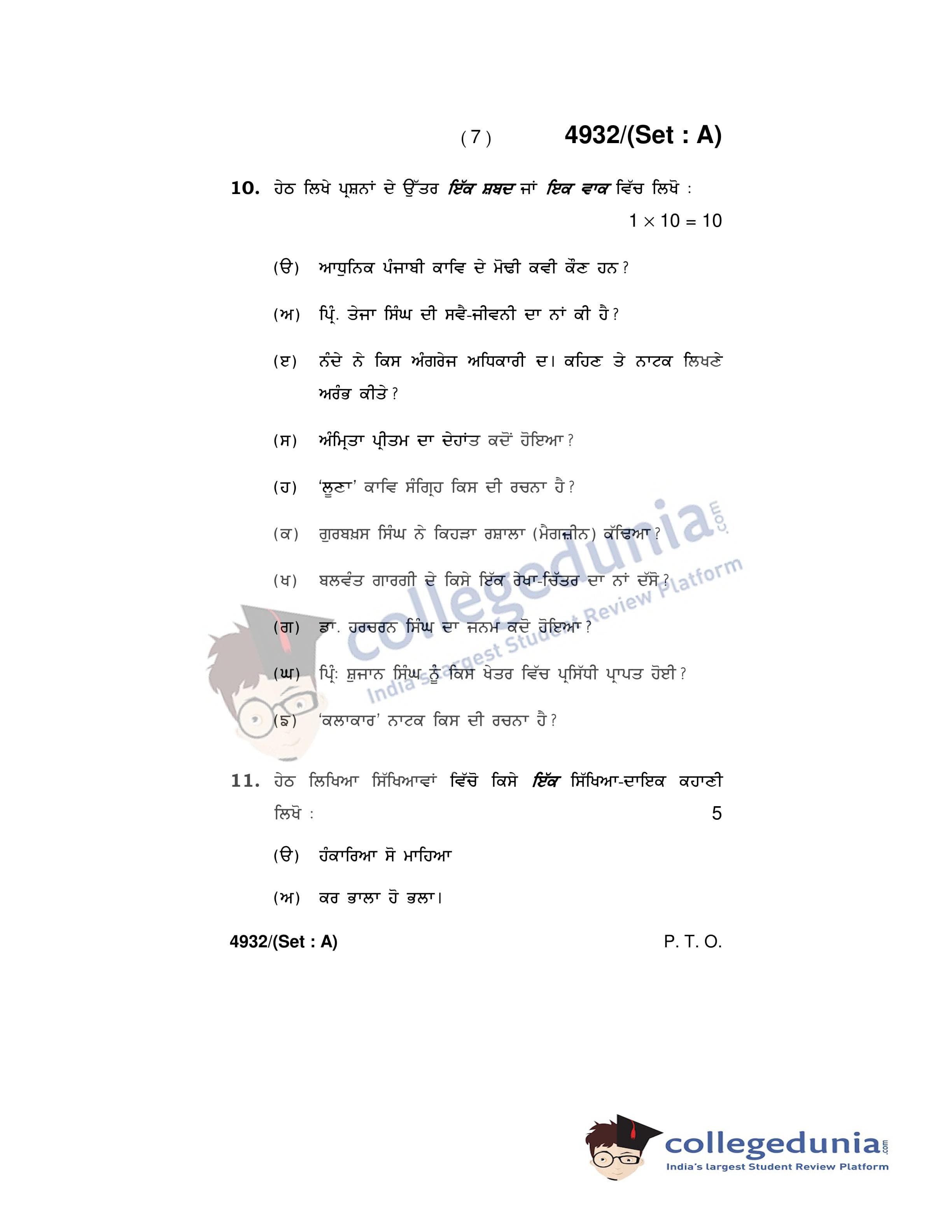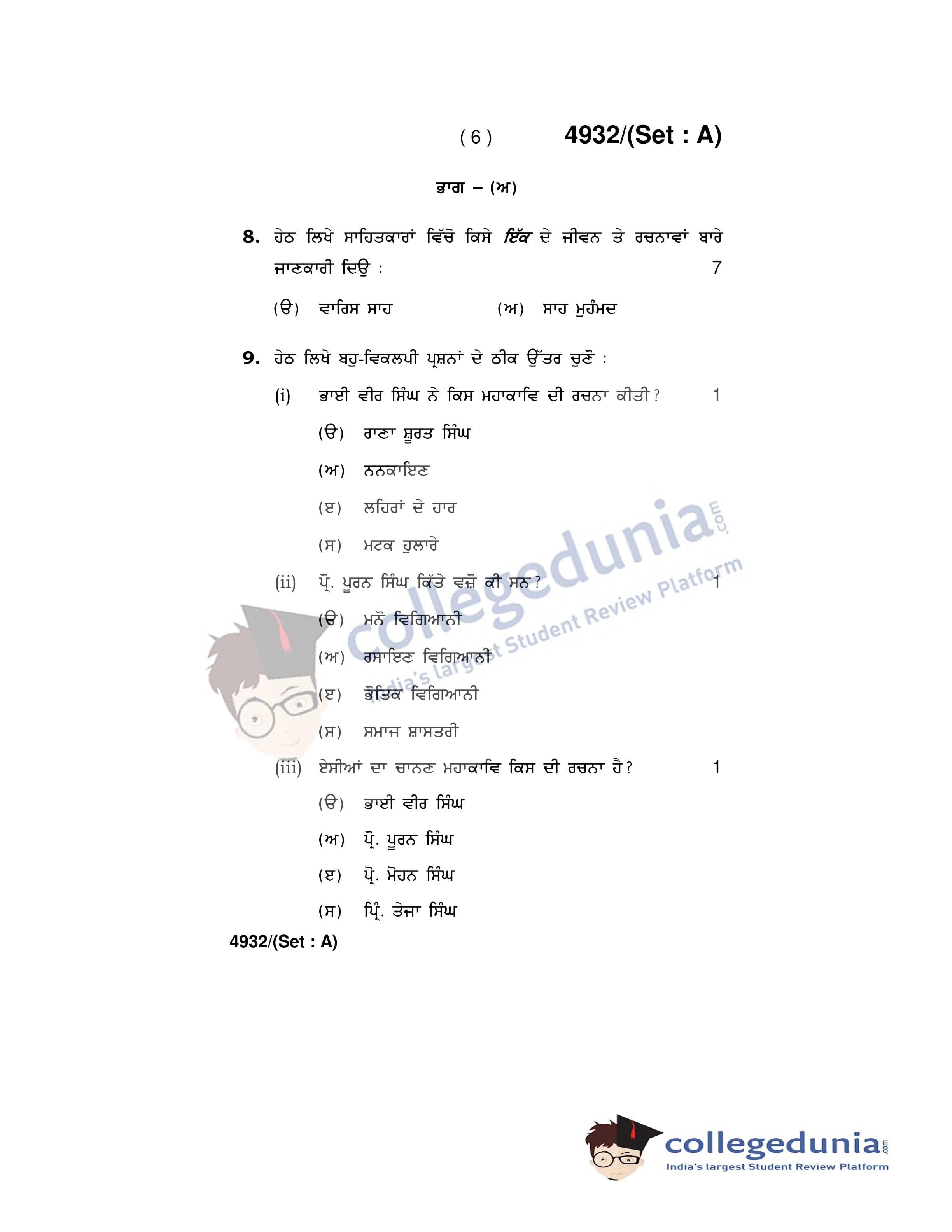 HBSE Class 12 Punjabi Set A Question Paper 2020 with Answer Key (March 18)