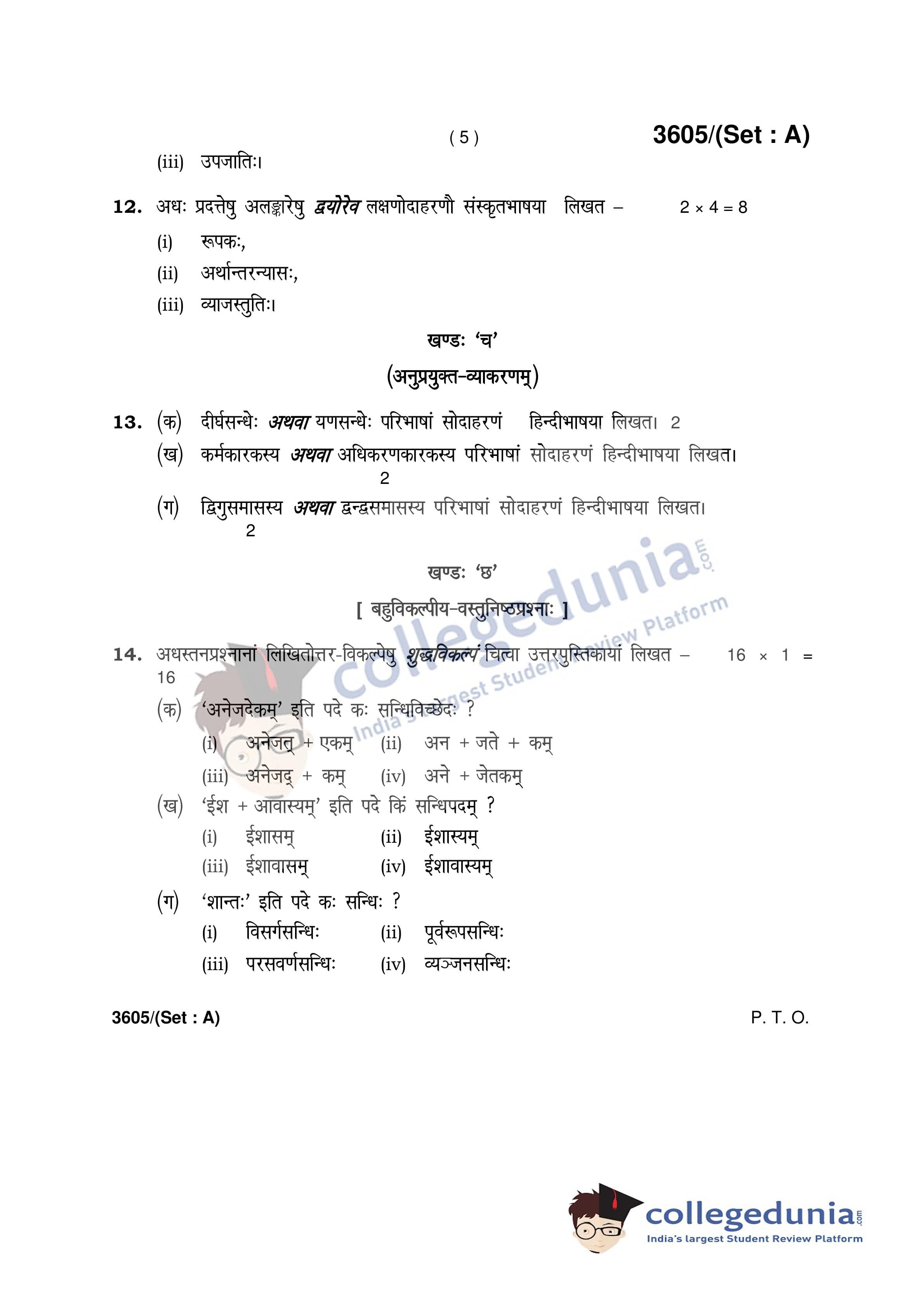HBSE Class 12 Sanskrit Question Paper 2018 with Answer Key Set A is available for download. The exam was conducted by the Board of School Education Haryana on April 2, 2018 in the Afternoon Session 12:30 PM to 3:30 PM. The medium of paper was Sanskrit. The question paper comprised a total of 14 questions.