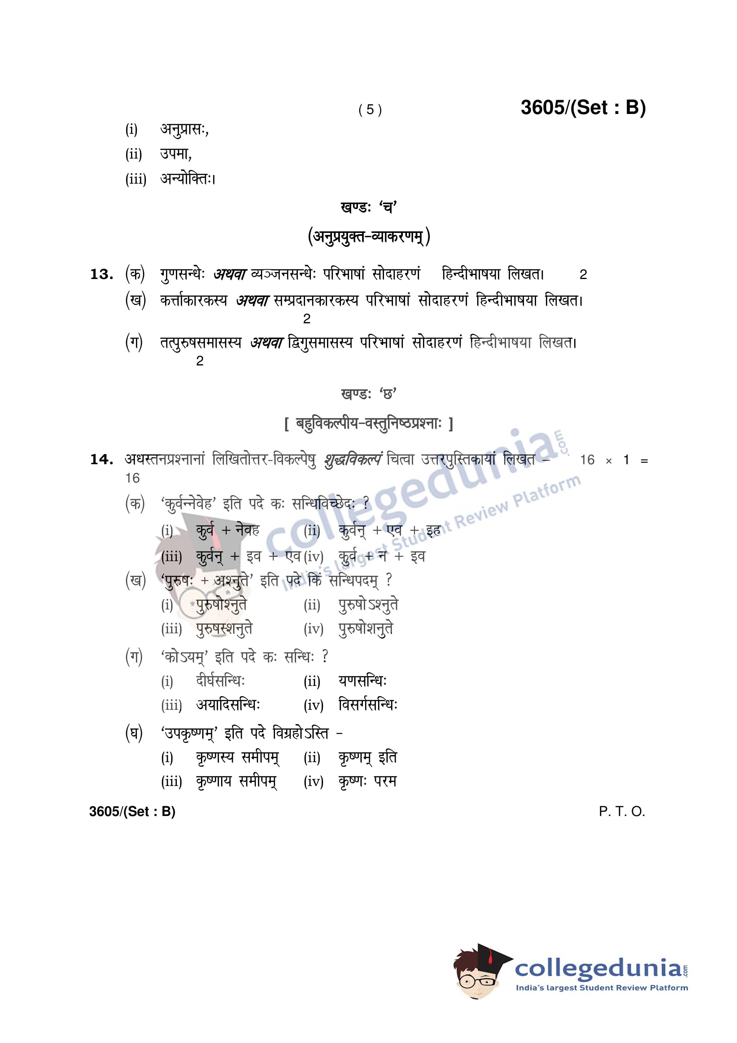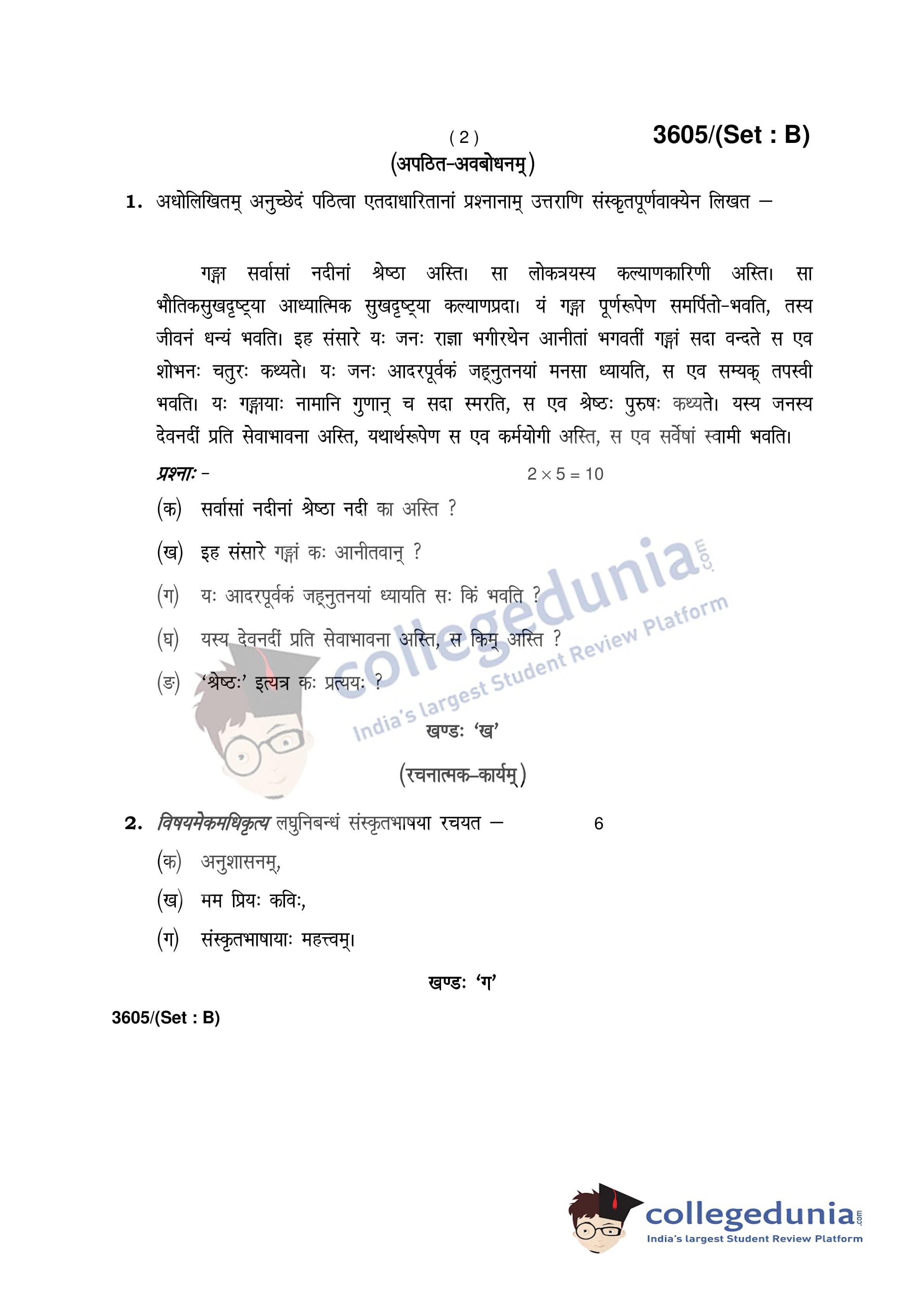 HBSE Class 12 Sanskrit Question Paper 2018 with Answer Key Set B is available for download. The exam was conducted by the Board of School Education Haryana on April 2, 2018 in the Afternoon Session 12:30 PM to 3:30 PM. The medium of paper was Sanskrit. The question paper comprised a total of 14 questions.