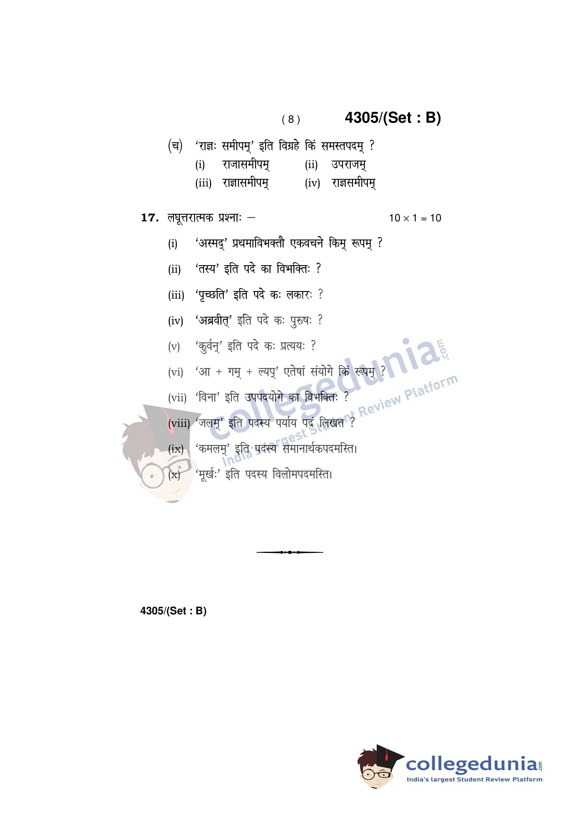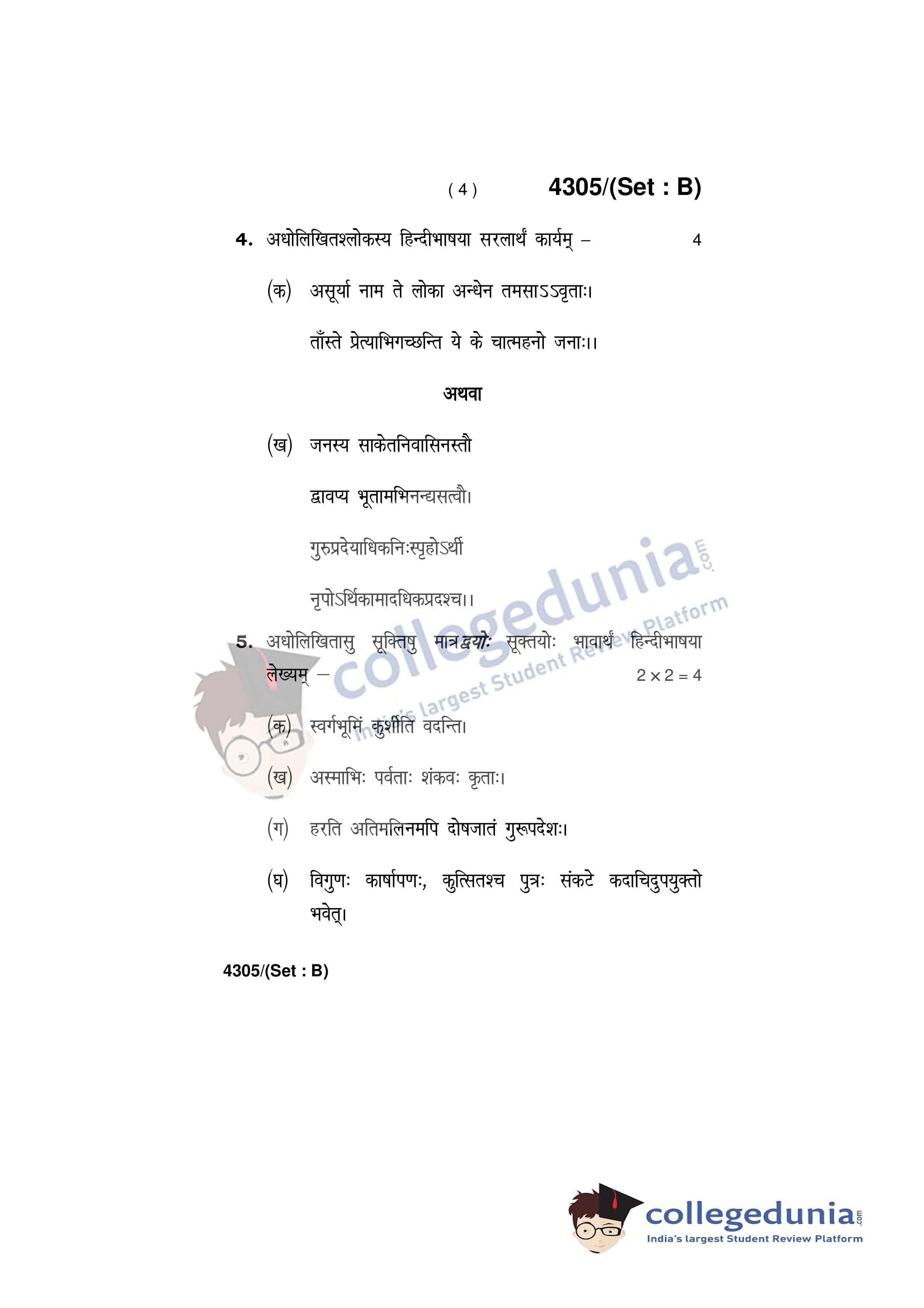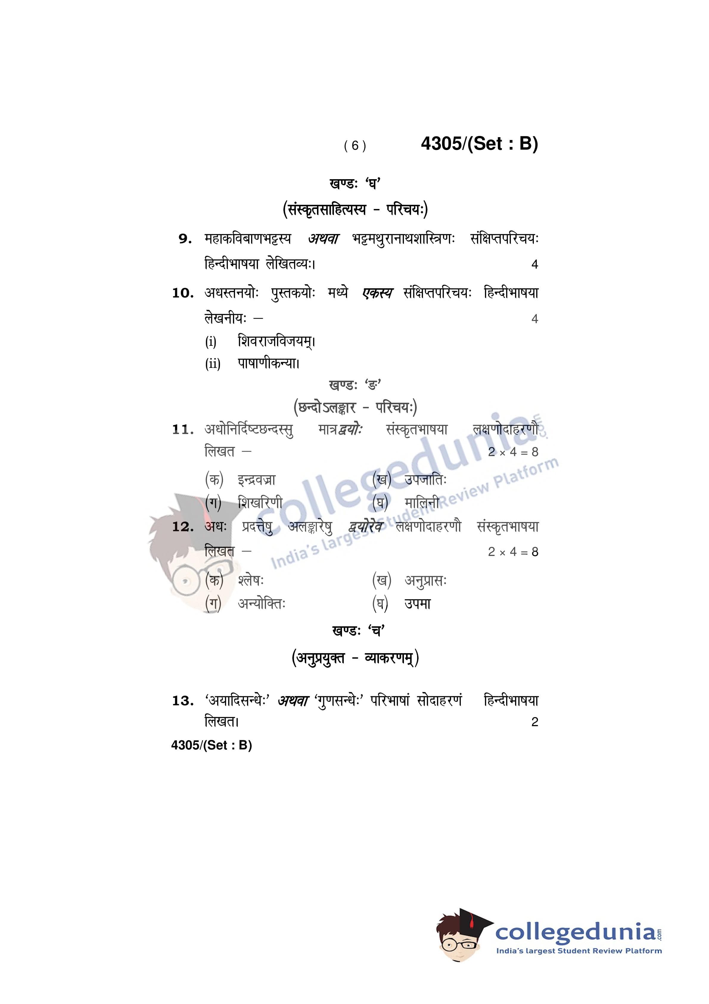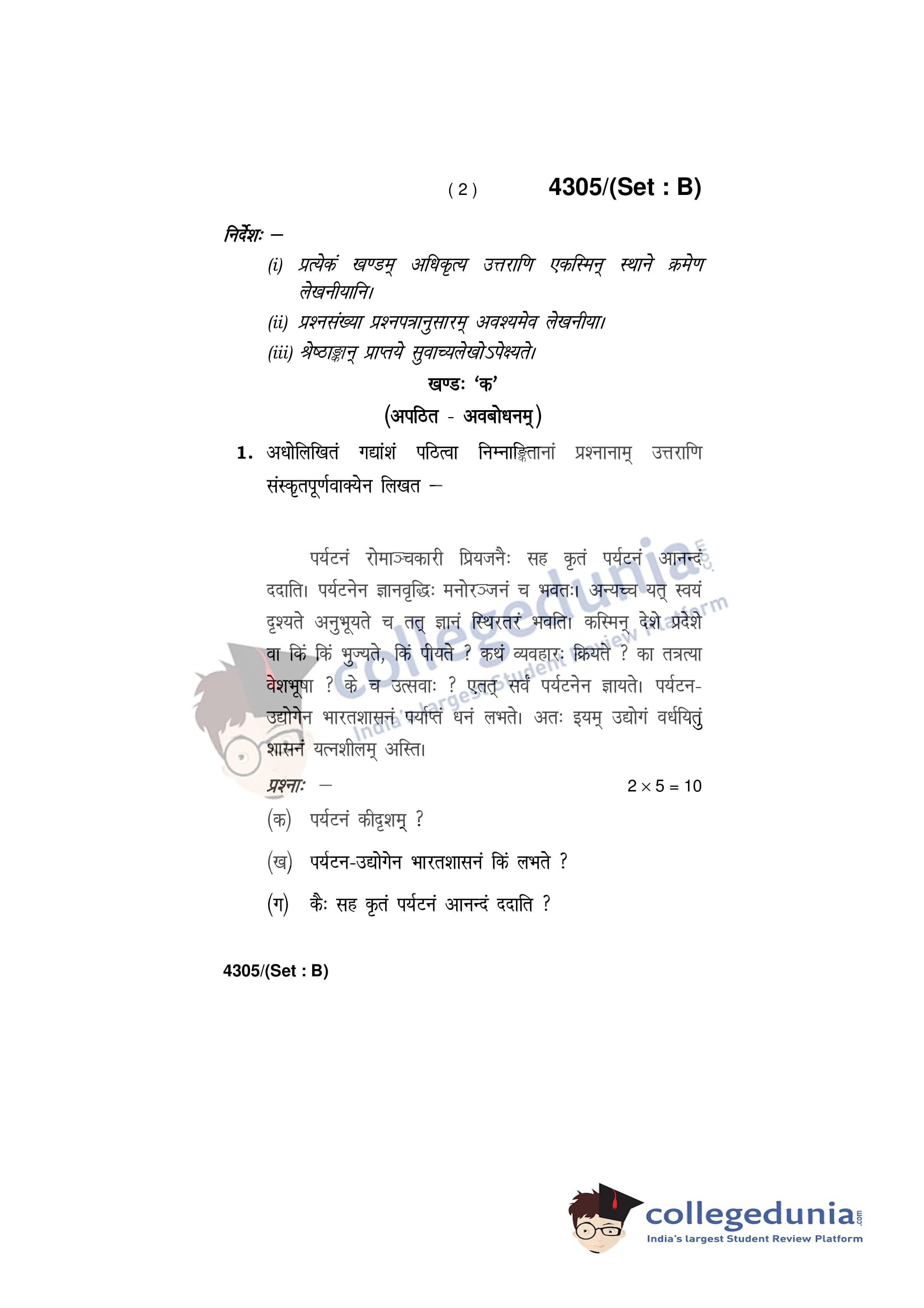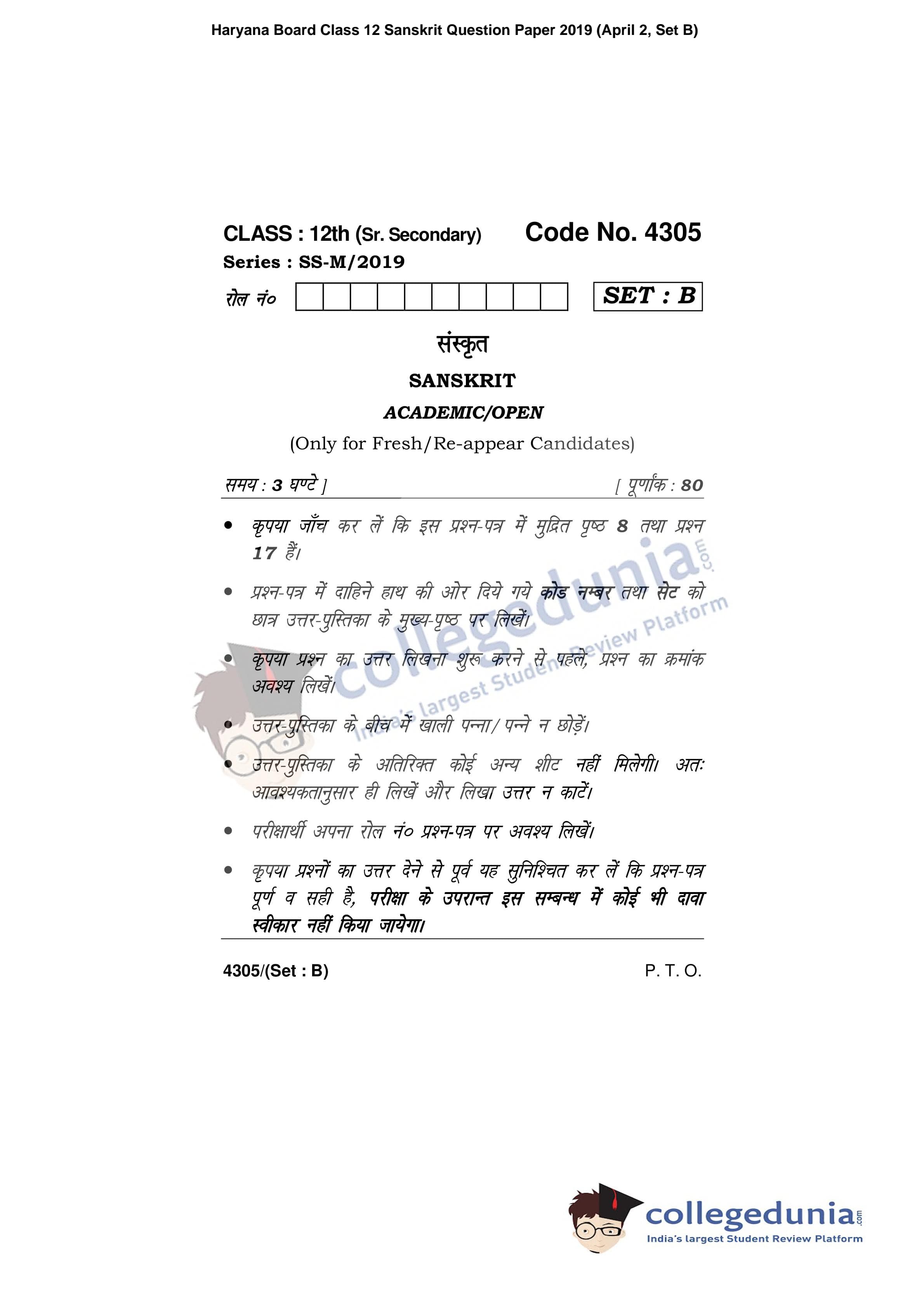 HBSE Class 12 Sanskrit Set B Question Paper 2019 with Answer Key (April 2)