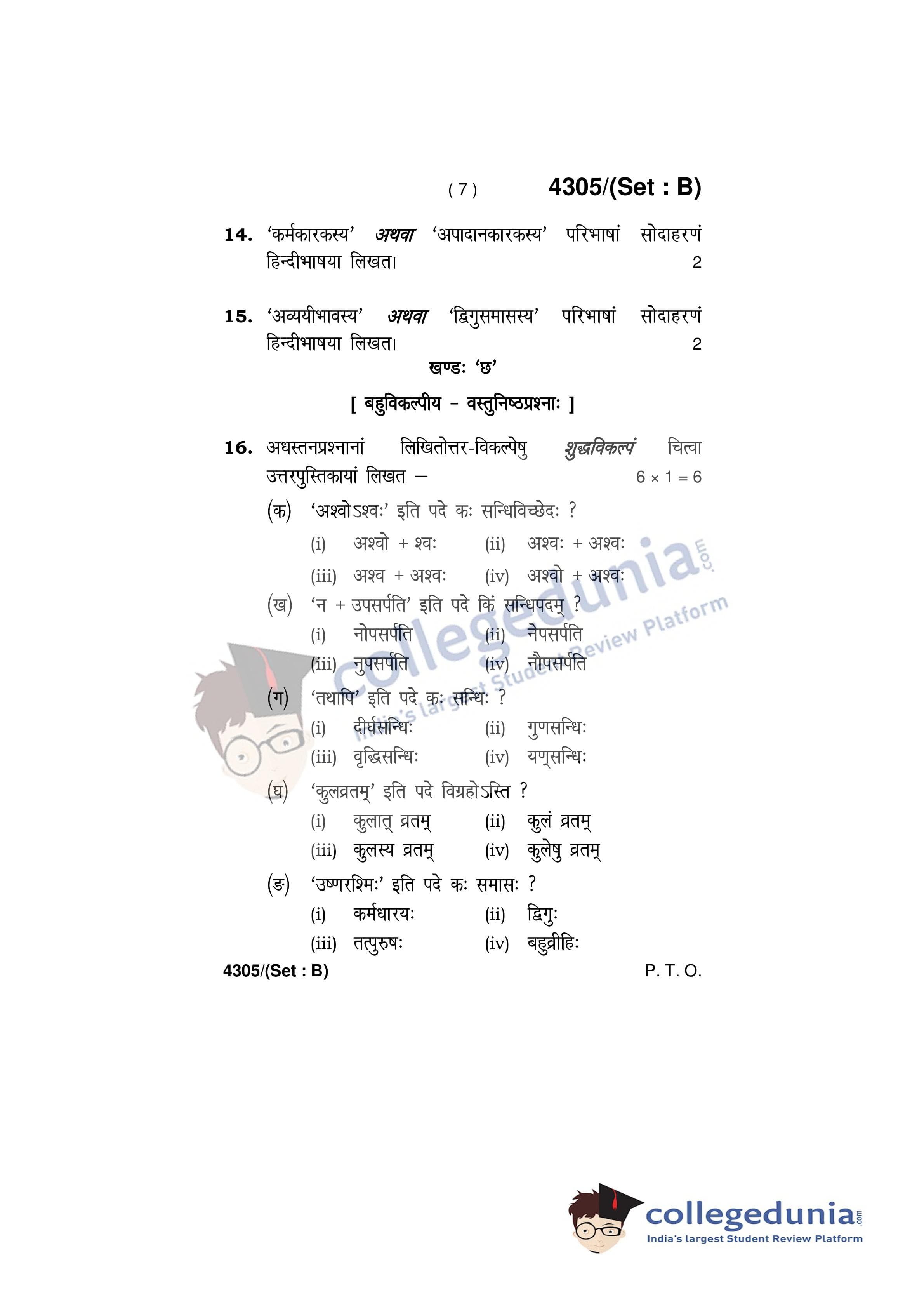 HBSE Class 12 Sanskrit Question Paper 2019 with Answer Key Set B is available for download. The exam was conducted by the Board of School Education Haryana on April 2, 2019 in the Afternoon Session 12:30 PM to 3:30 PM. The medium of paper was Sanskrit. The question paper comprised a total of 17 questions.