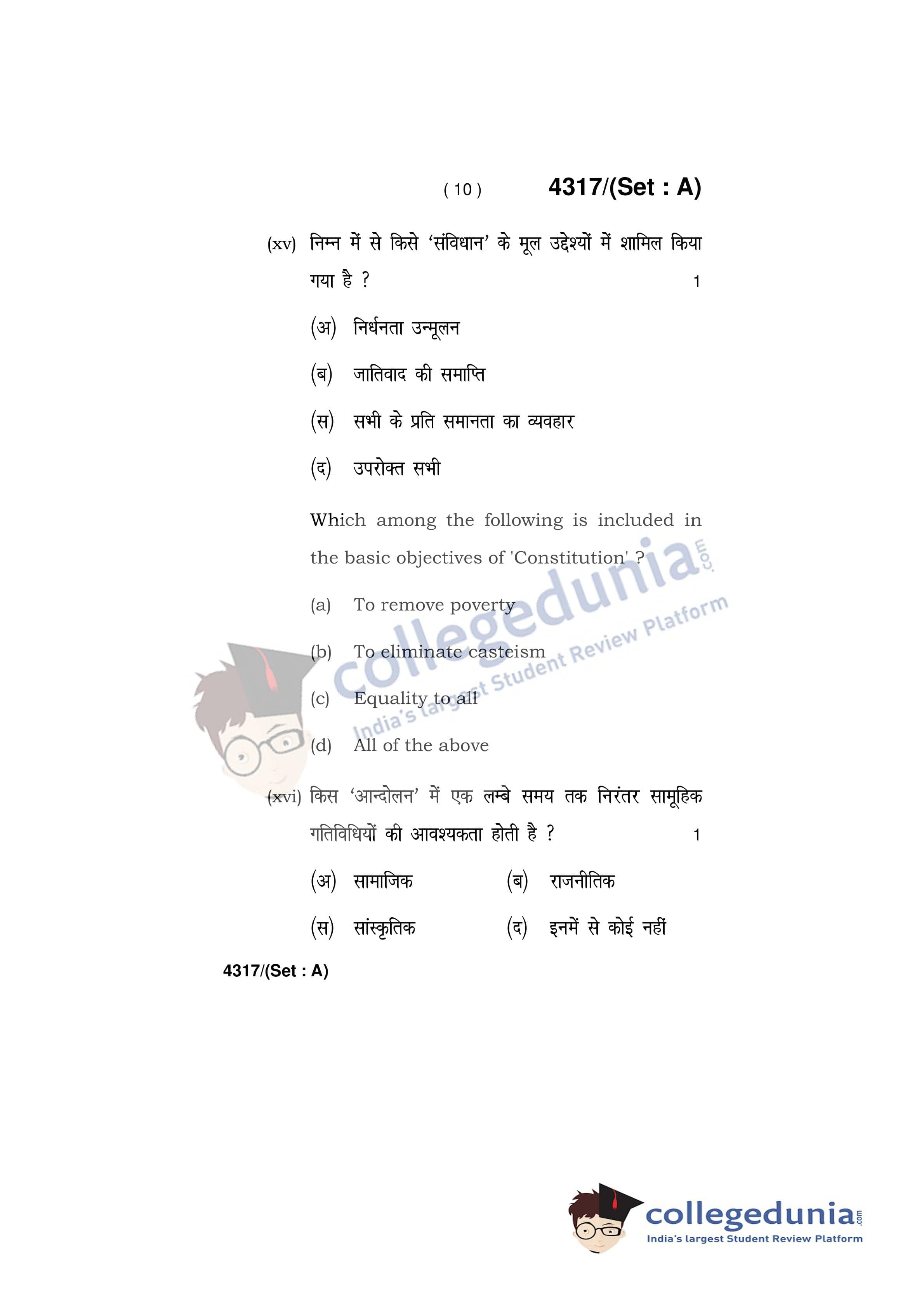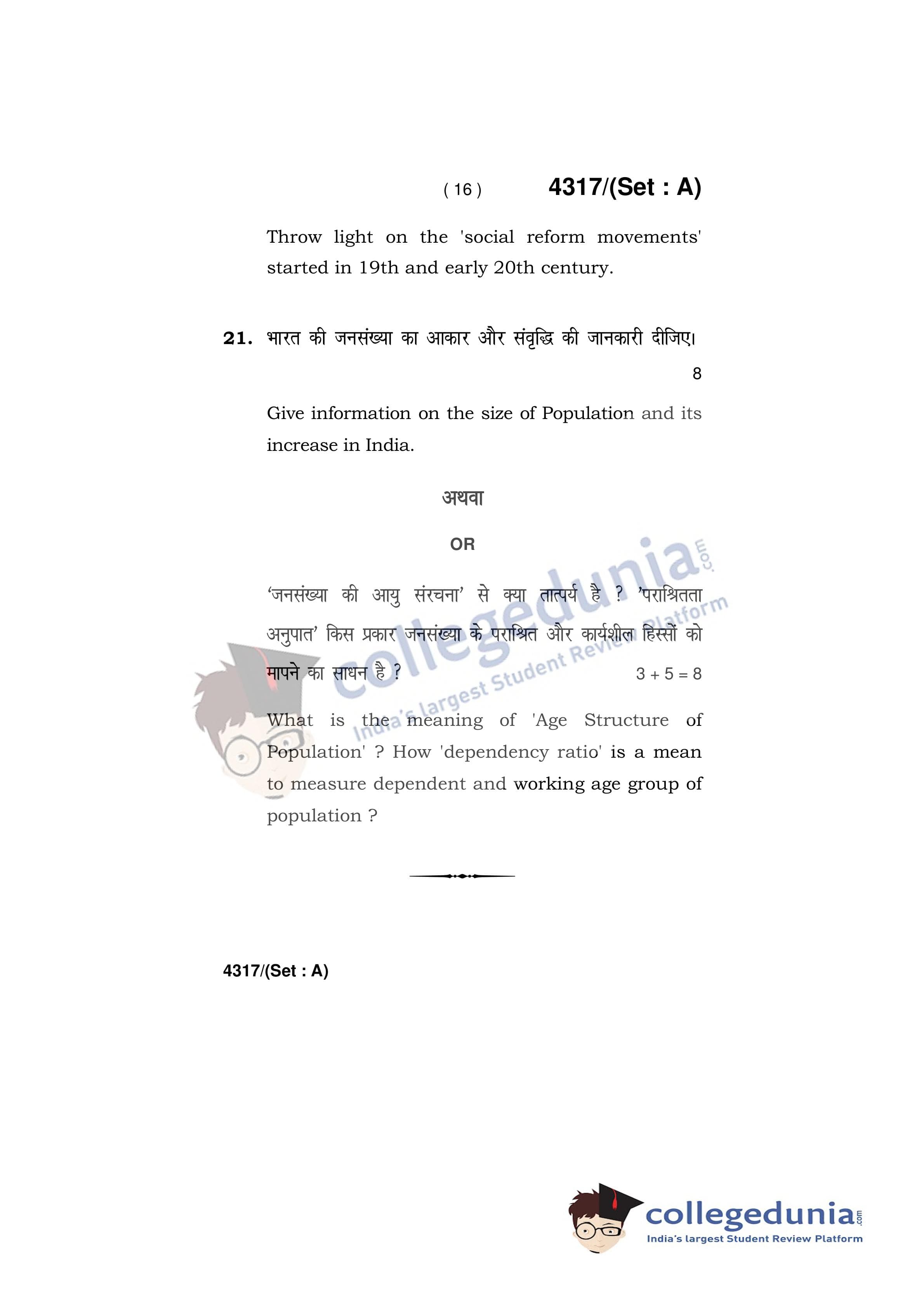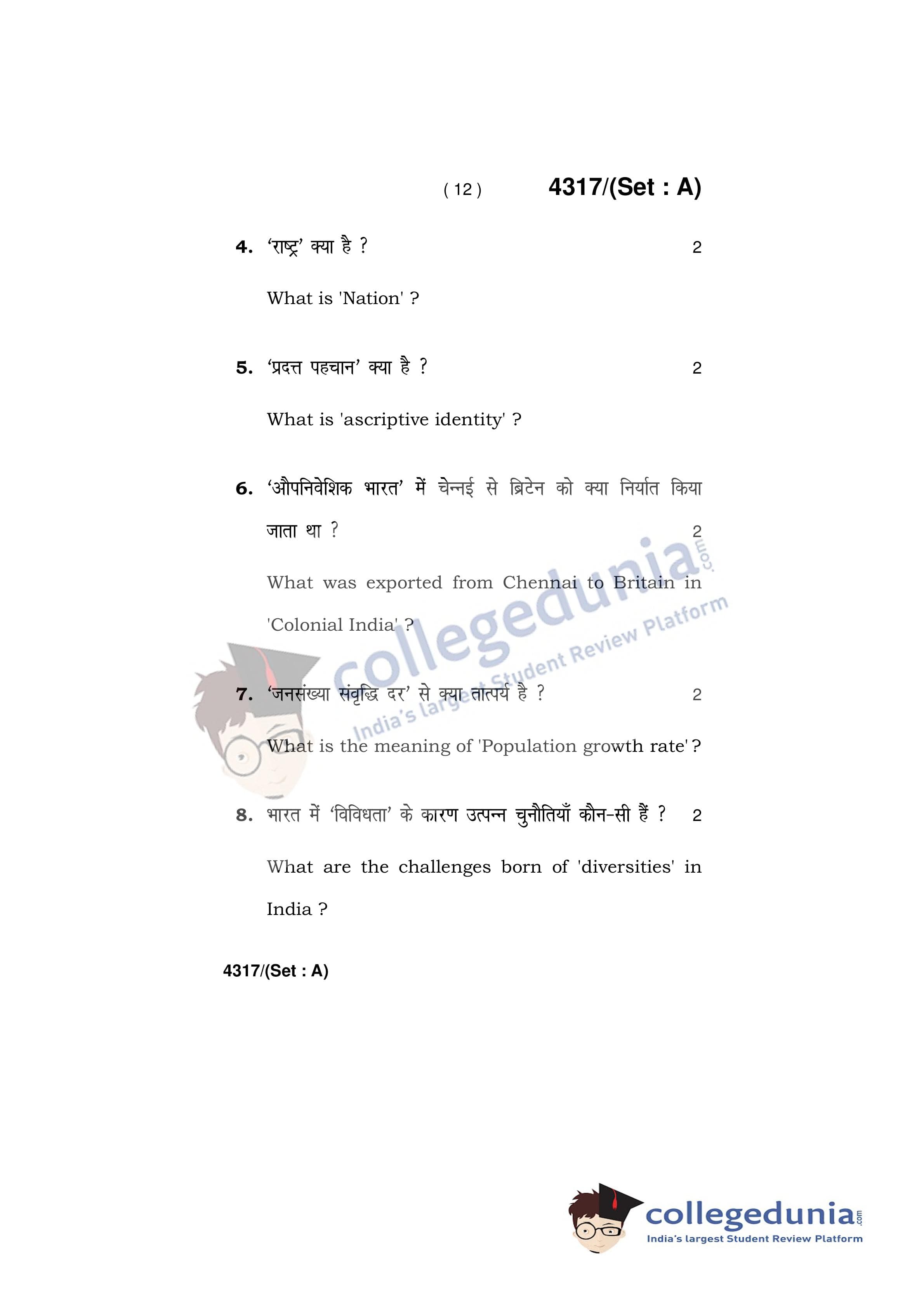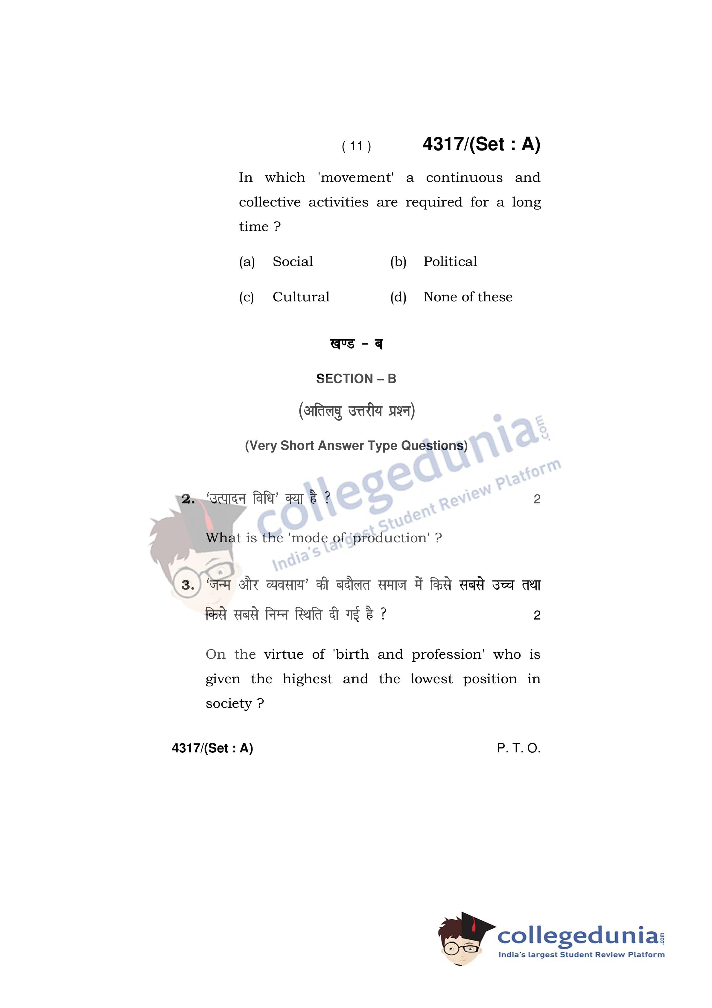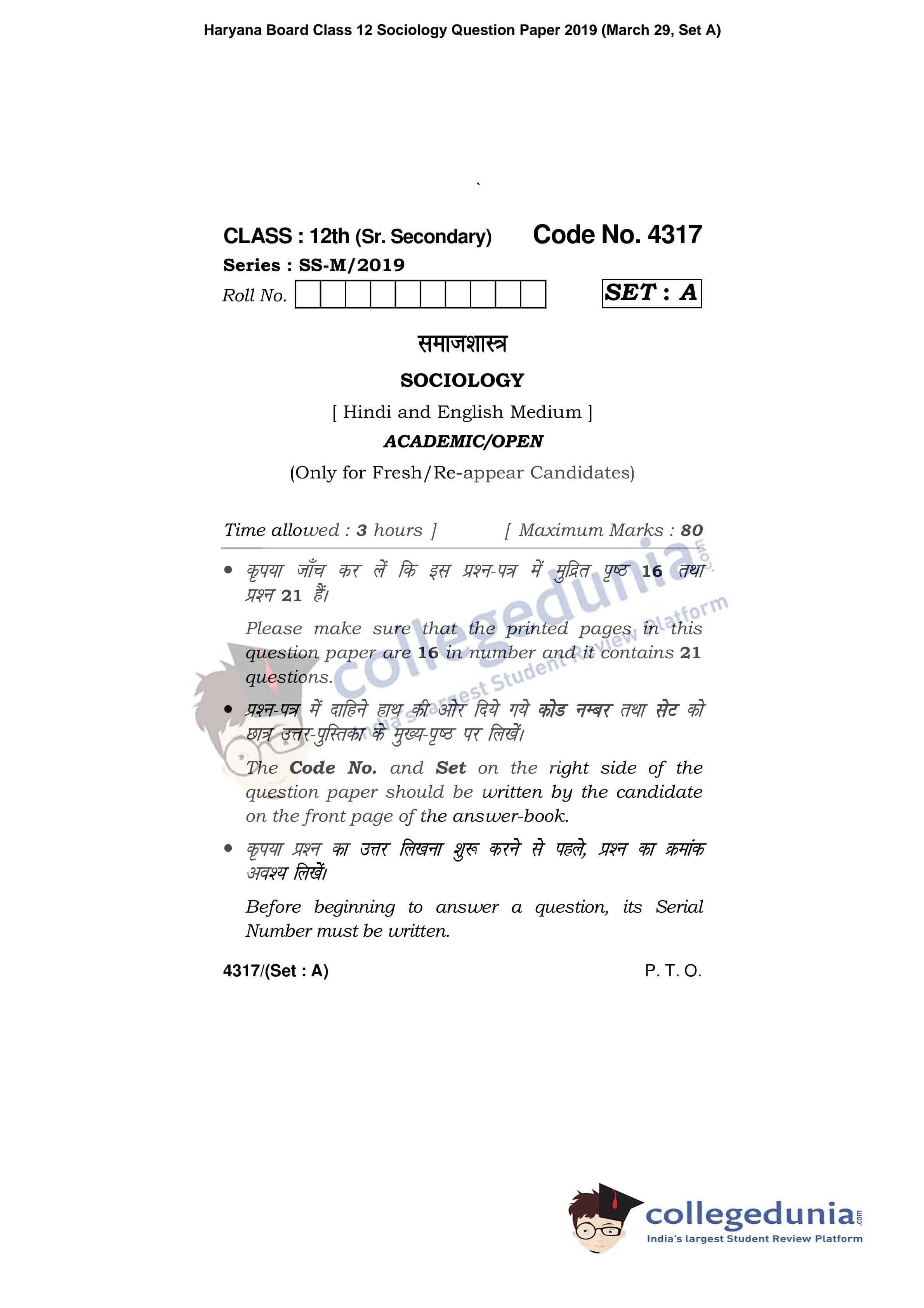 HBSE Class 12 Sociology Set A Question Paper 2019 with Answer Key (March 29)