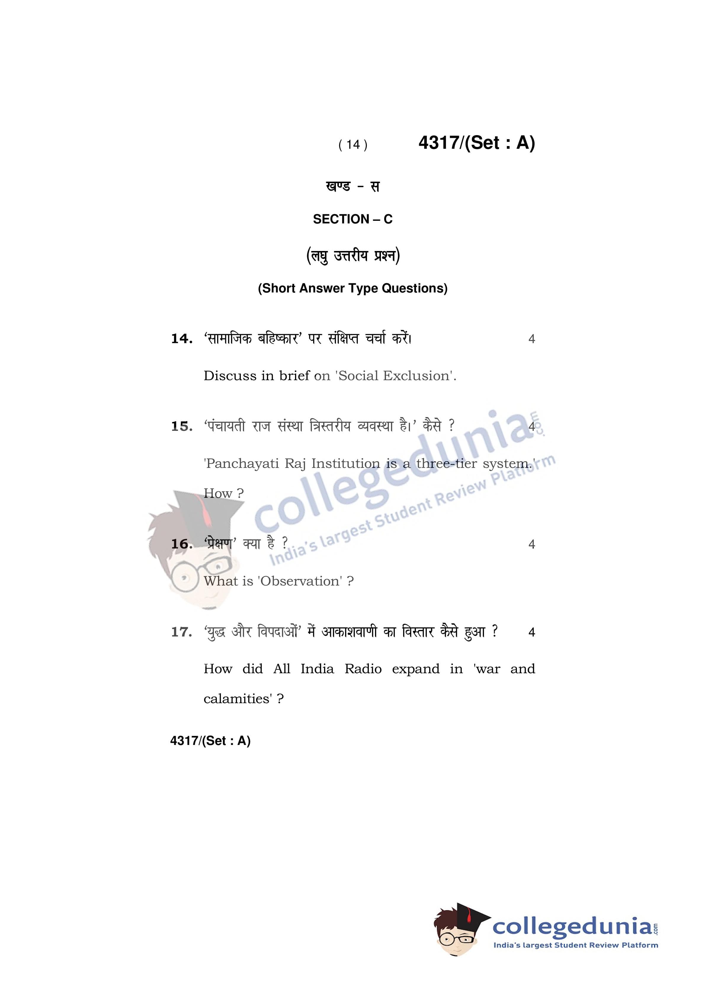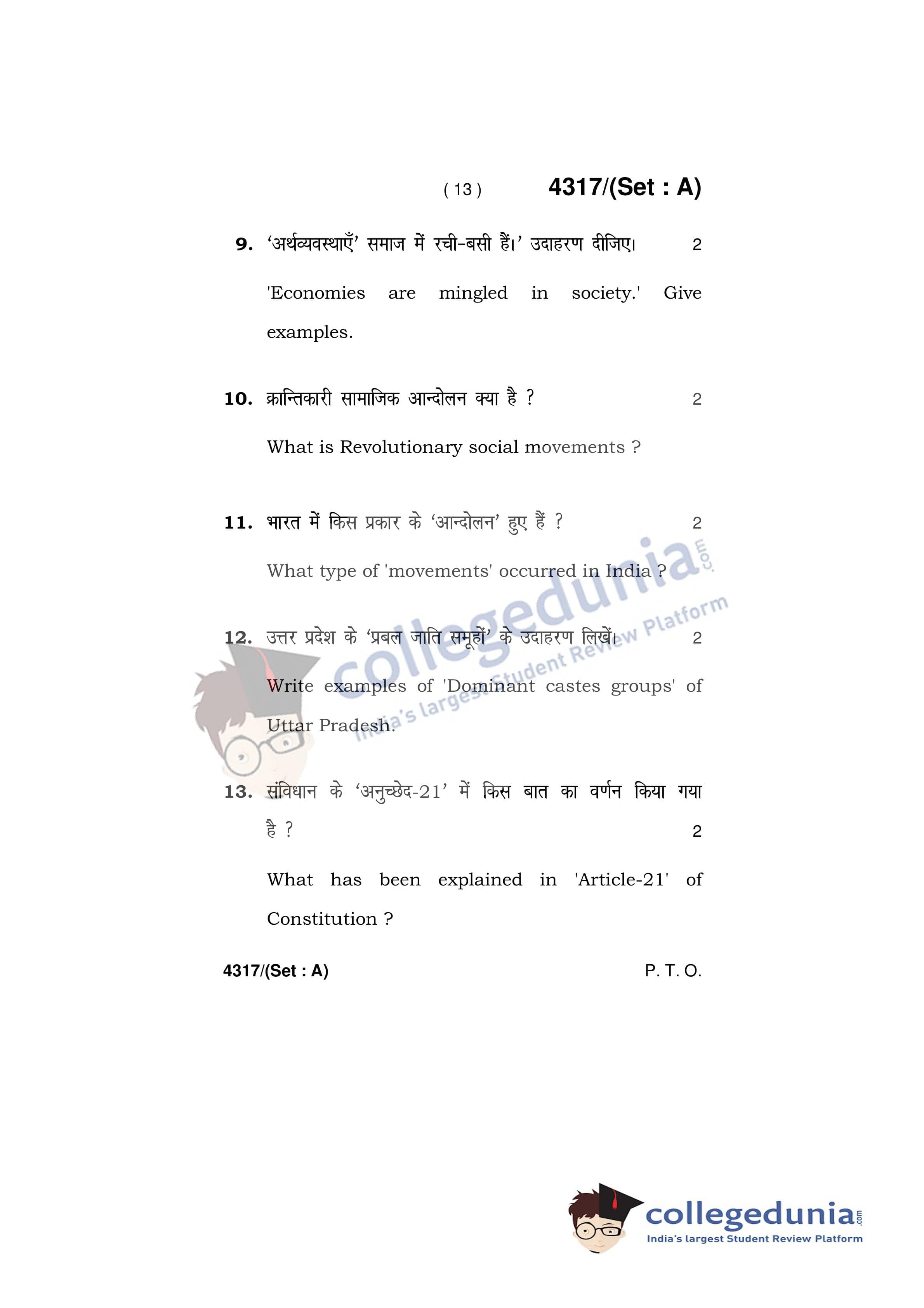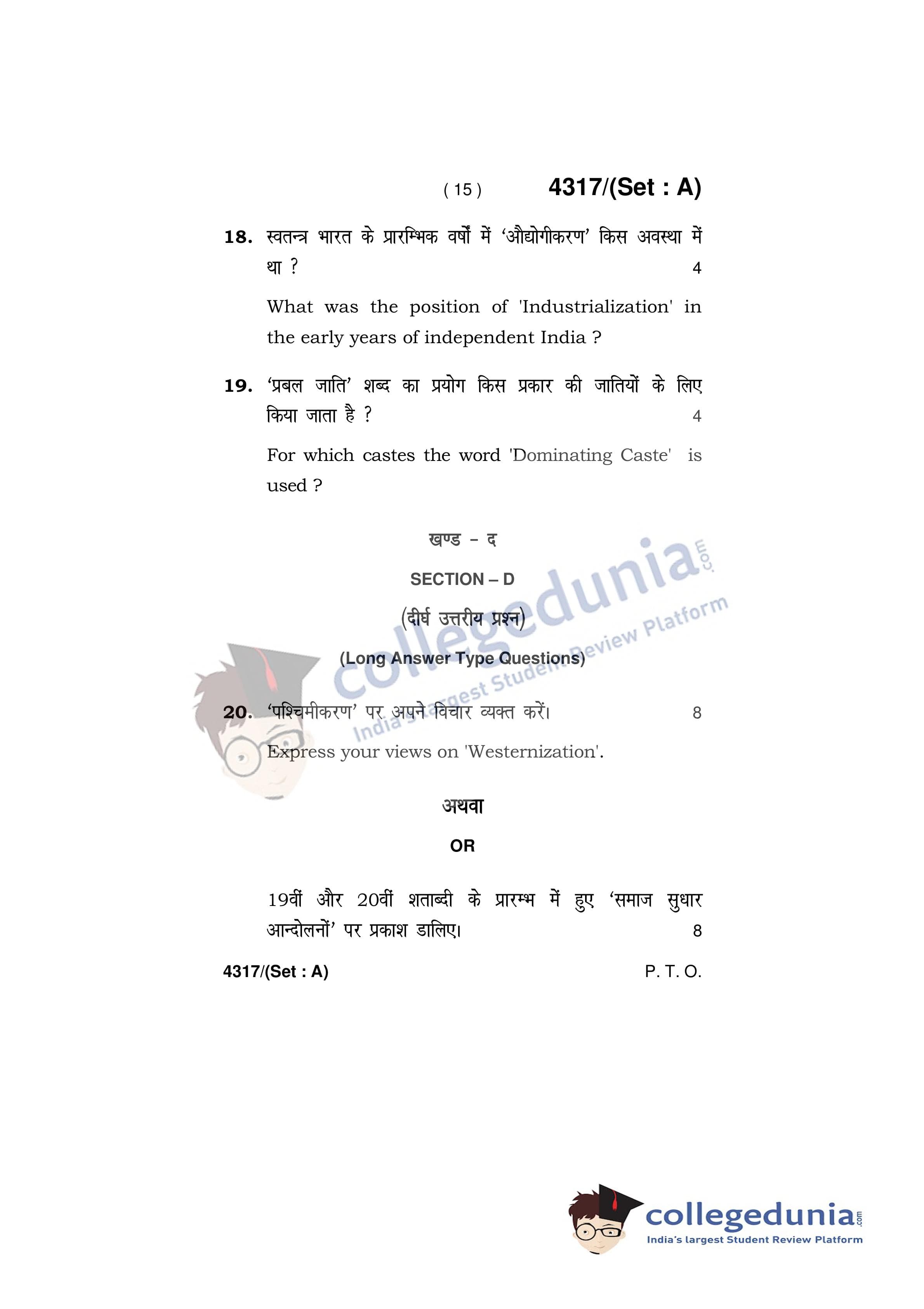 HBSE Class 12 Sociology Question Paper 2019 with Answer Key Set A is available for download. The exam was conducted by the Board of School Education Haryana on March 29, 2019 in the Afternoon Session 12:30 PM to 3:30 PM. The medium of paper was English and Hindi. The question paper comprised a total of 21 questions.