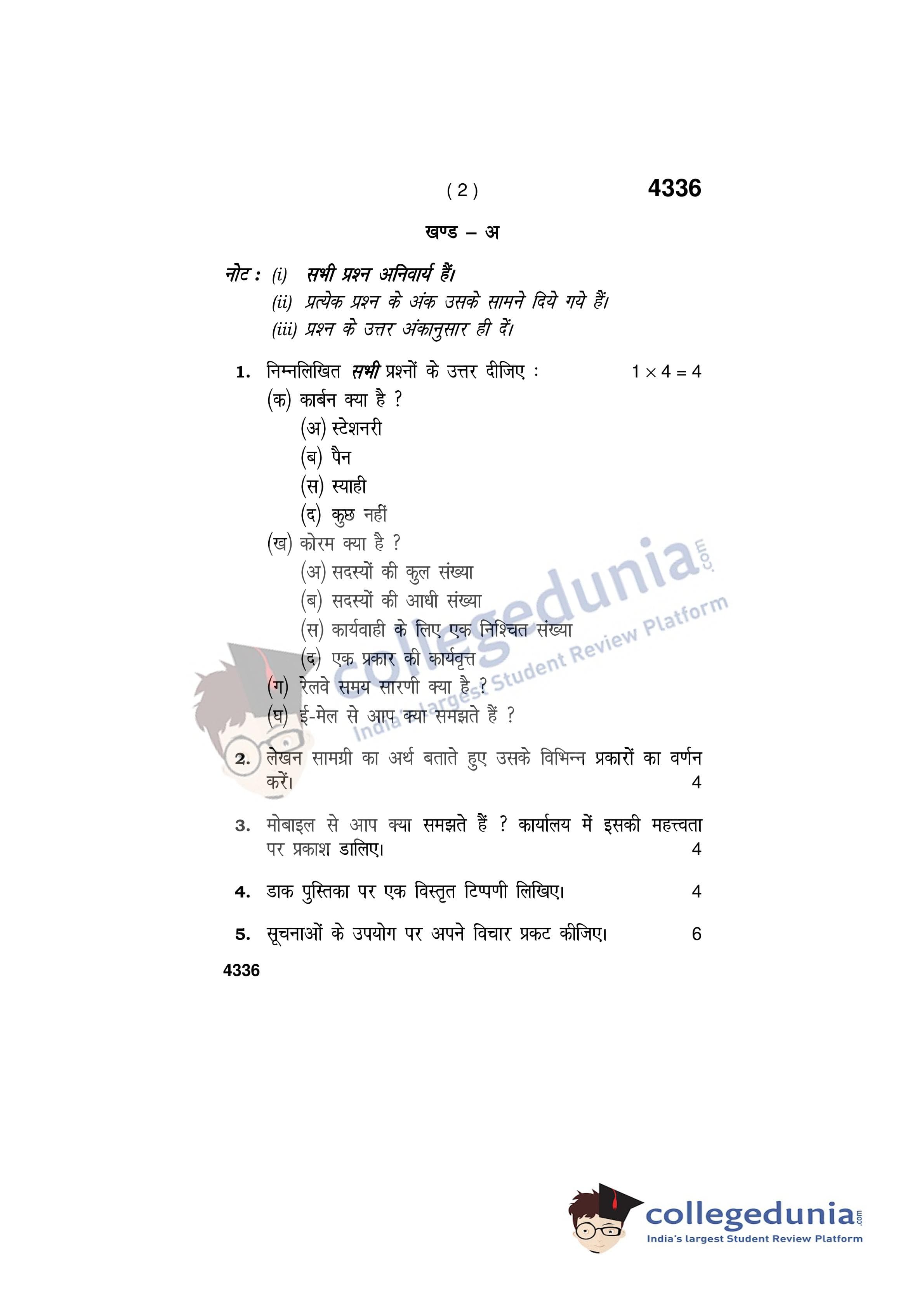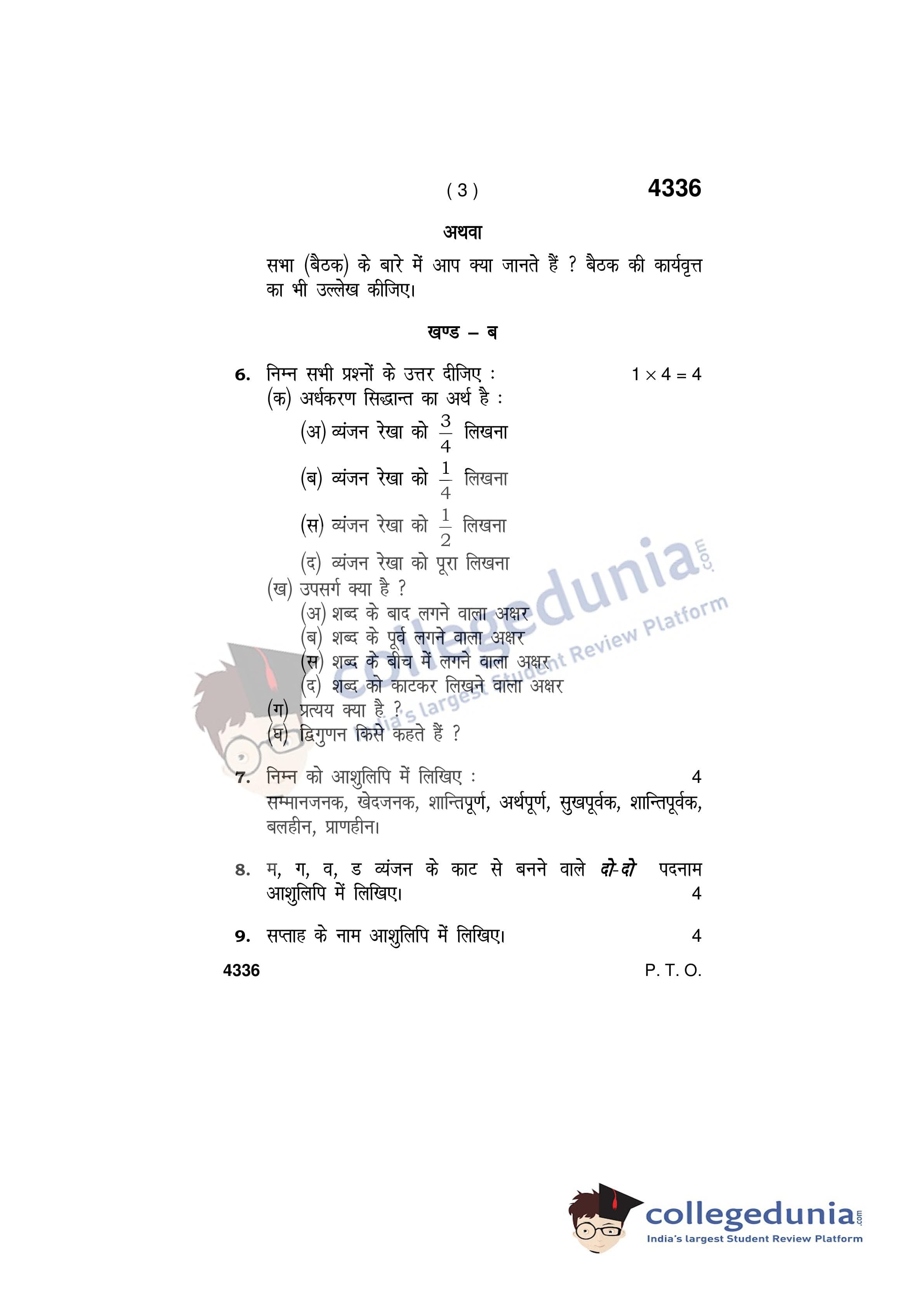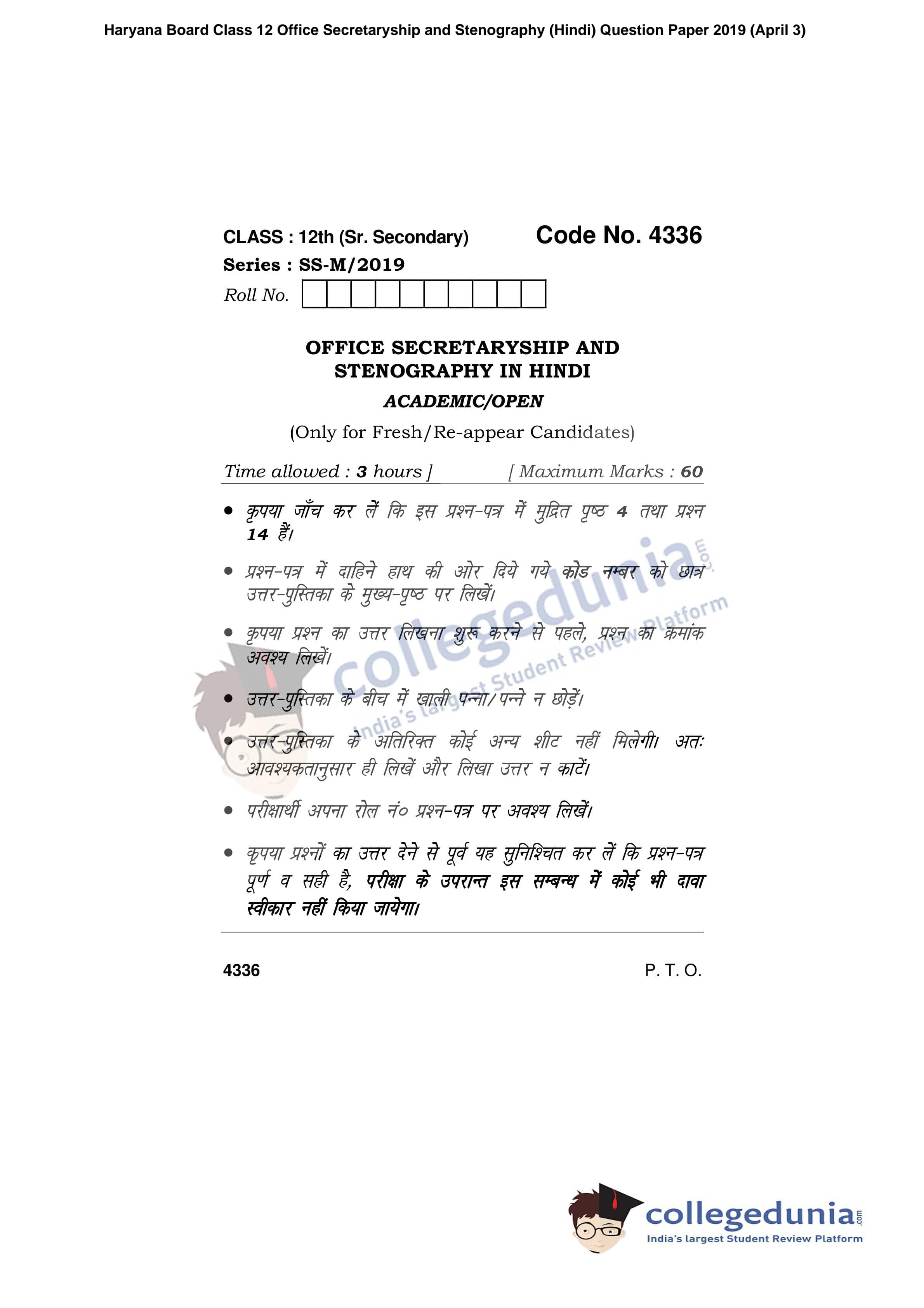 HBSE Class 12 Office Secretaryship and Stenography (Hindi) Question Paper 2019 with Answer Key (April 3)