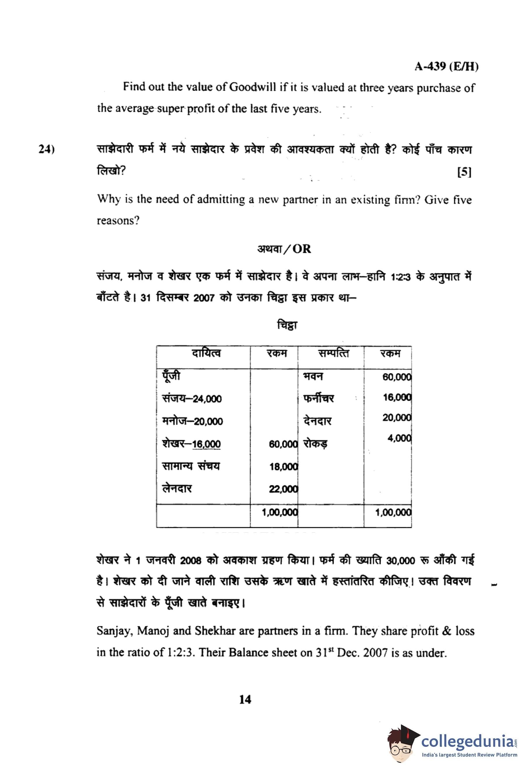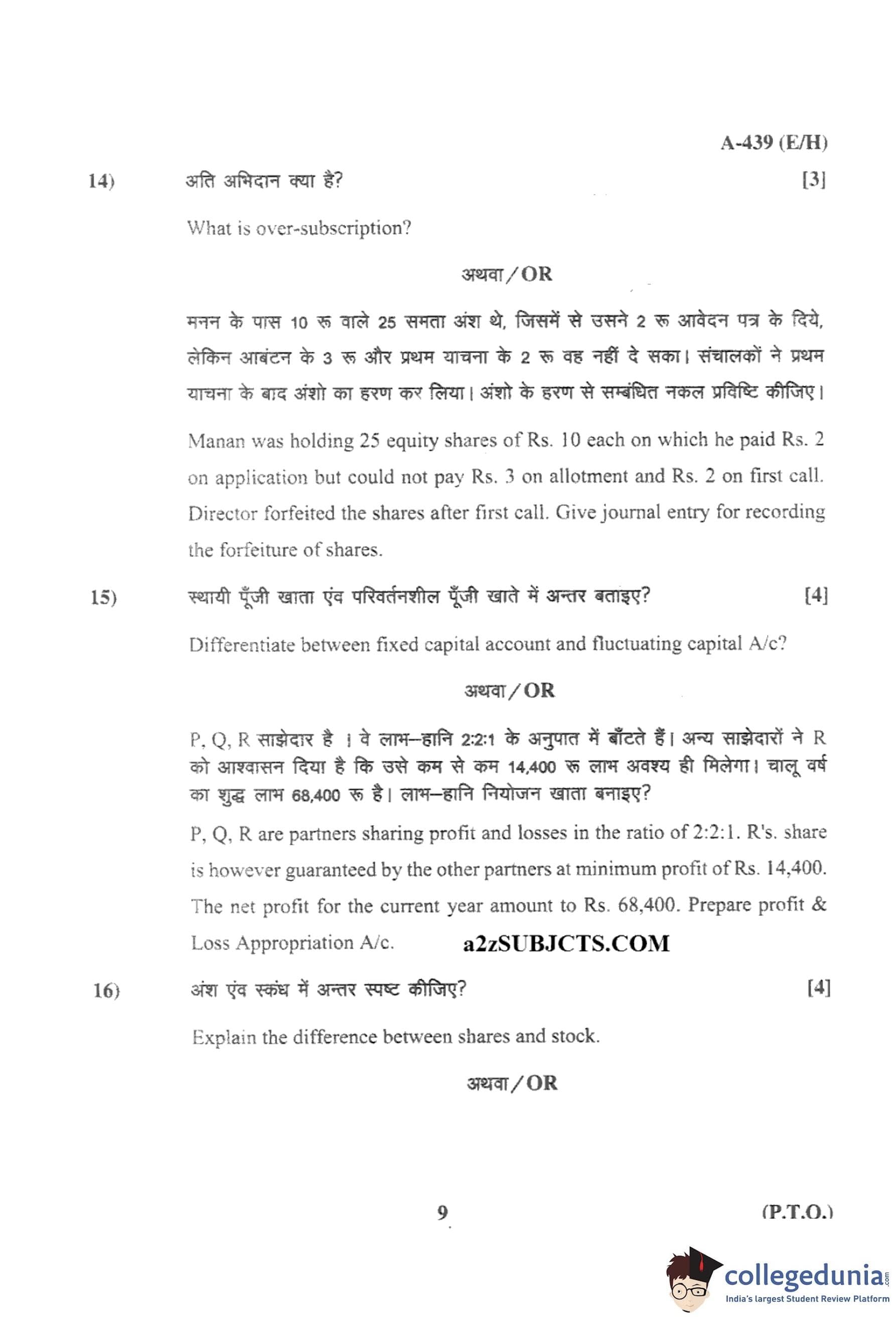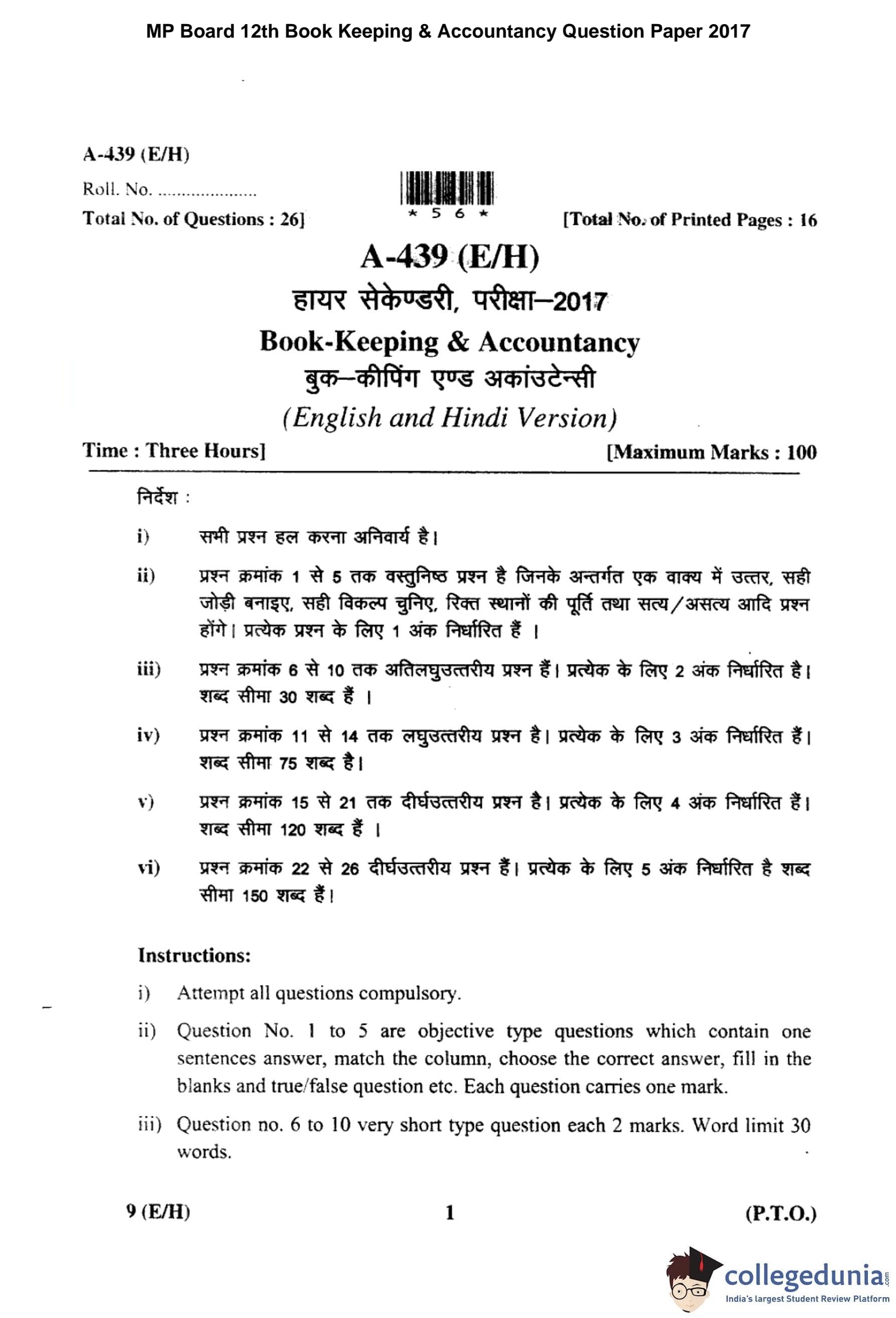 MP Board 12th Book Keeping & Accountancy Question Paper 2017 with Answer Key
