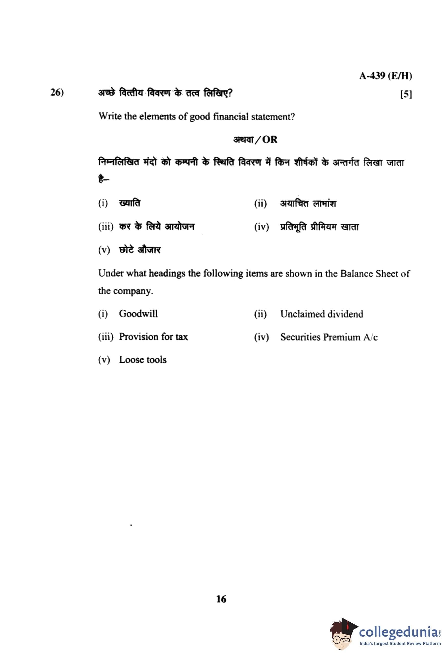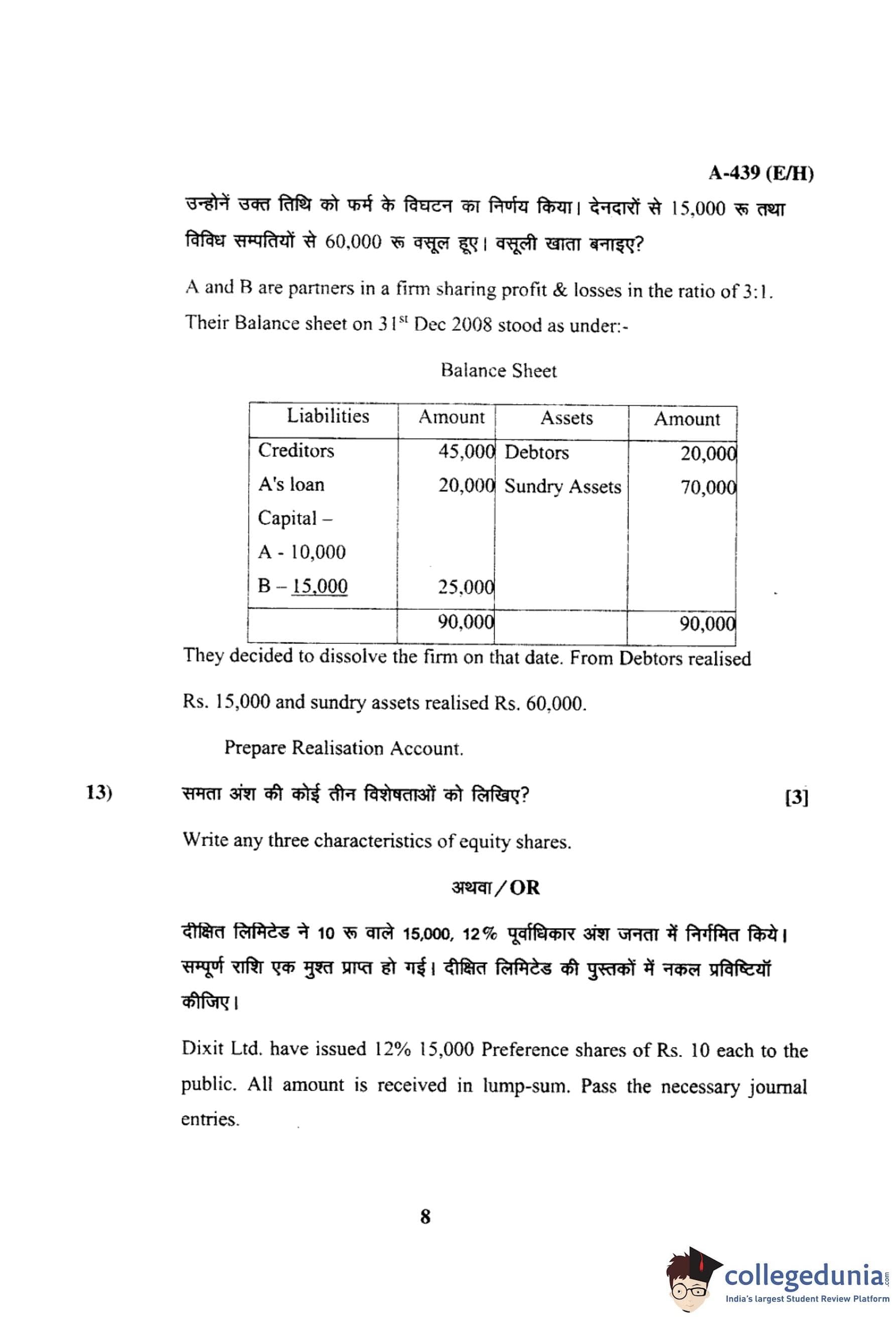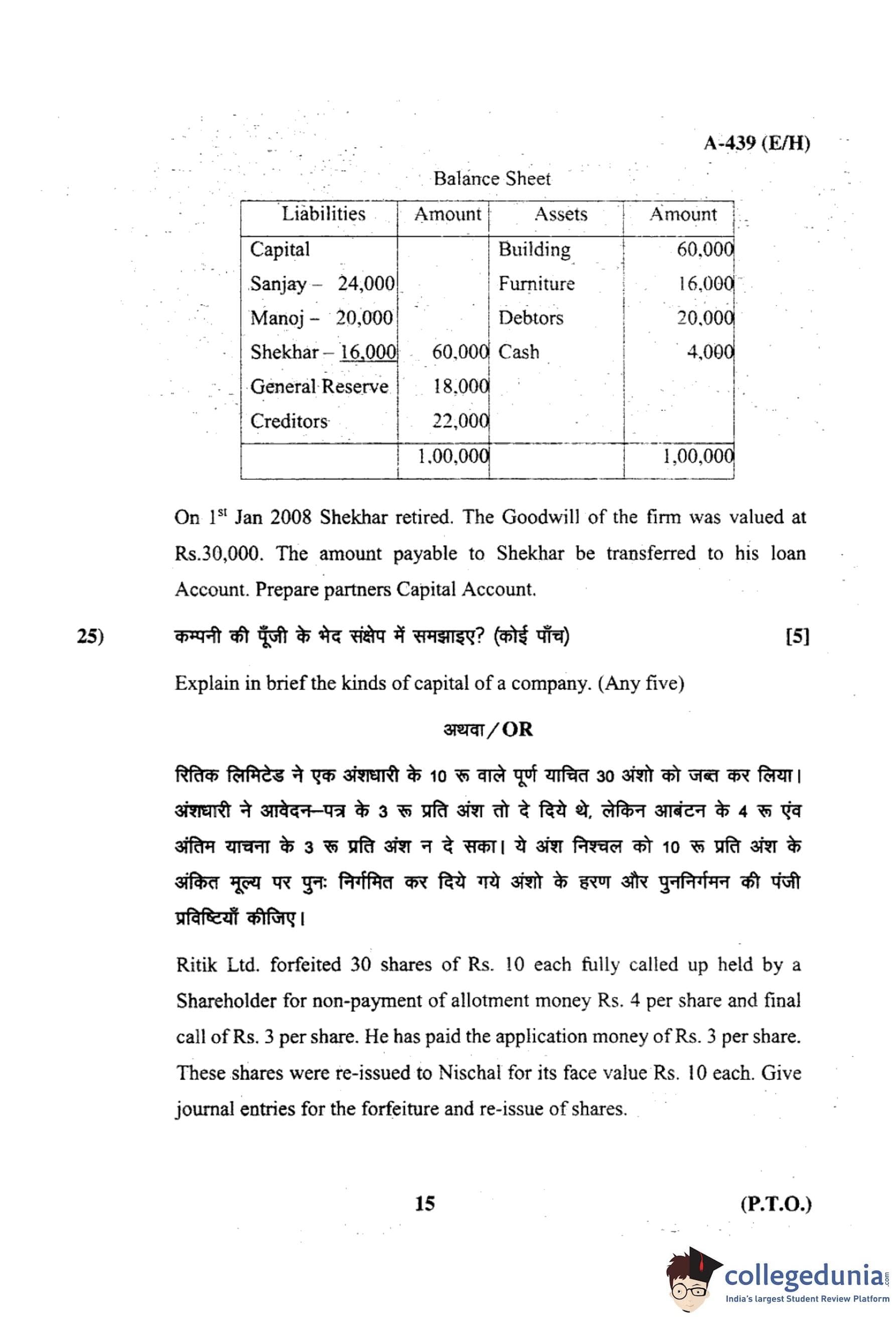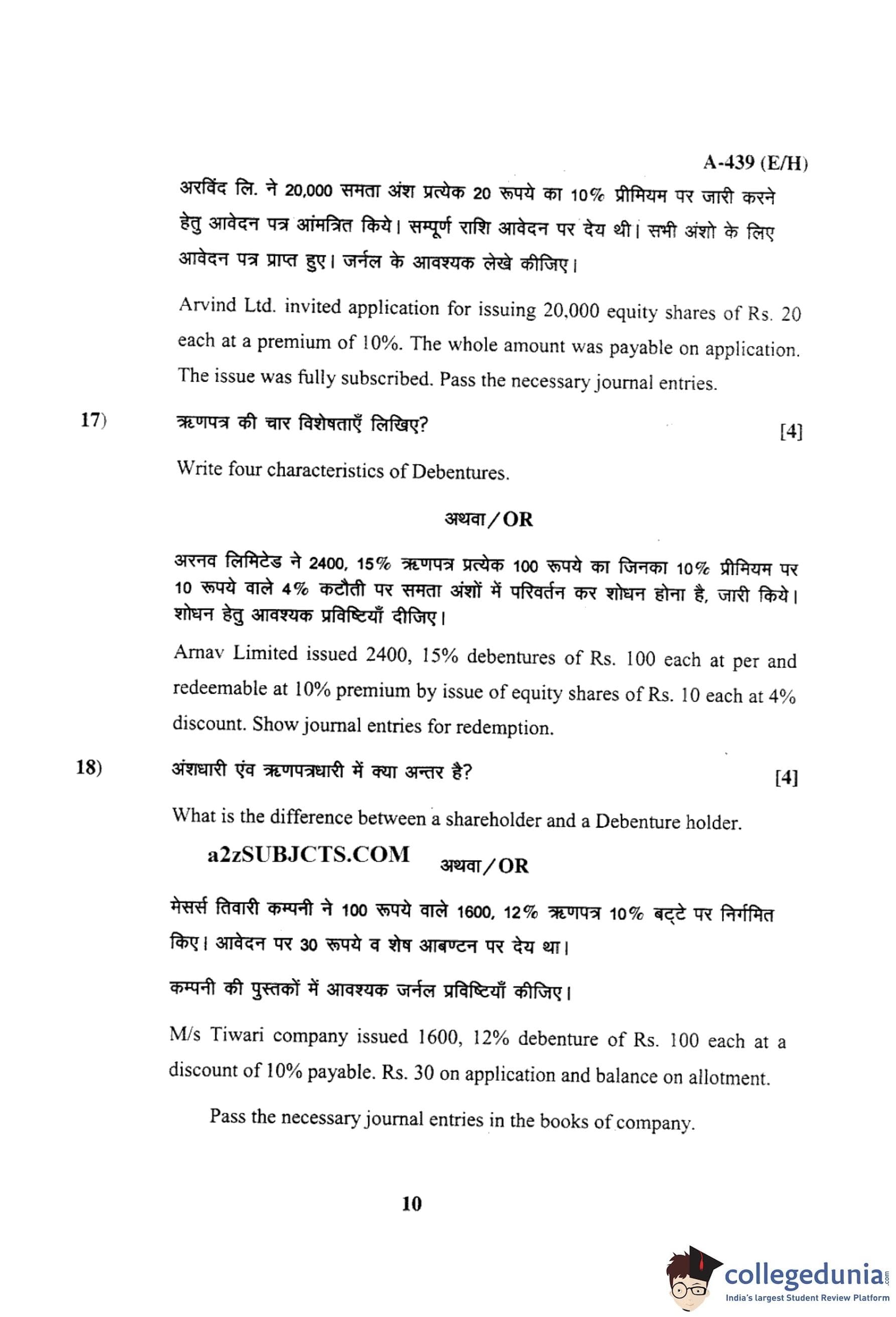 MP Board 12th Book Keeping & Accountancy Question Paper 2017 with Answer Key