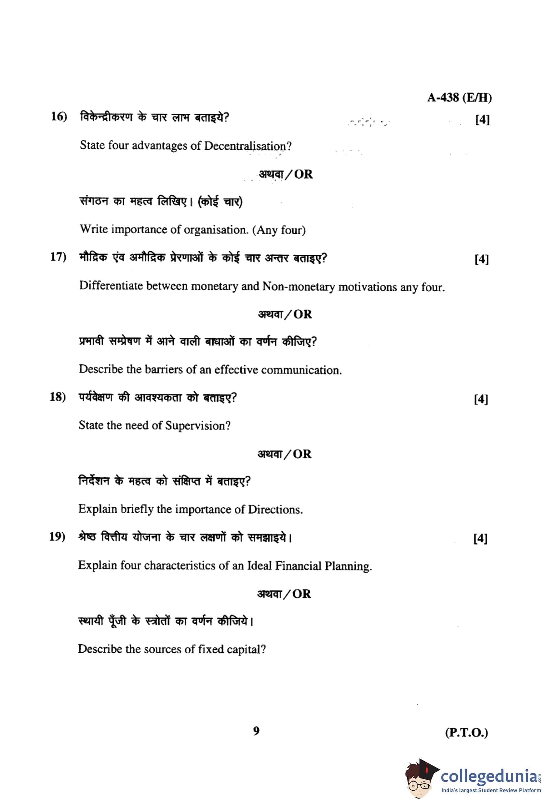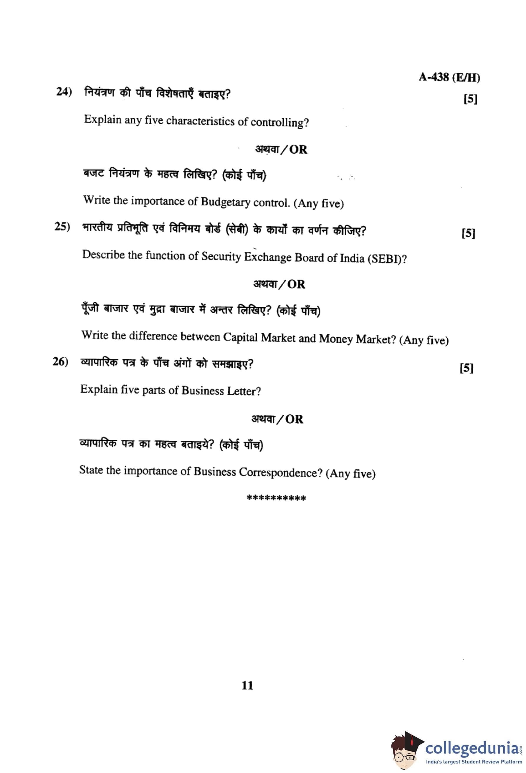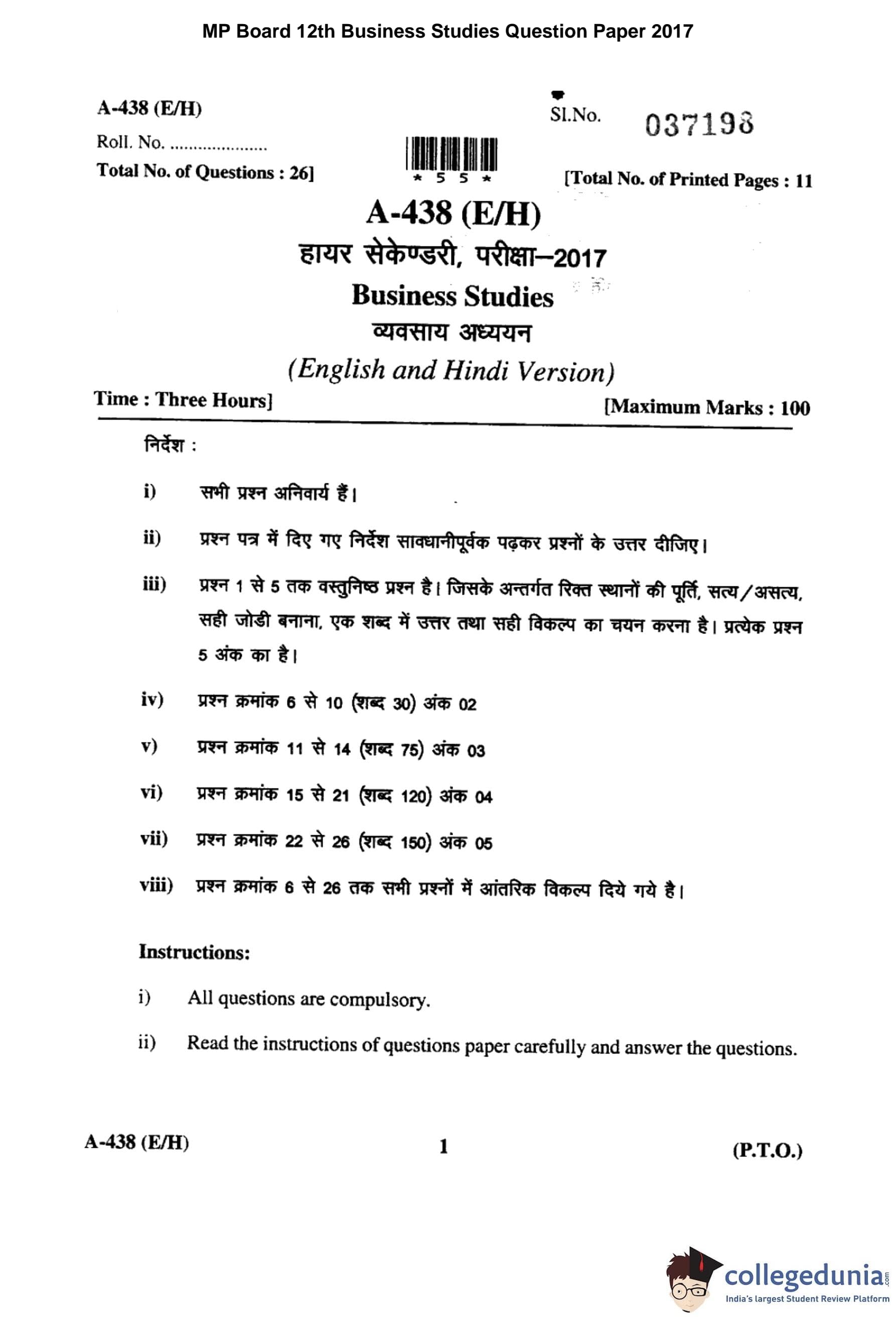 MP Board 12th Business Studies Question Paper 2017 with Answer Key pdf is available for download here. The exam was conducted by Madhya Pradesh Board of Secondary Education, MPBSE on March 11, 2017 in the Morning Session 8.30 AM to 11.30AM. The question paper comprised a total of 26 questions.