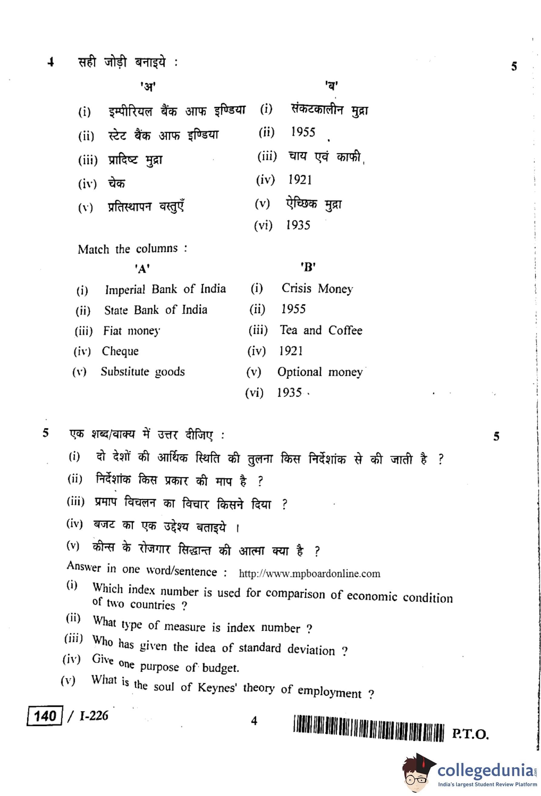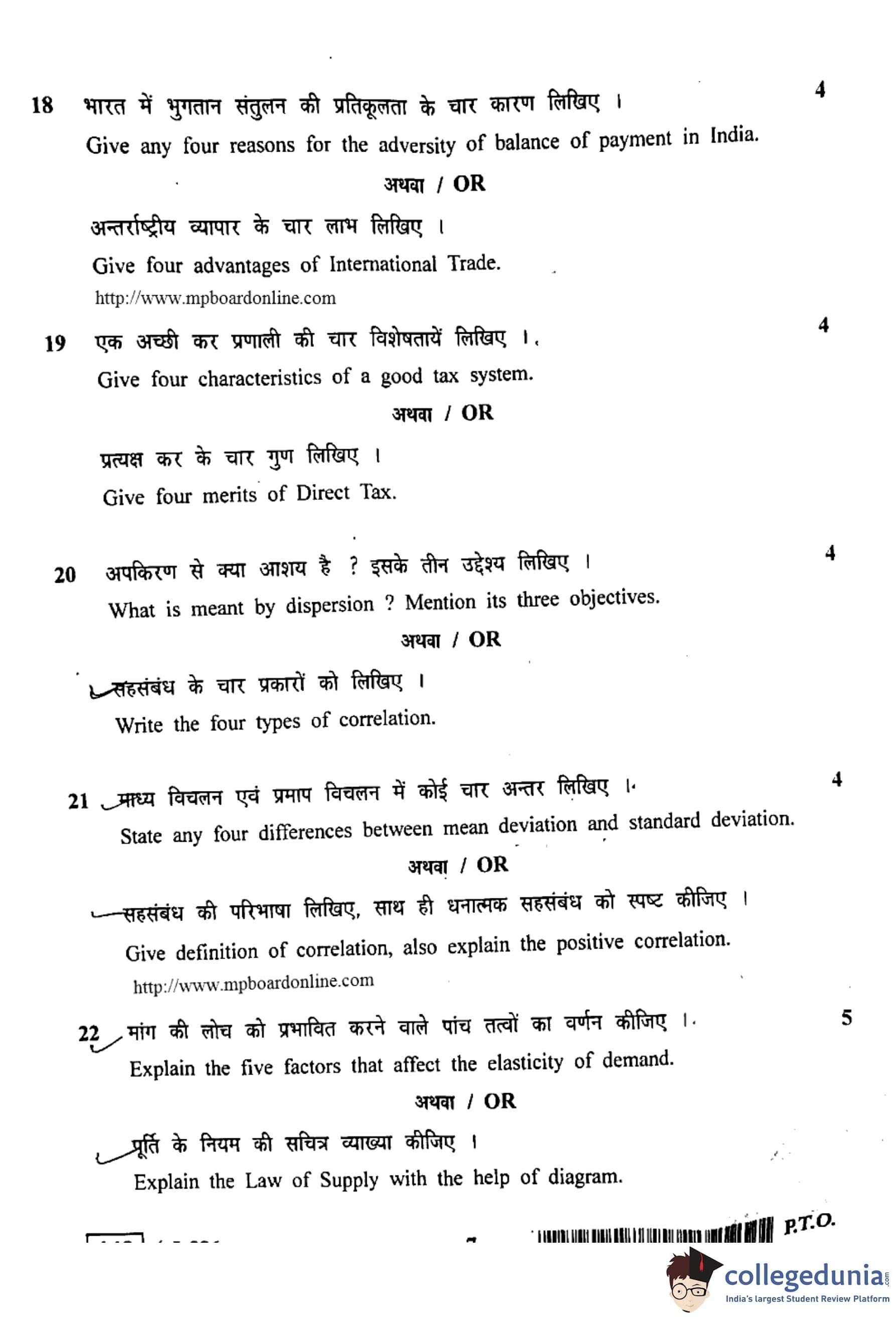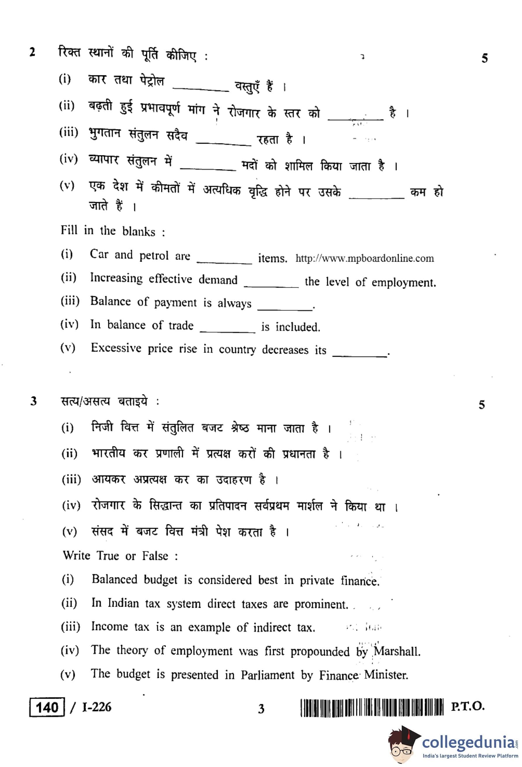 MP Board 12th Economics Question Paper 2018 with Answer Key