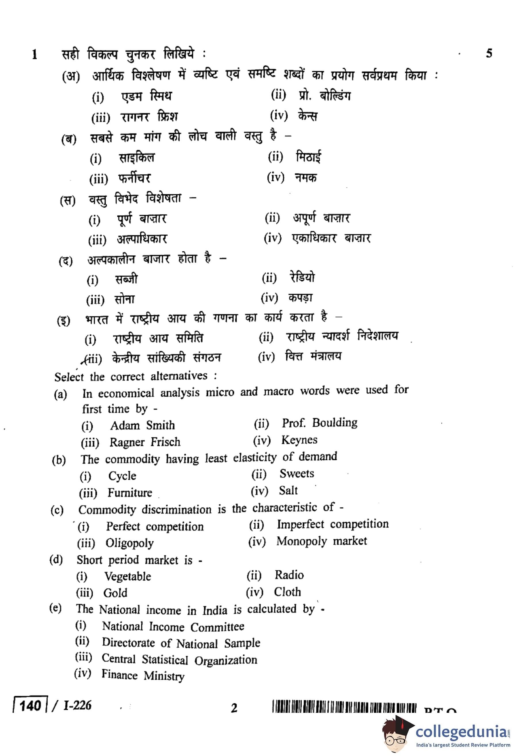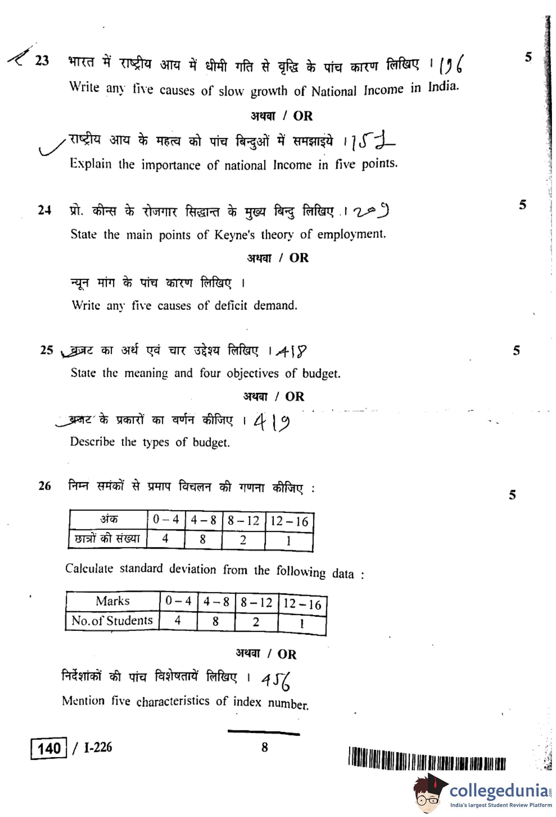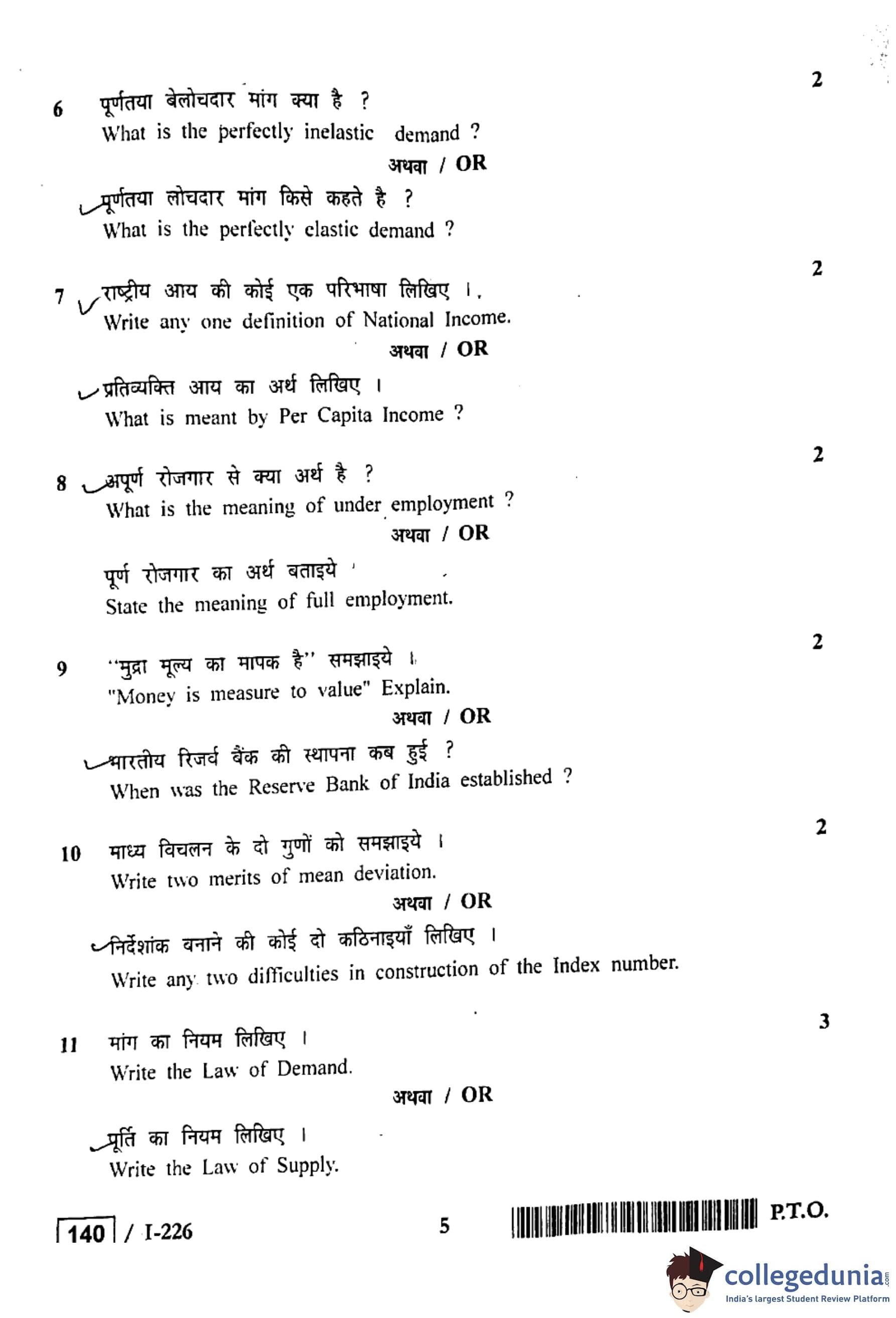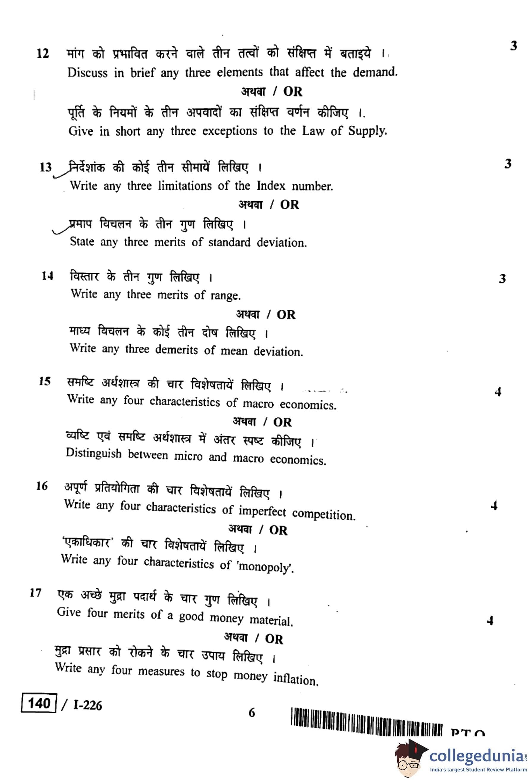 MP Board 12th Economics Question Paper 2018 with Answer Key
