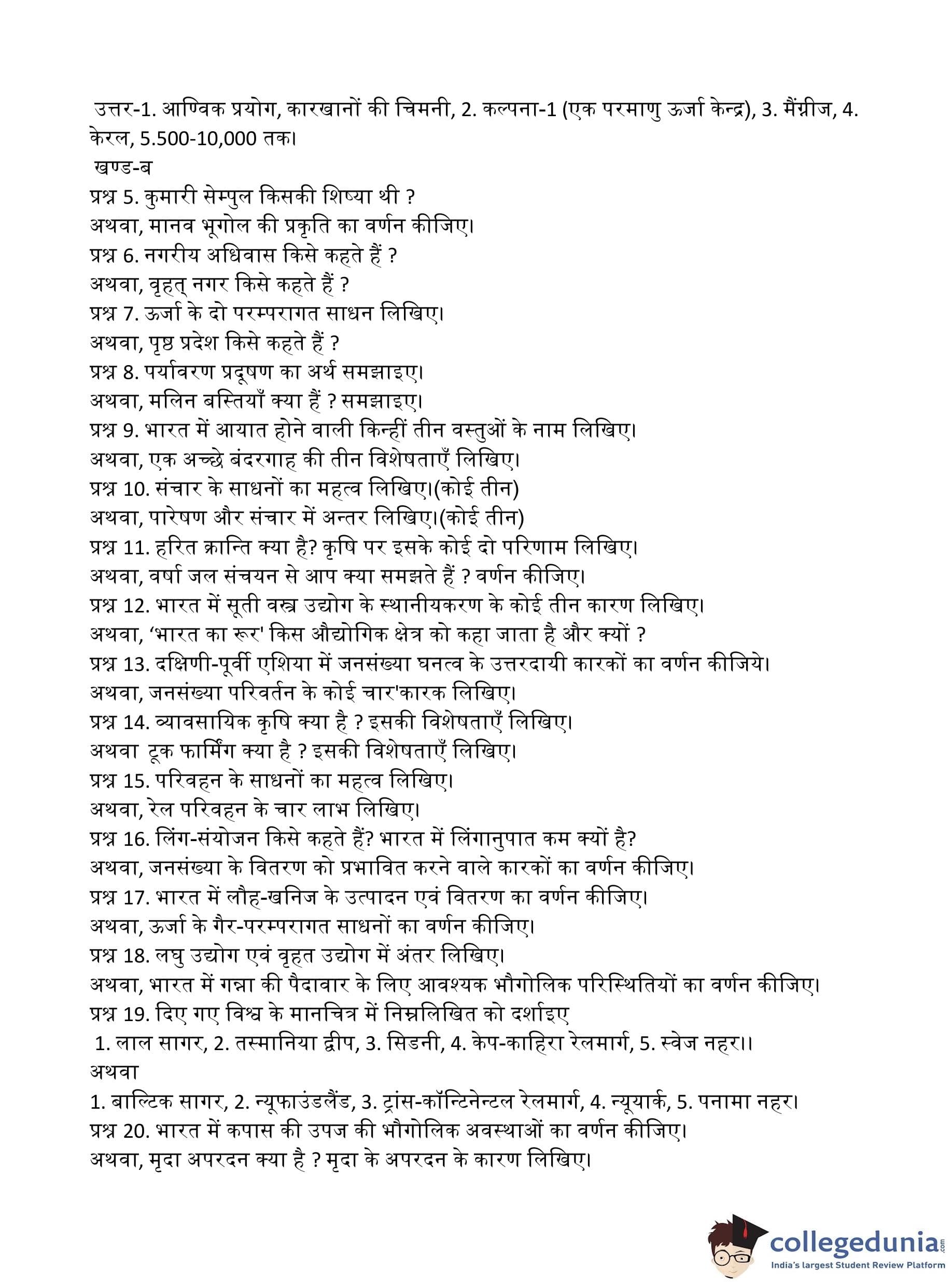 MP Board 12th Geography Question Paper 2017 with Answer Key