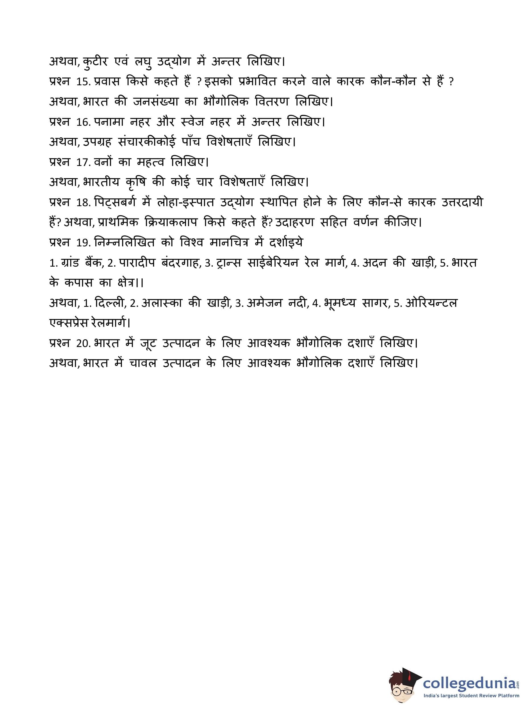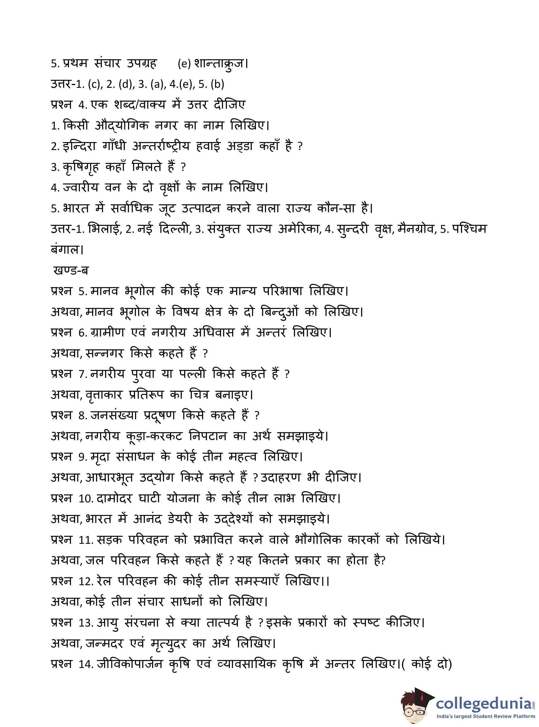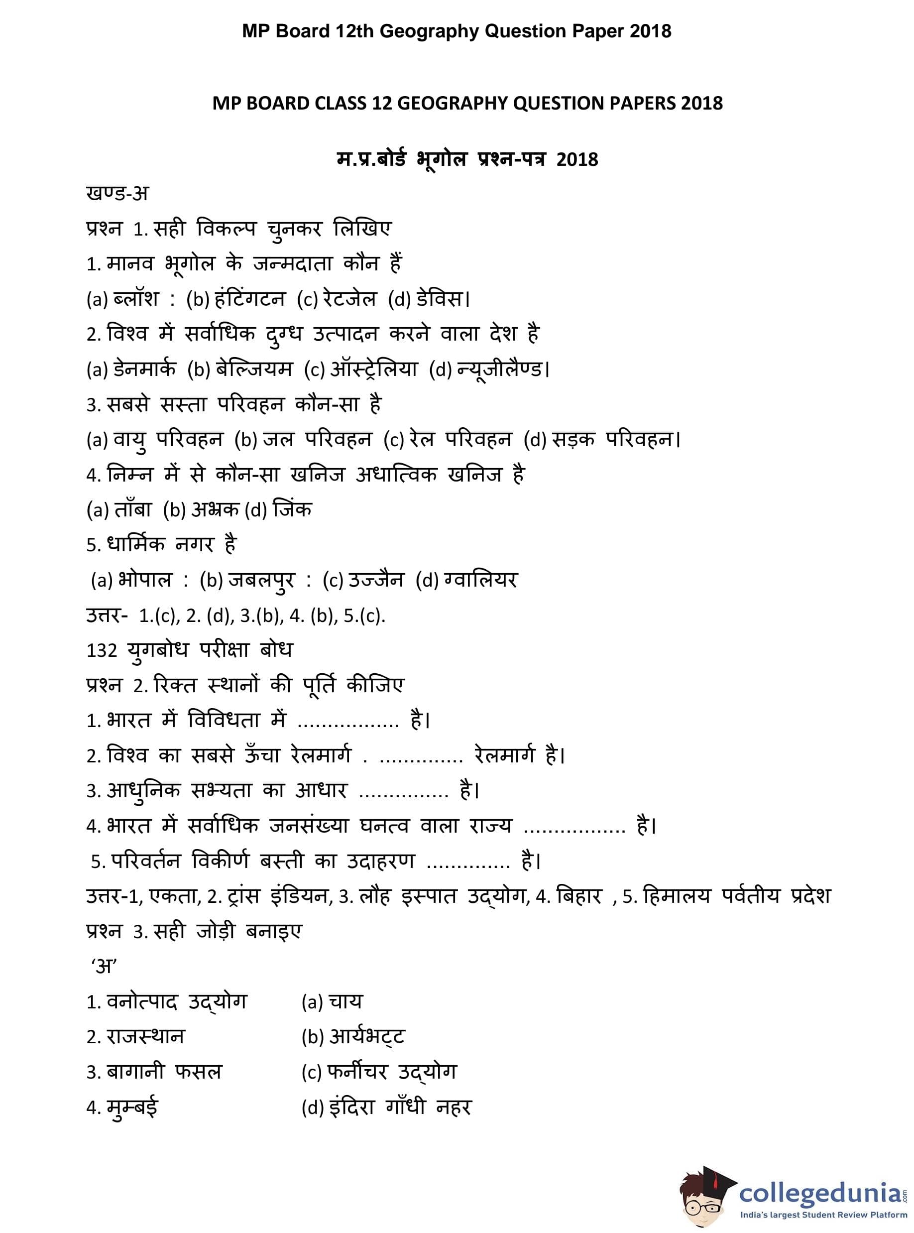 MP Board 12th Geography Question Paper 2018 with Answer Key