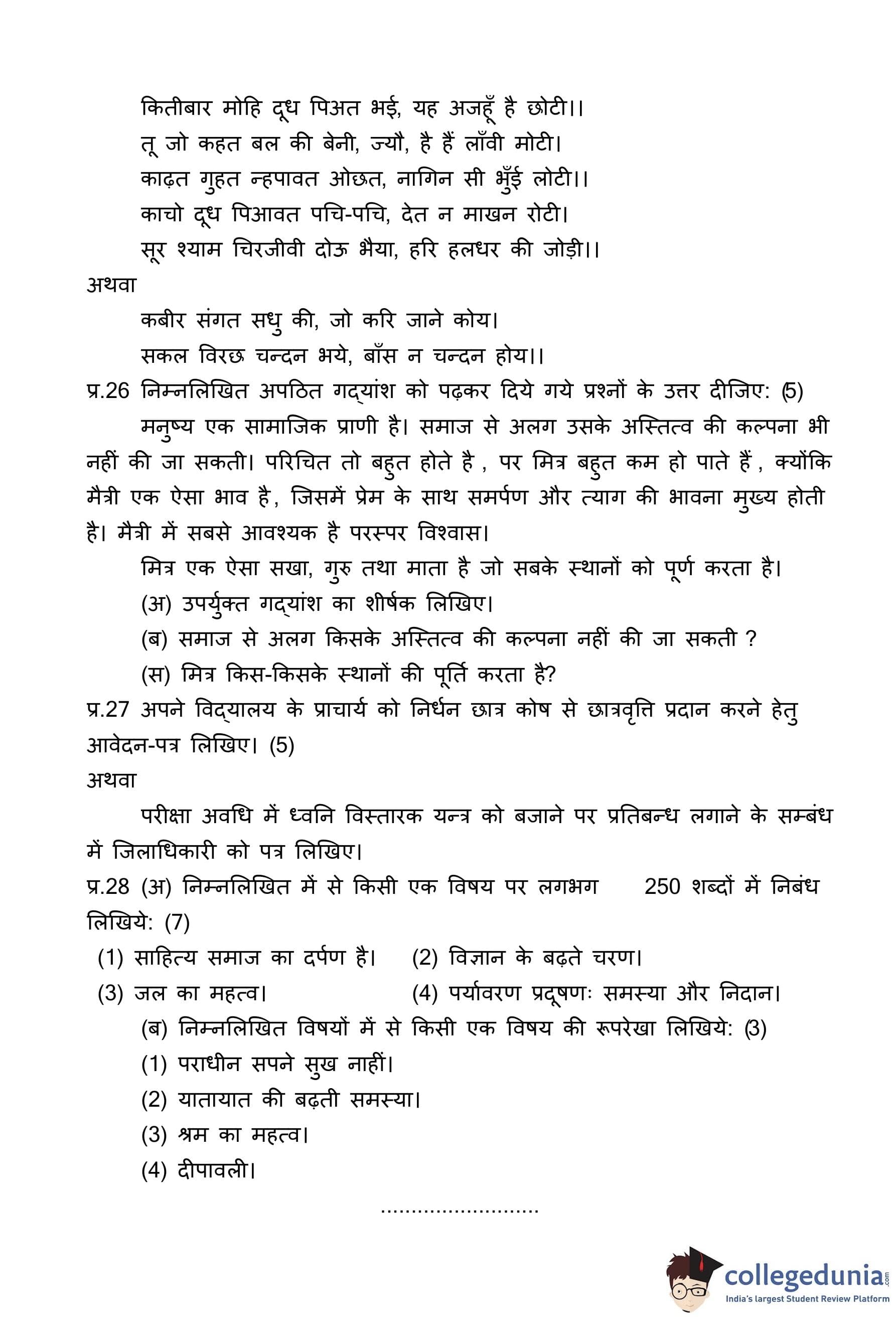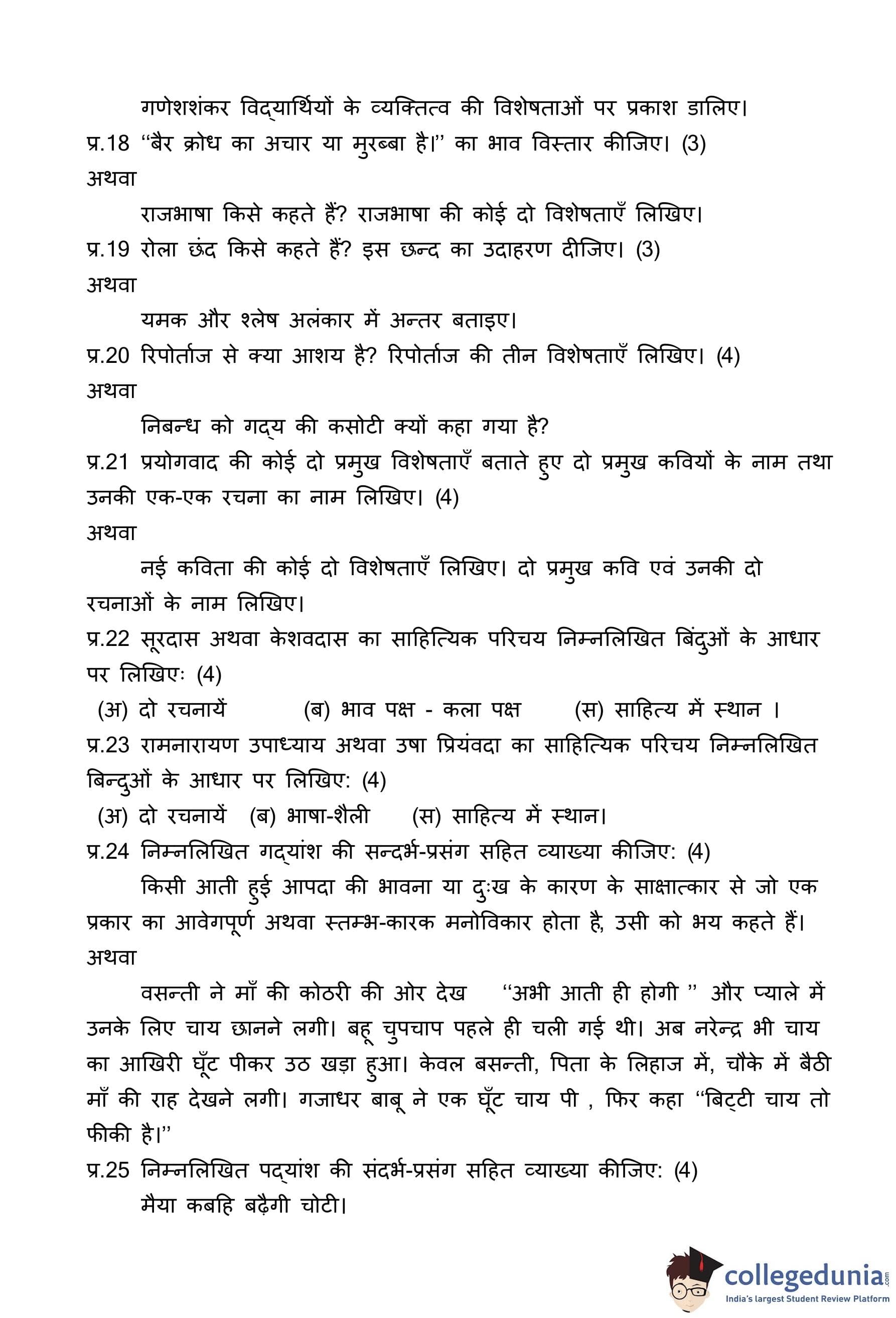 MP Board 12th Hindi (Special) Question Paper 2018 with Answer Key