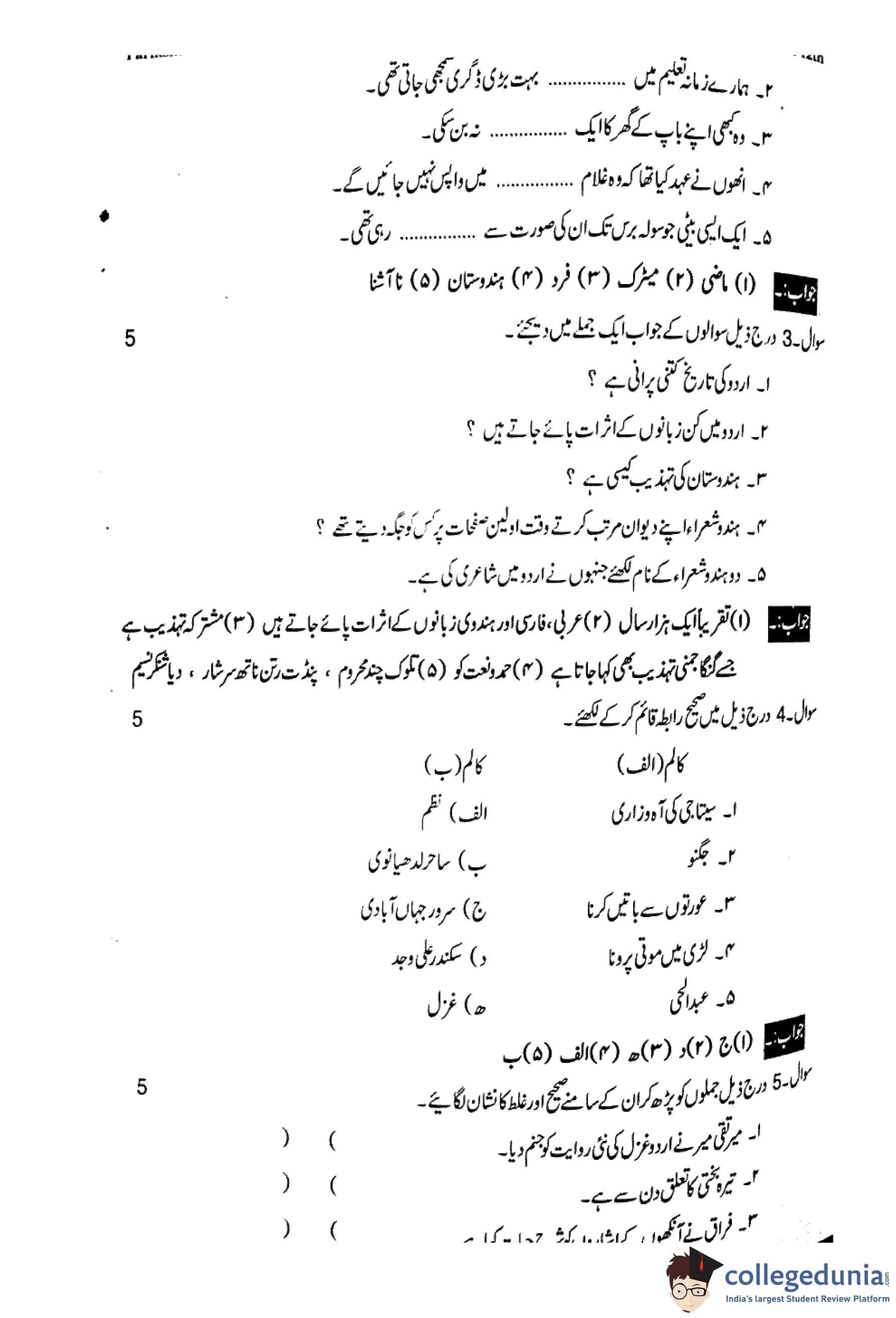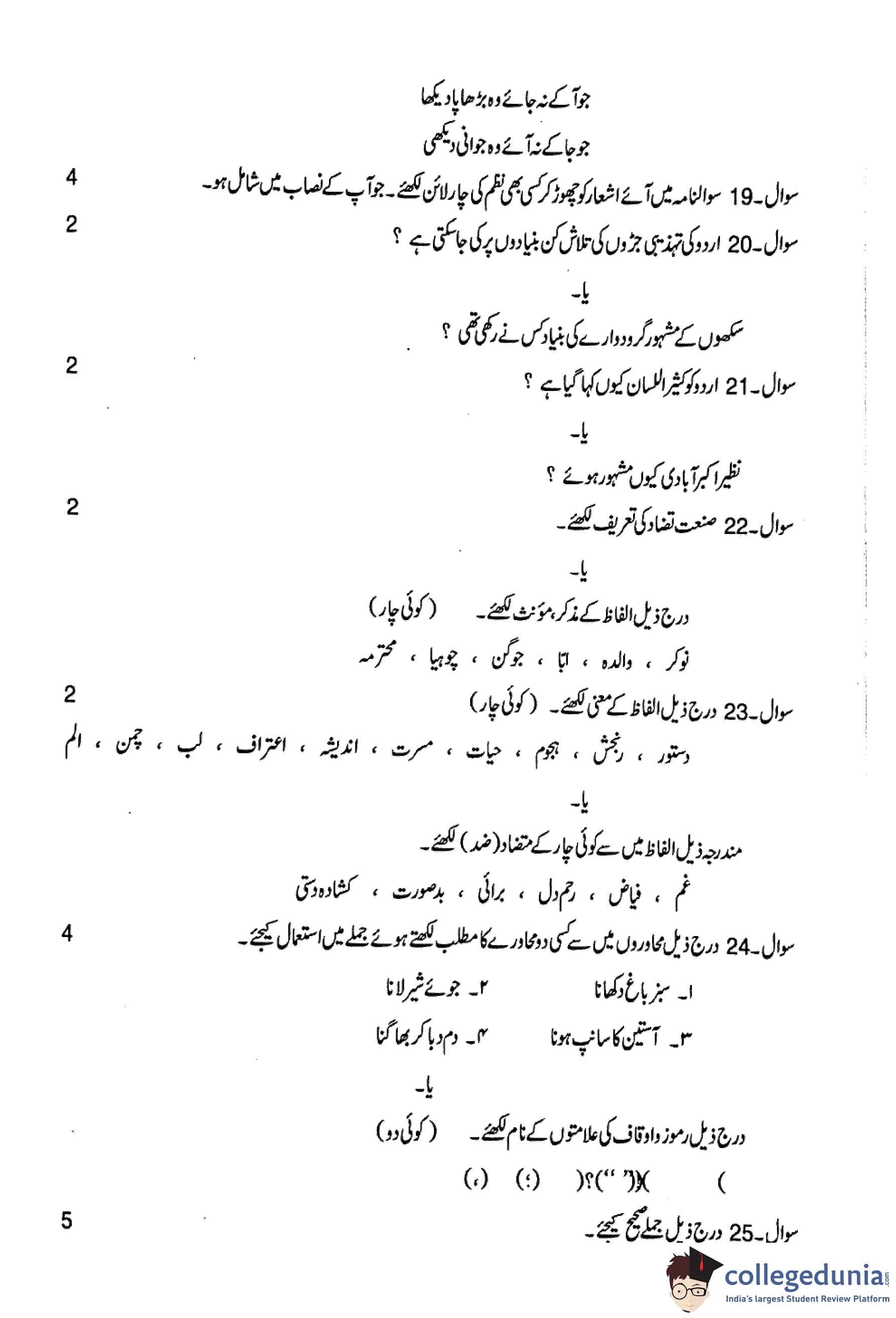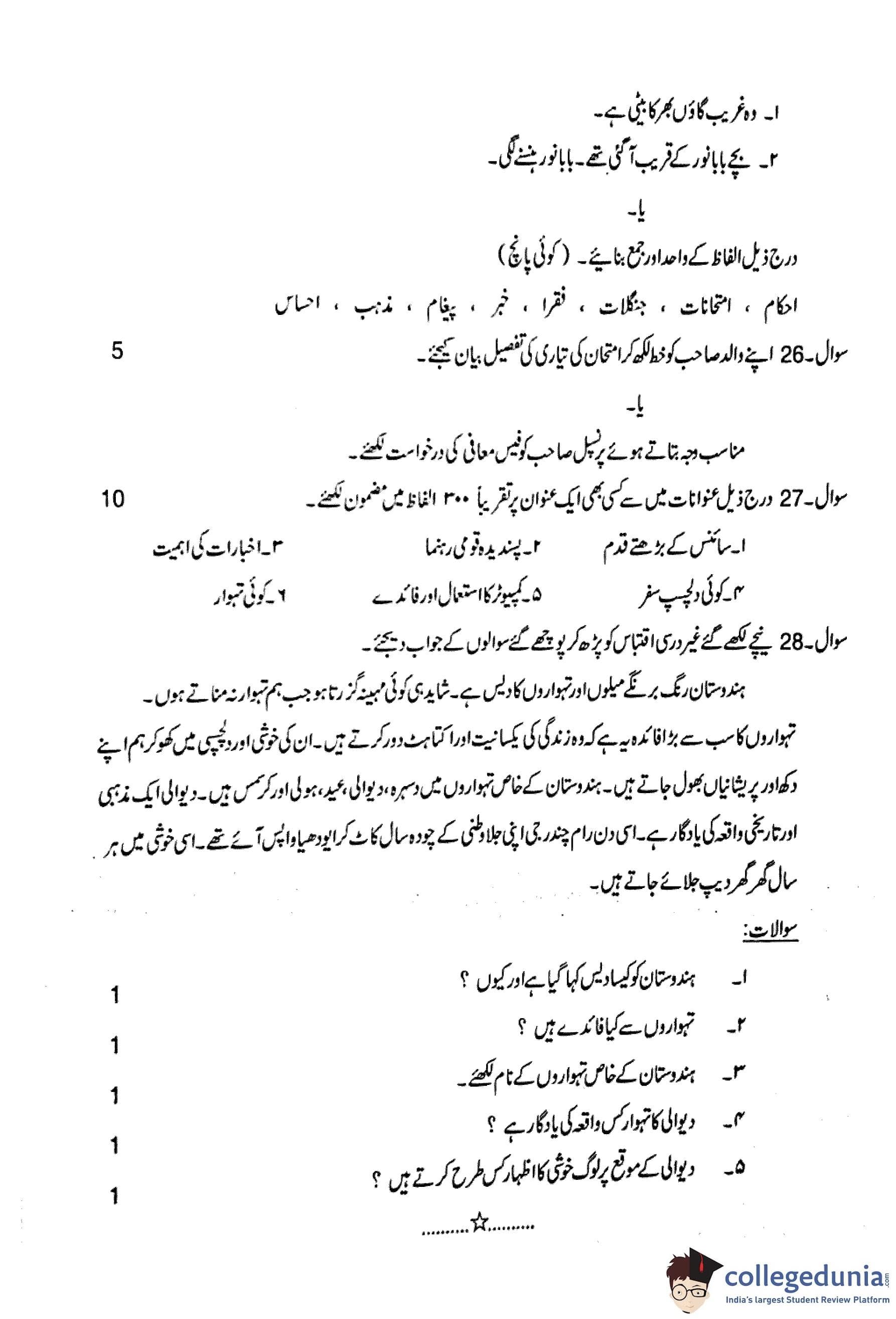 MP Board 12th Urdu Question Paper 2017 with Answer Key