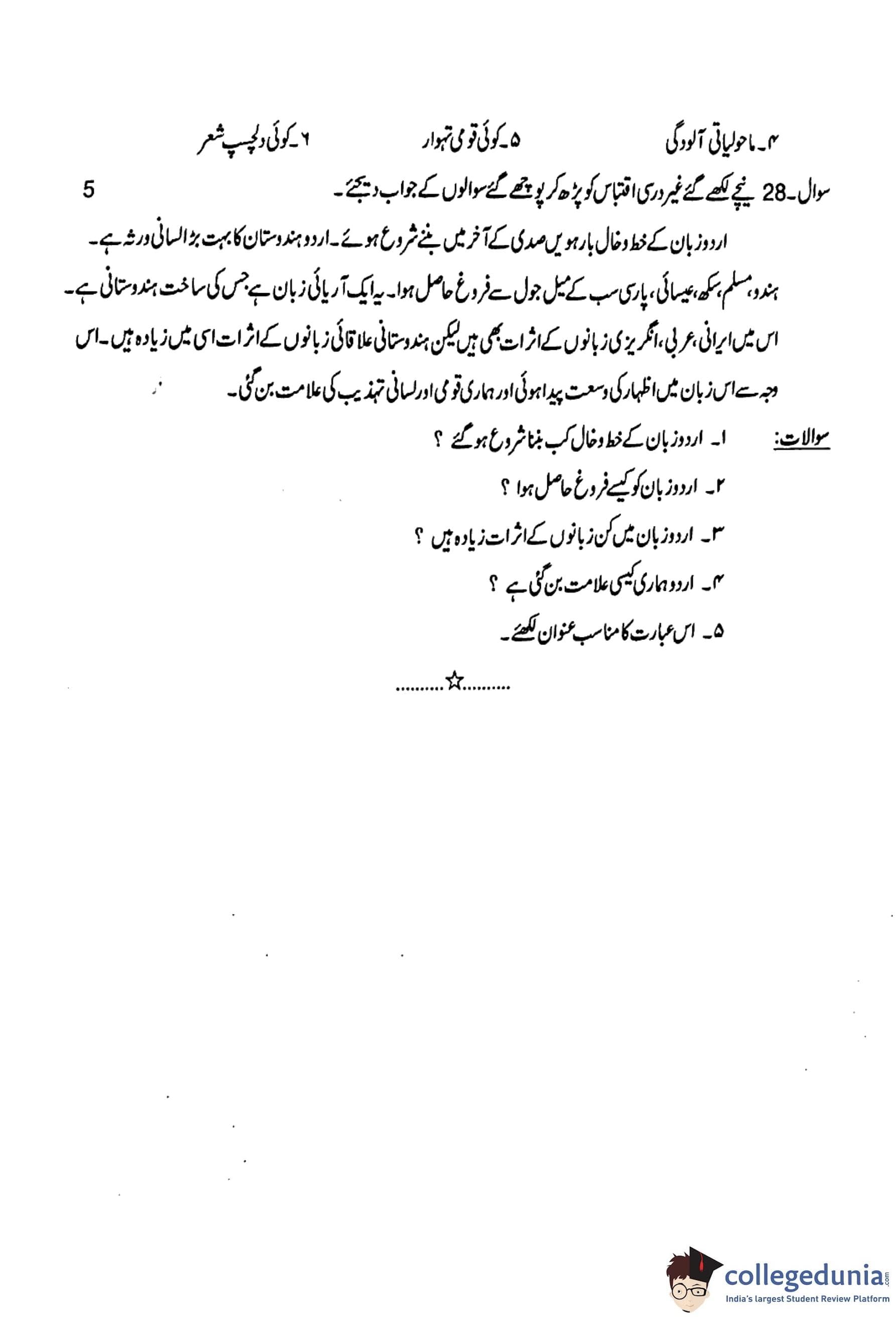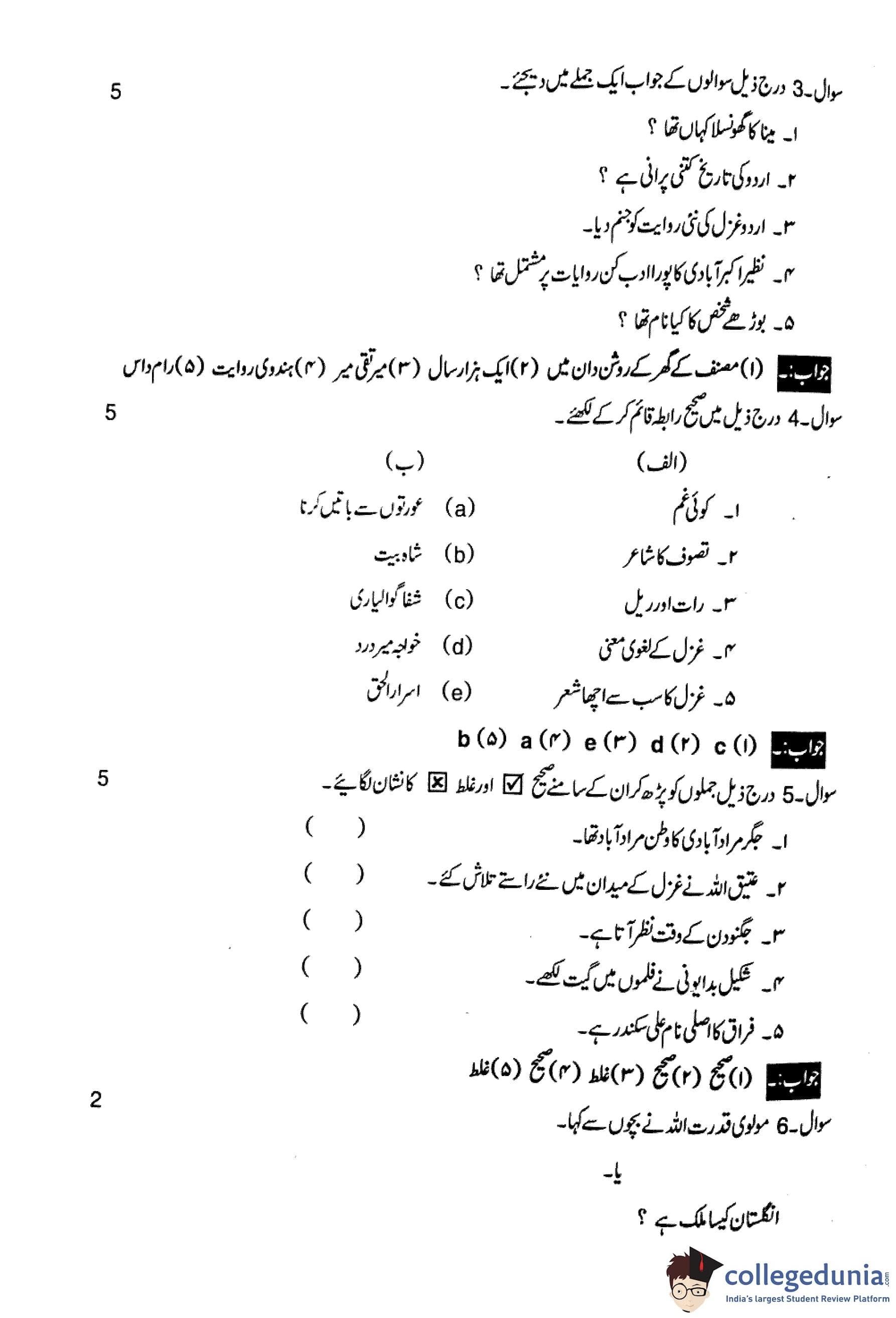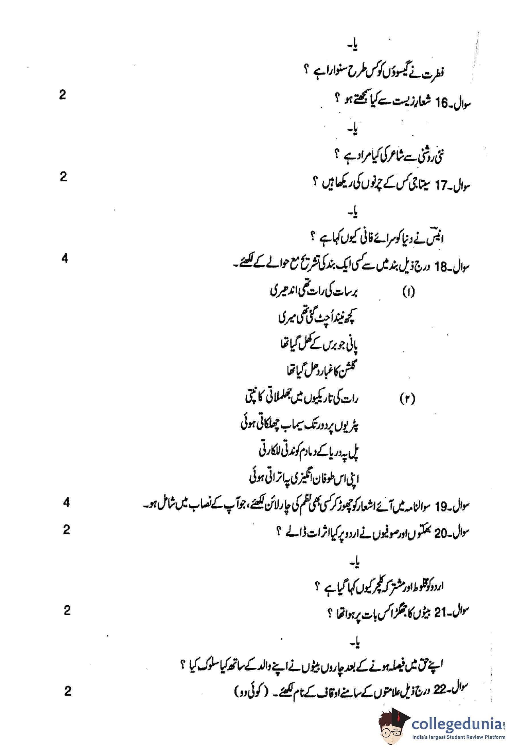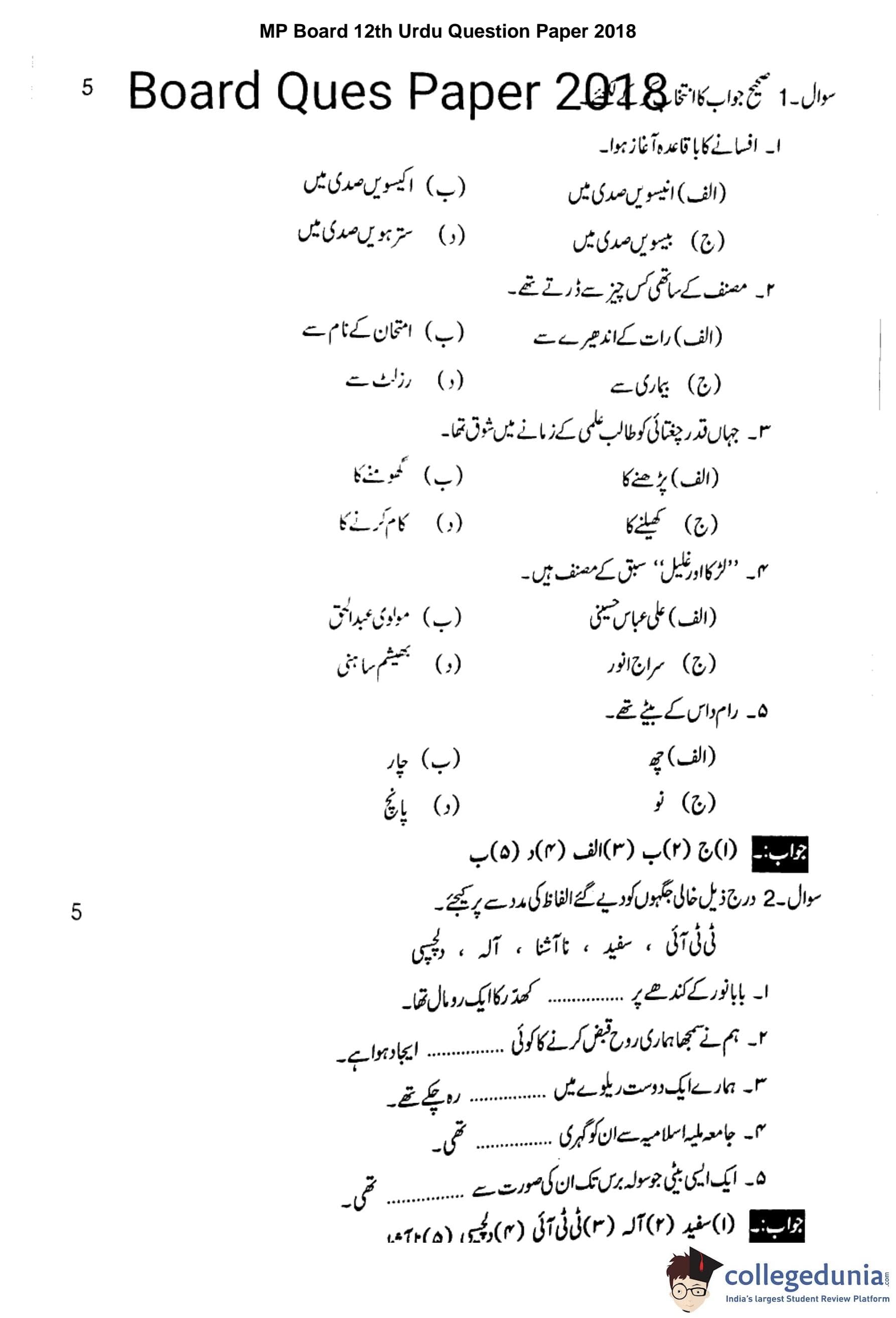 MP Board 12th Urdu Question Paper 2018 with Answer Key
