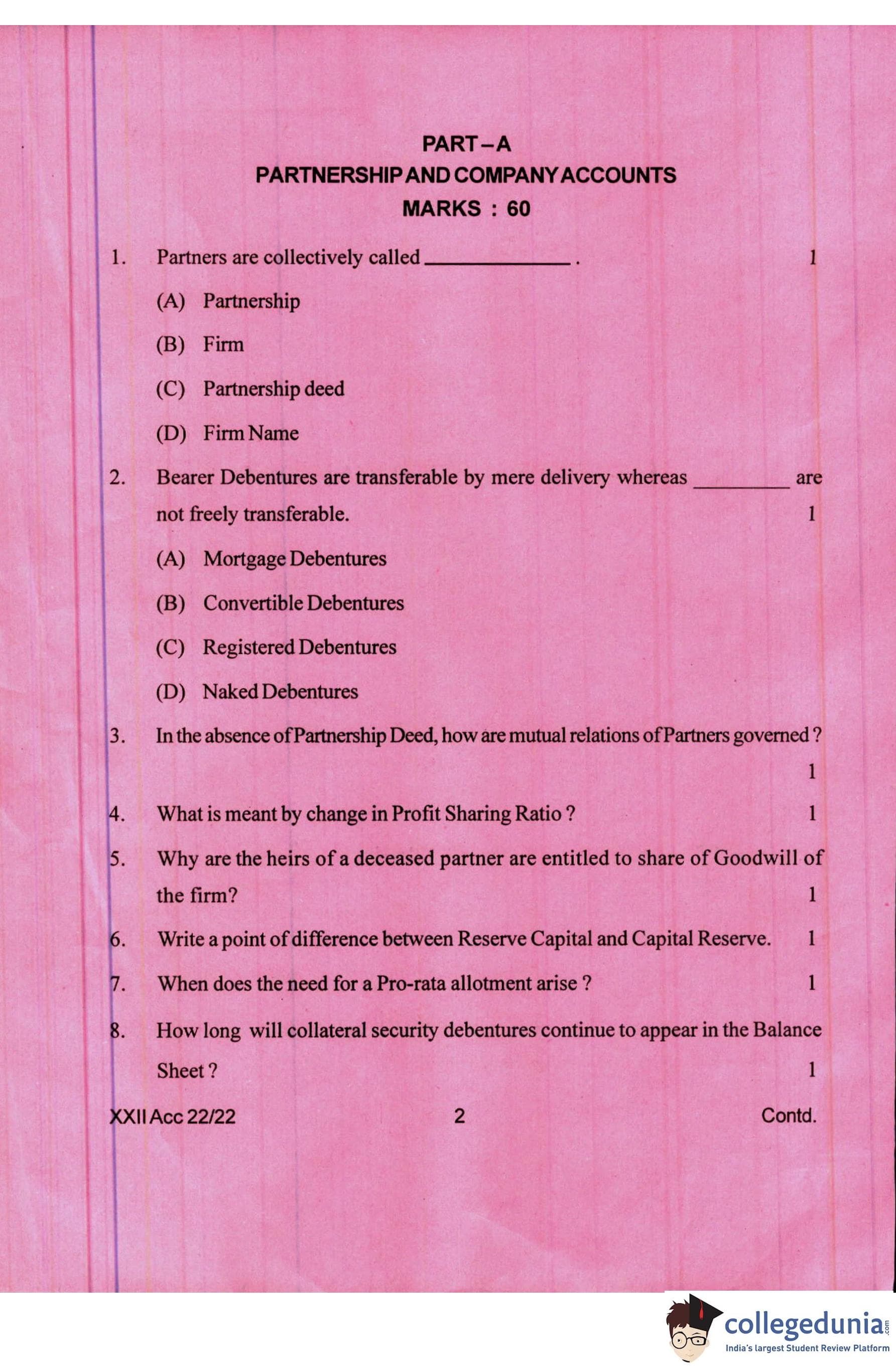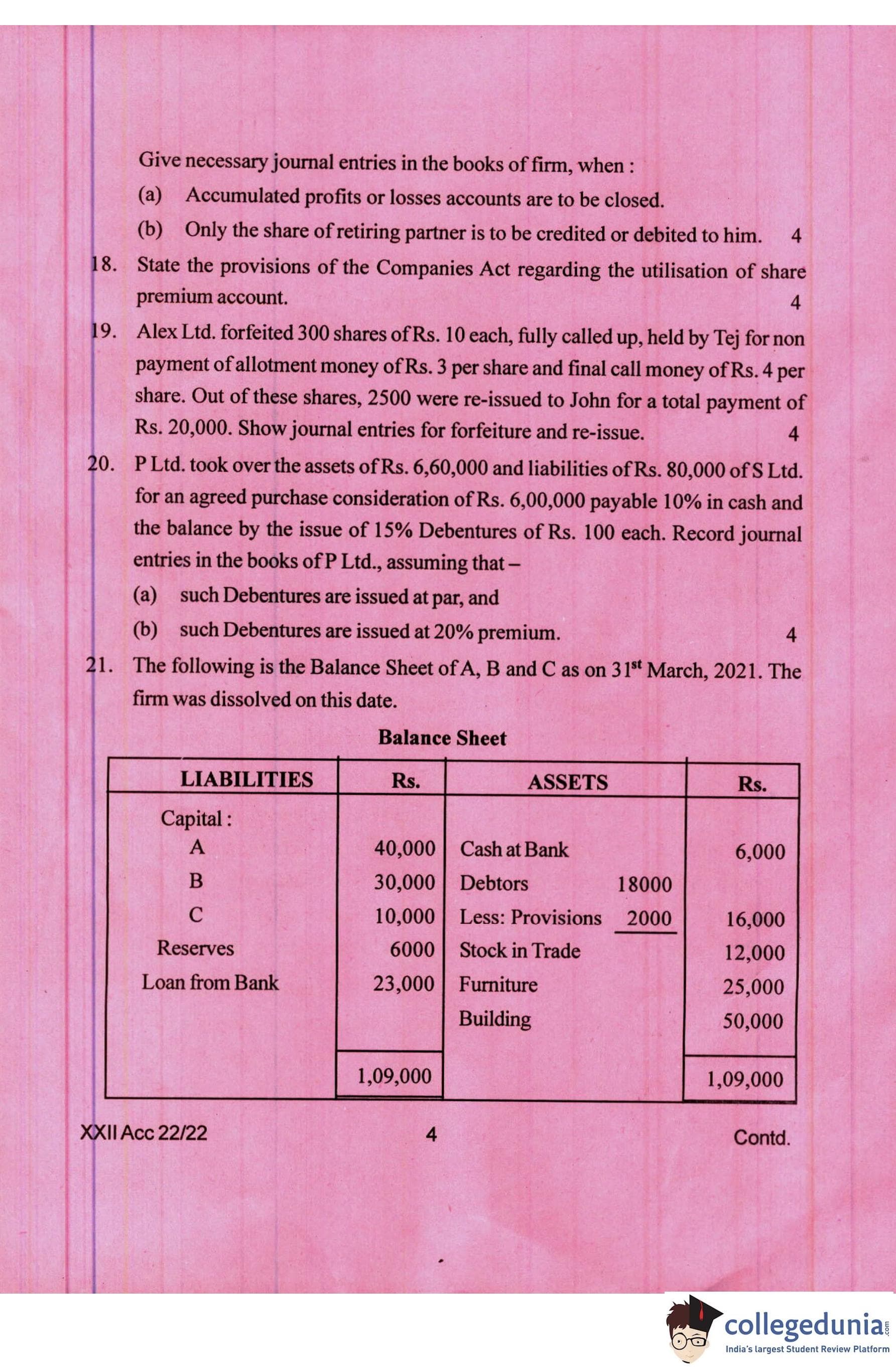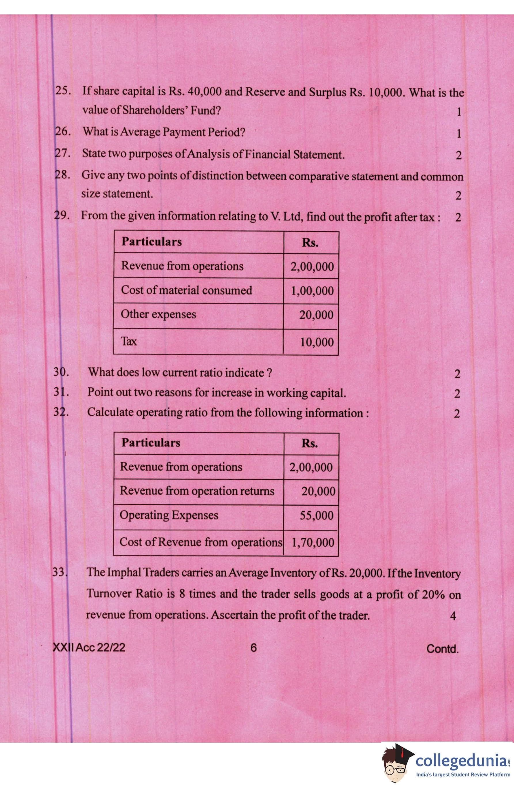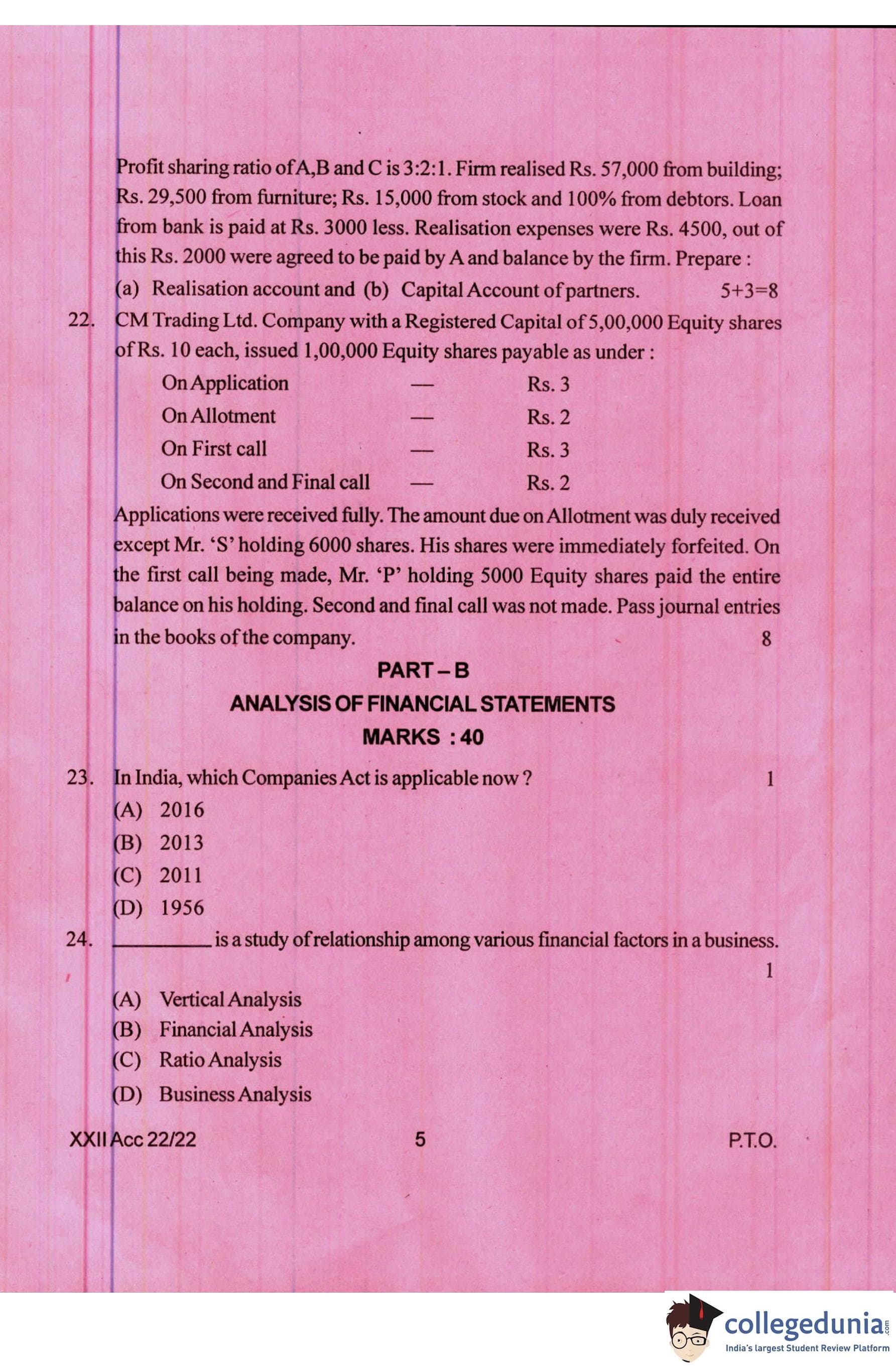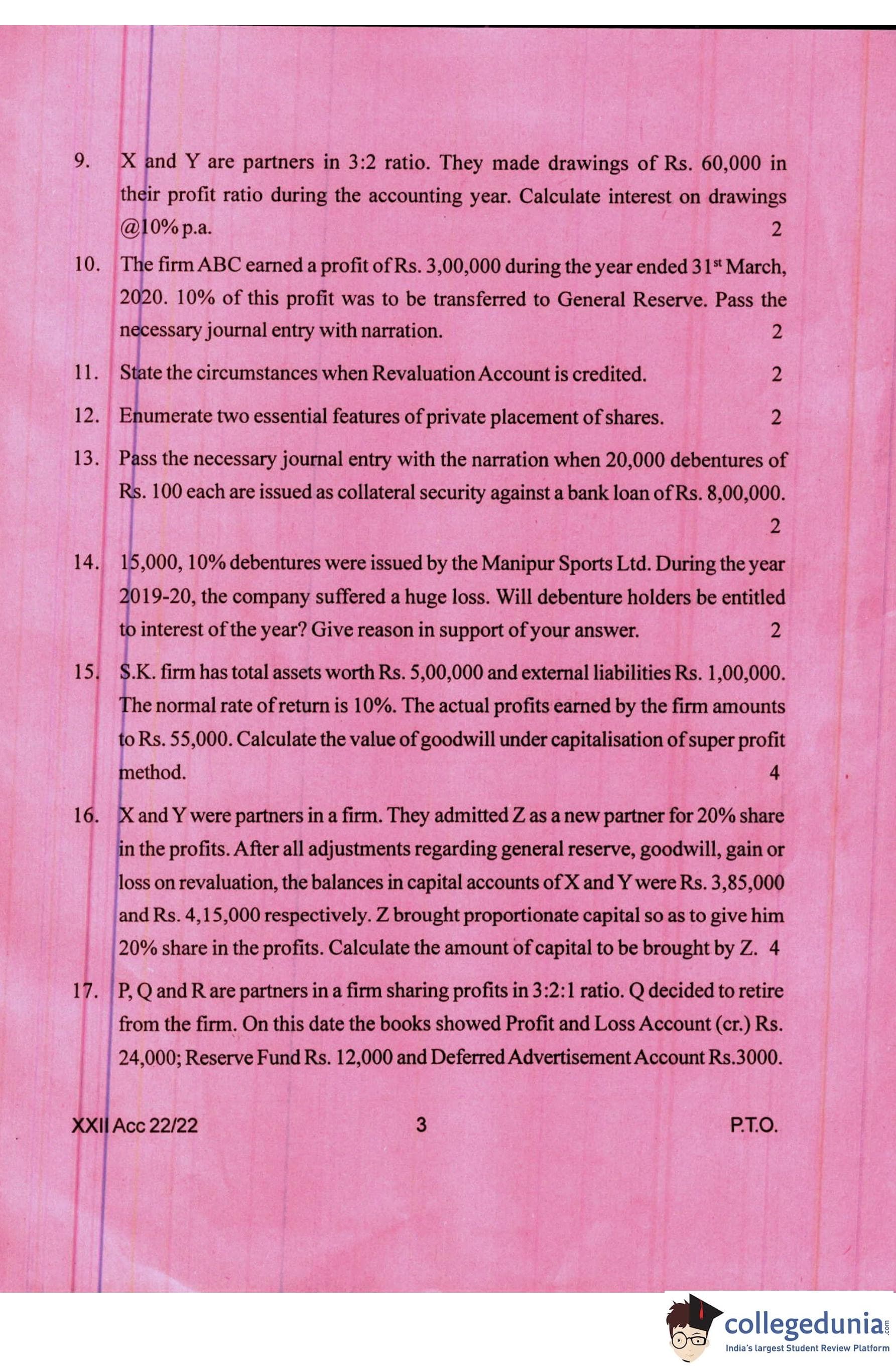 Manipur Board Class 12 Accountancy Question Paper 2022