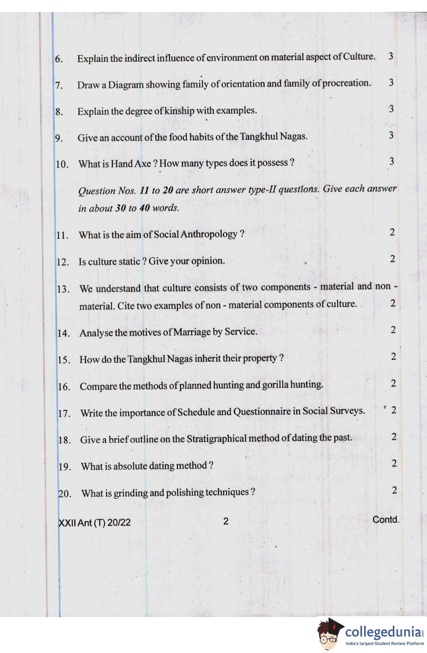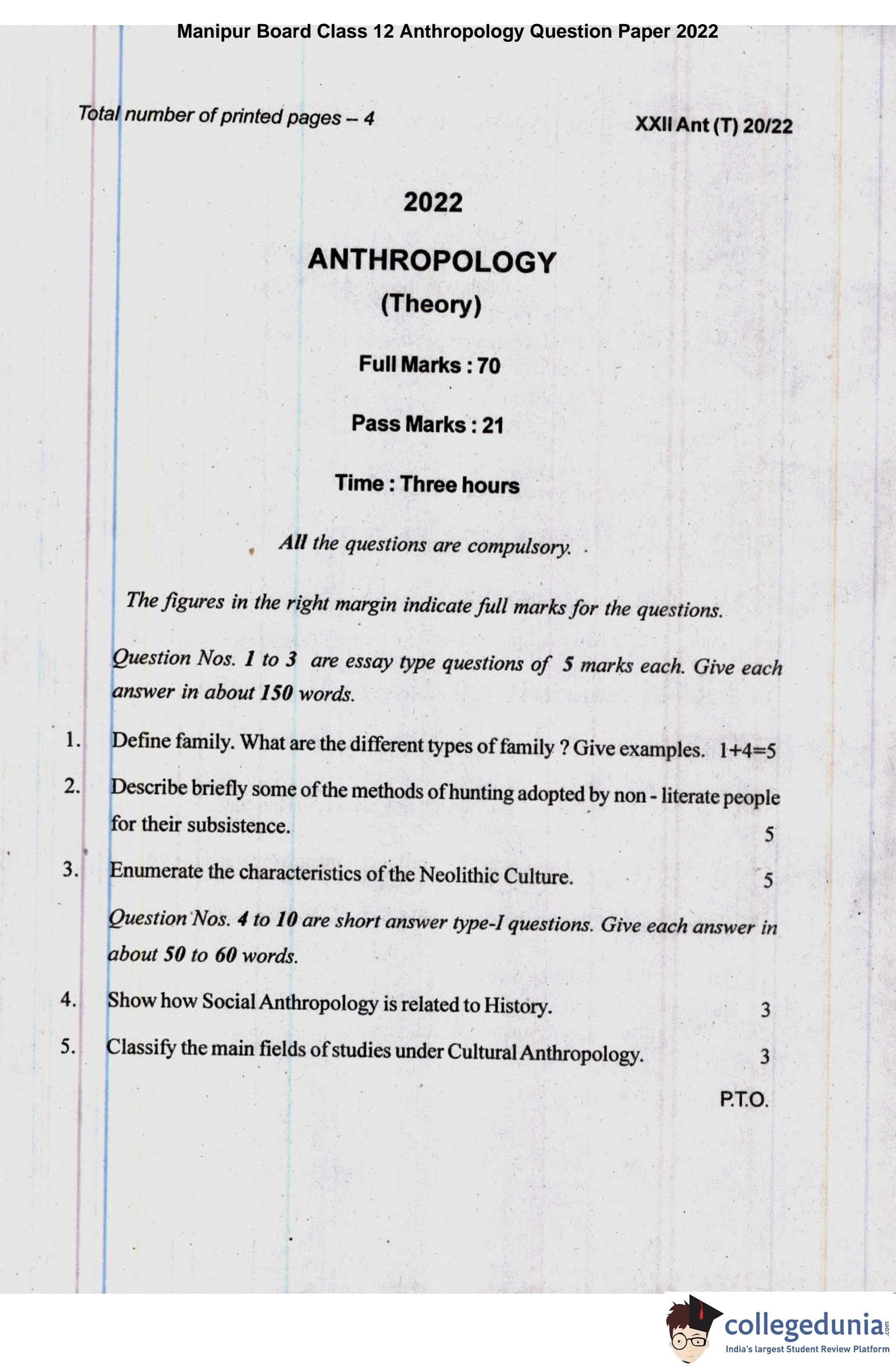 Manipur Board Class 12 Anthropology Question Paper 2022