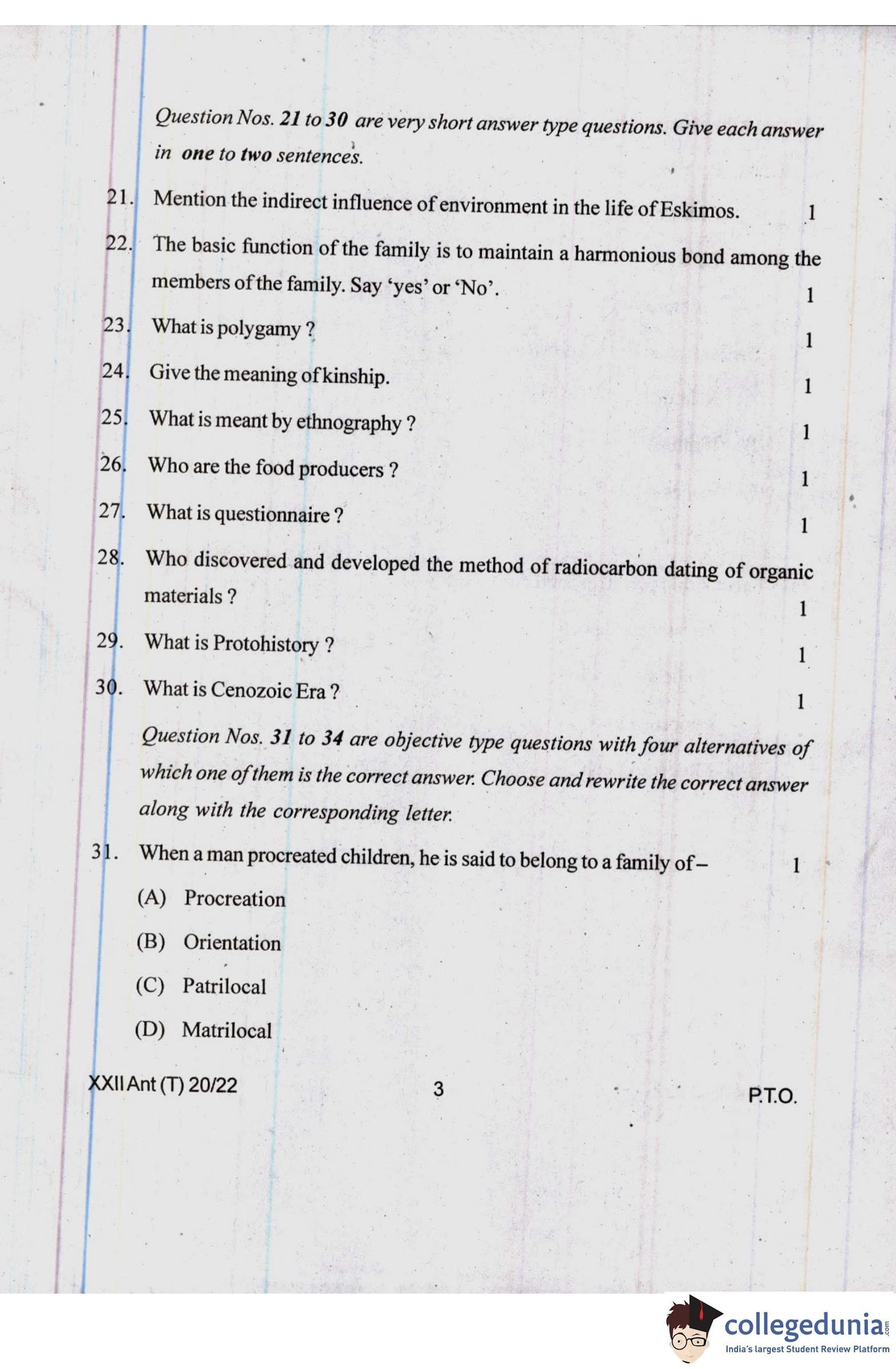 Manipur Board Class 12 Anthropology Question Paper 2022 with Answer Key pdf is available for download here. The exam was conducted by Council Of Higher Secondary Education, Manipur on April 21, 2022. The question paper comprised a total of 34 questions.