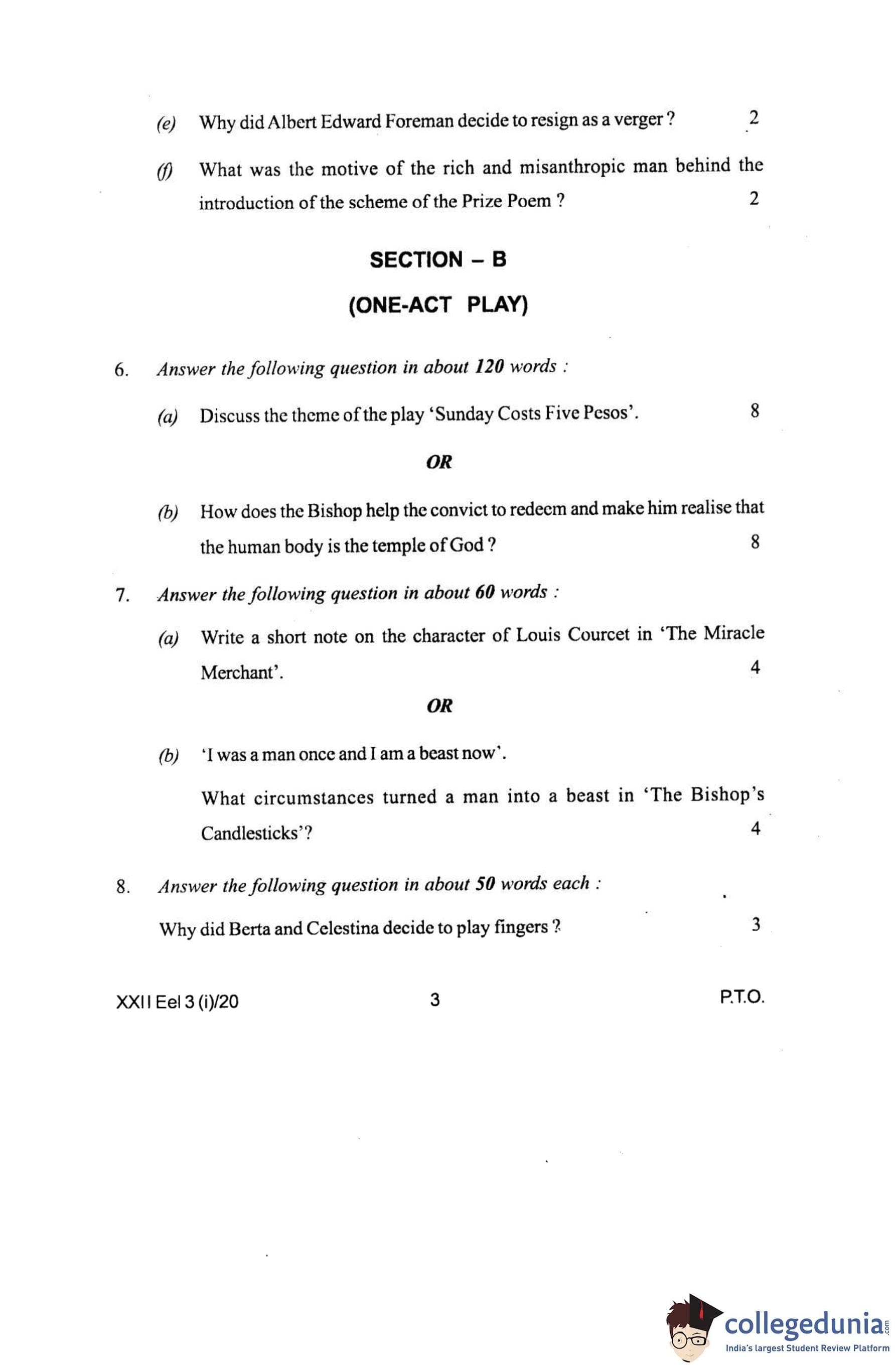 Manipur Board Class 12 Elective English Question Paper 2020 with Answer Key pdf is available for download here. The exam was conducted by Council Of Higher Secondary Education, Manipur on March 3, 2020. The question paper comprised a total of 18 questions divided among 4 sections.