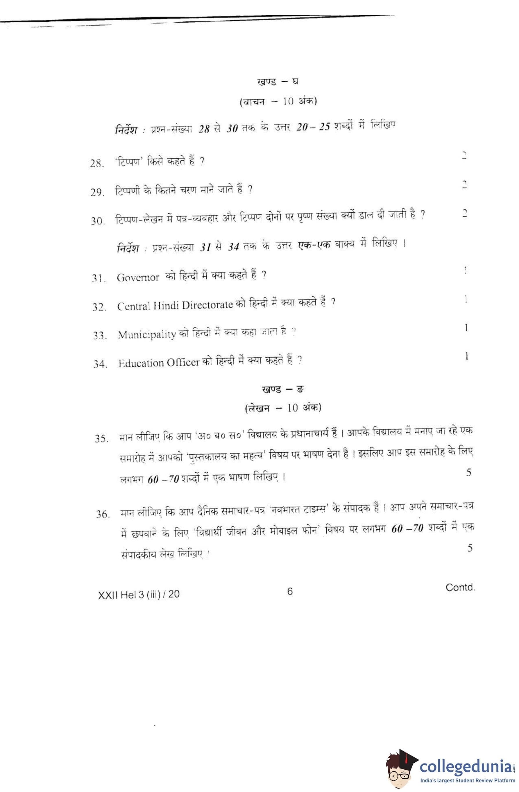Manipur Board Class 12 Elective Hindi Question Paper 2020 with Answer Key pdf is available for download here. The exam was conducted by Council Of Higher Secondary Education, Manipur on March 3, 2020. The question paper comprised a total of 42 questions divided among 6 sections.