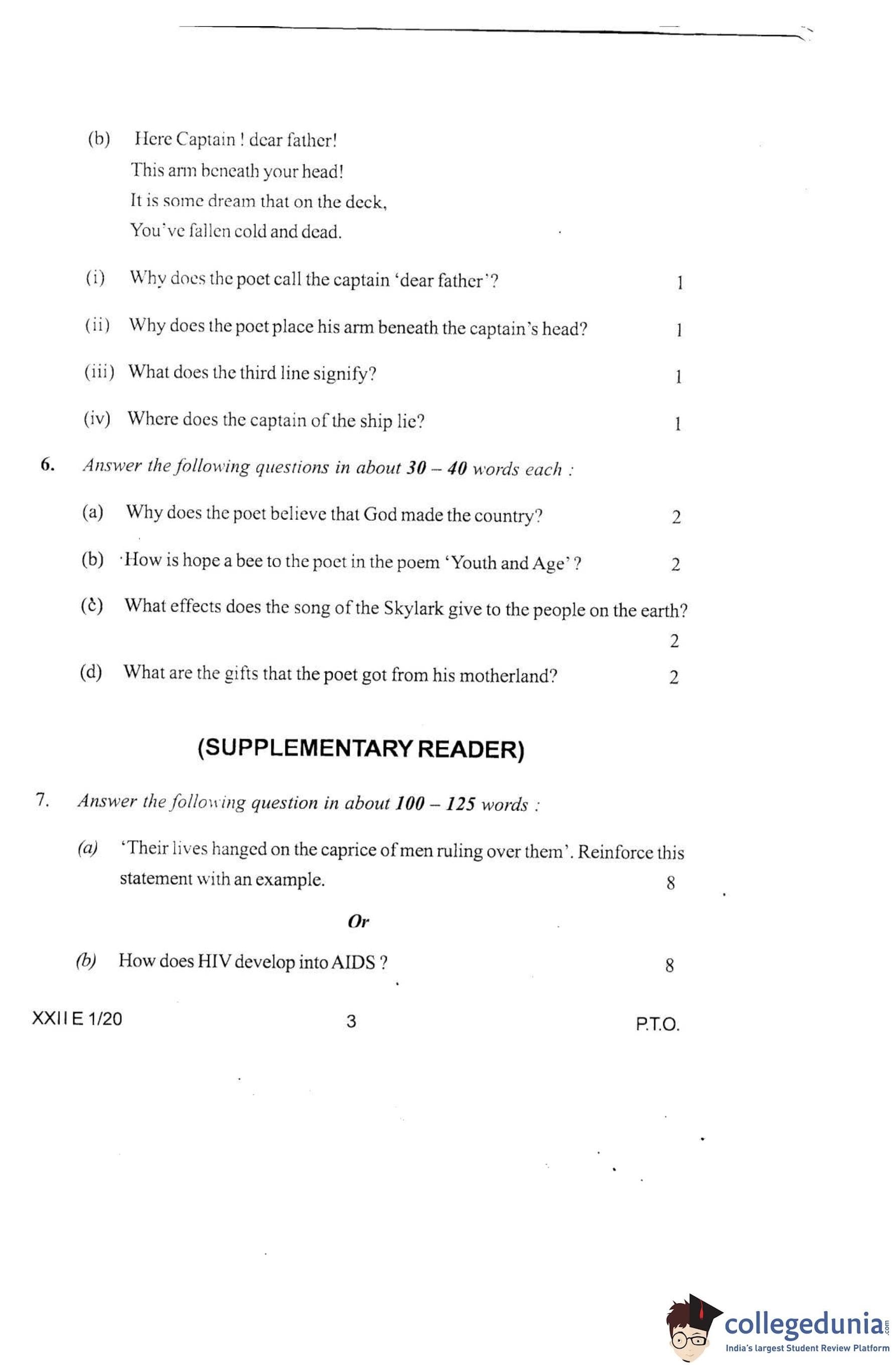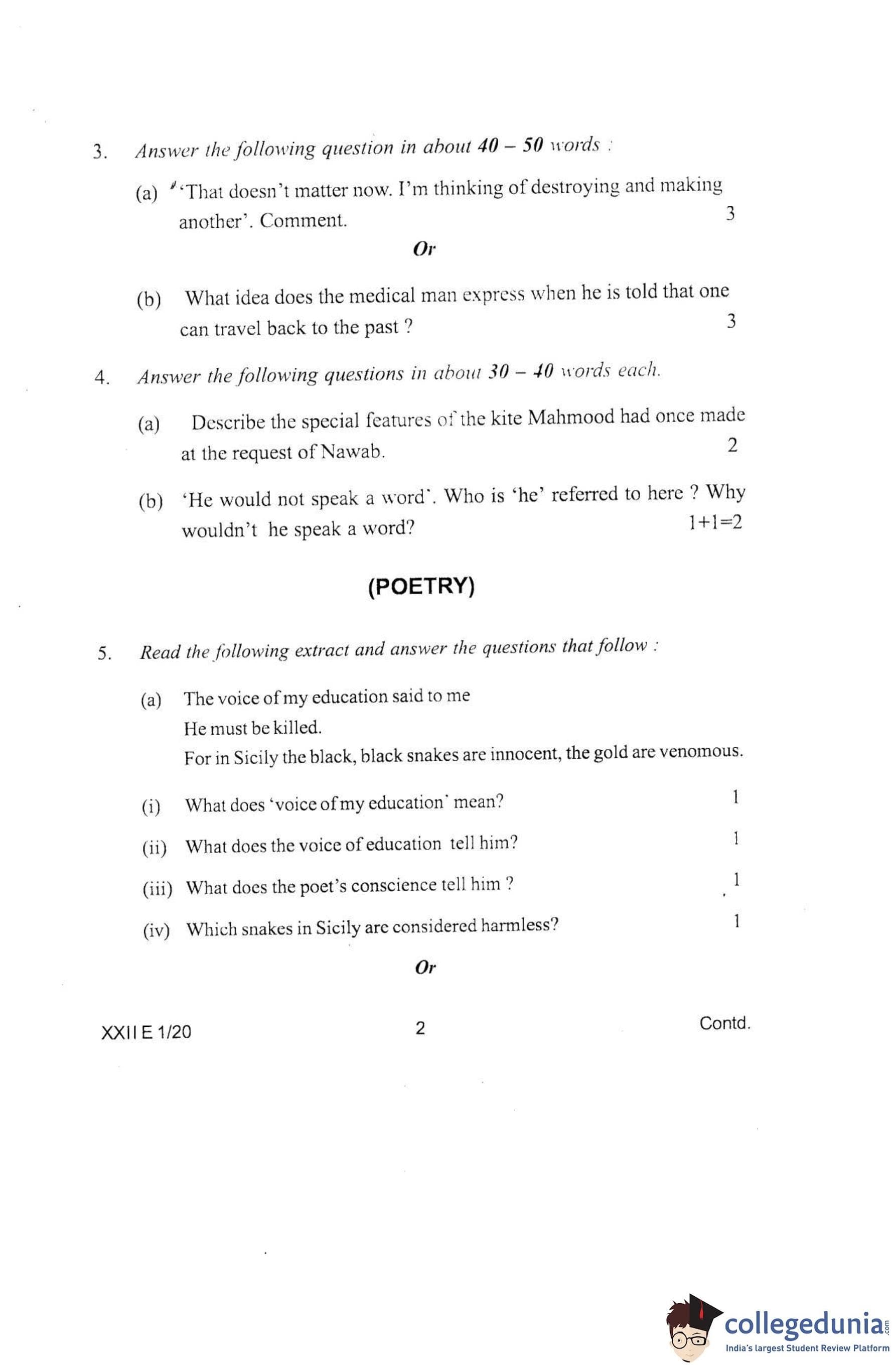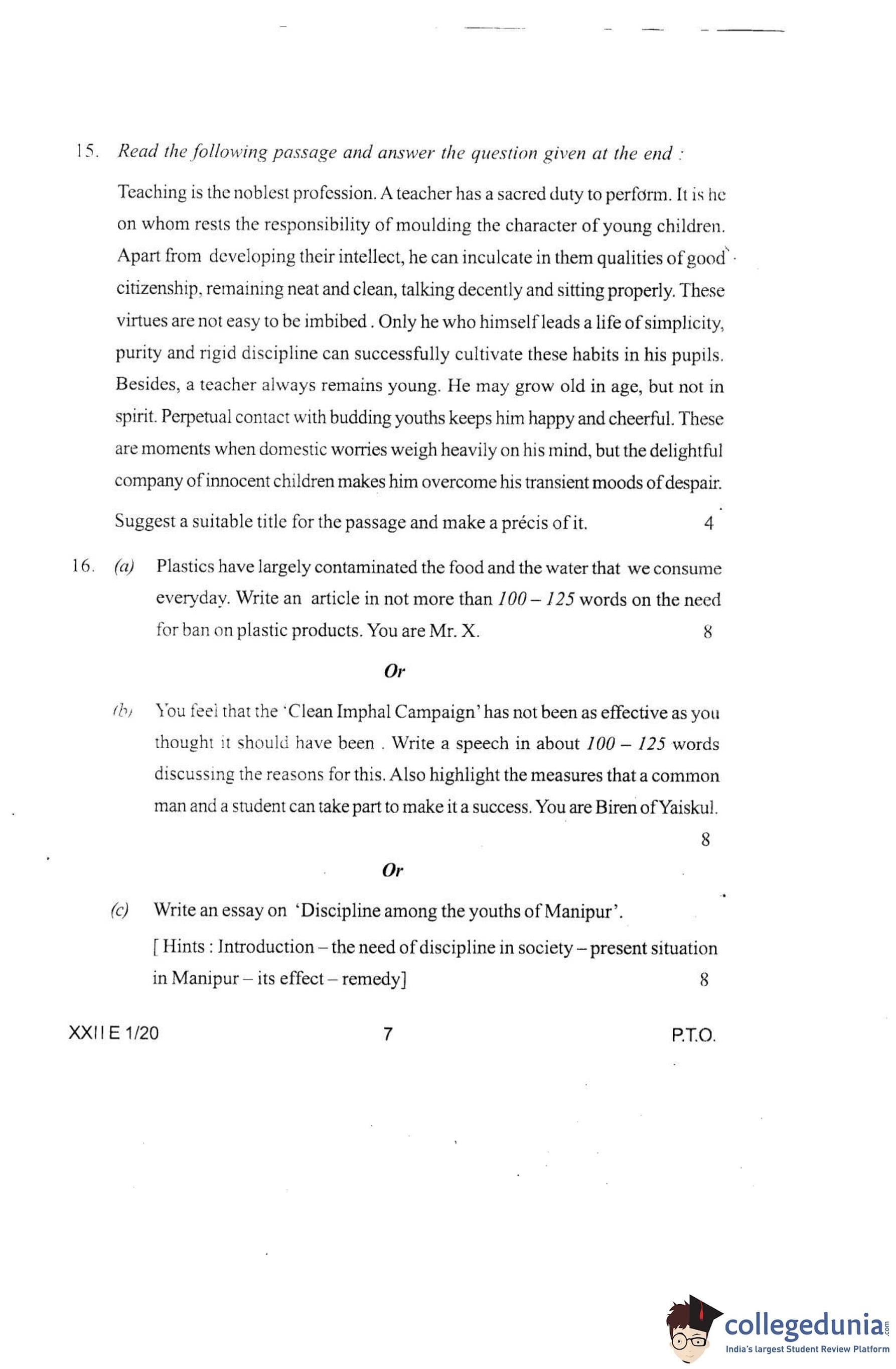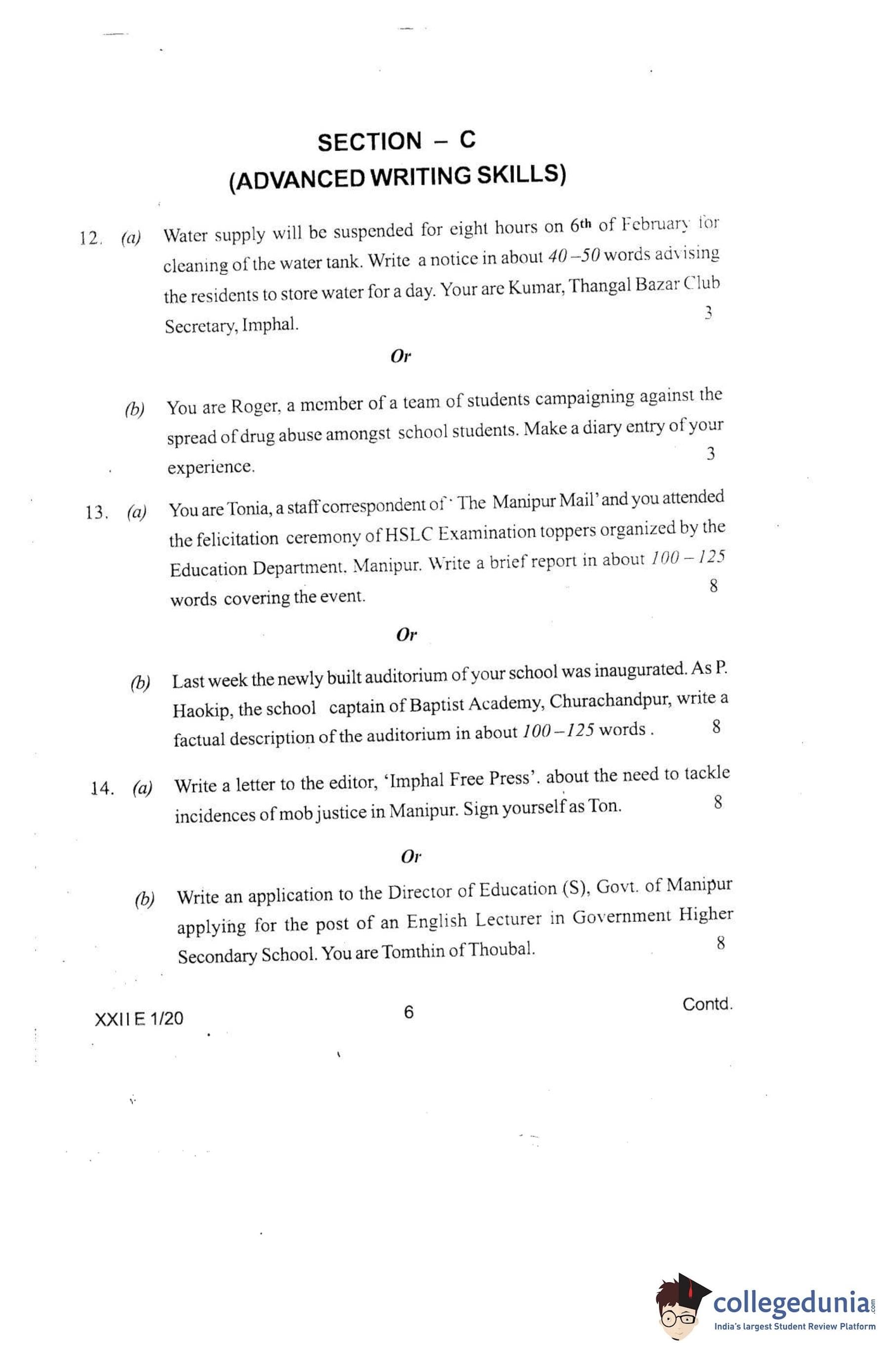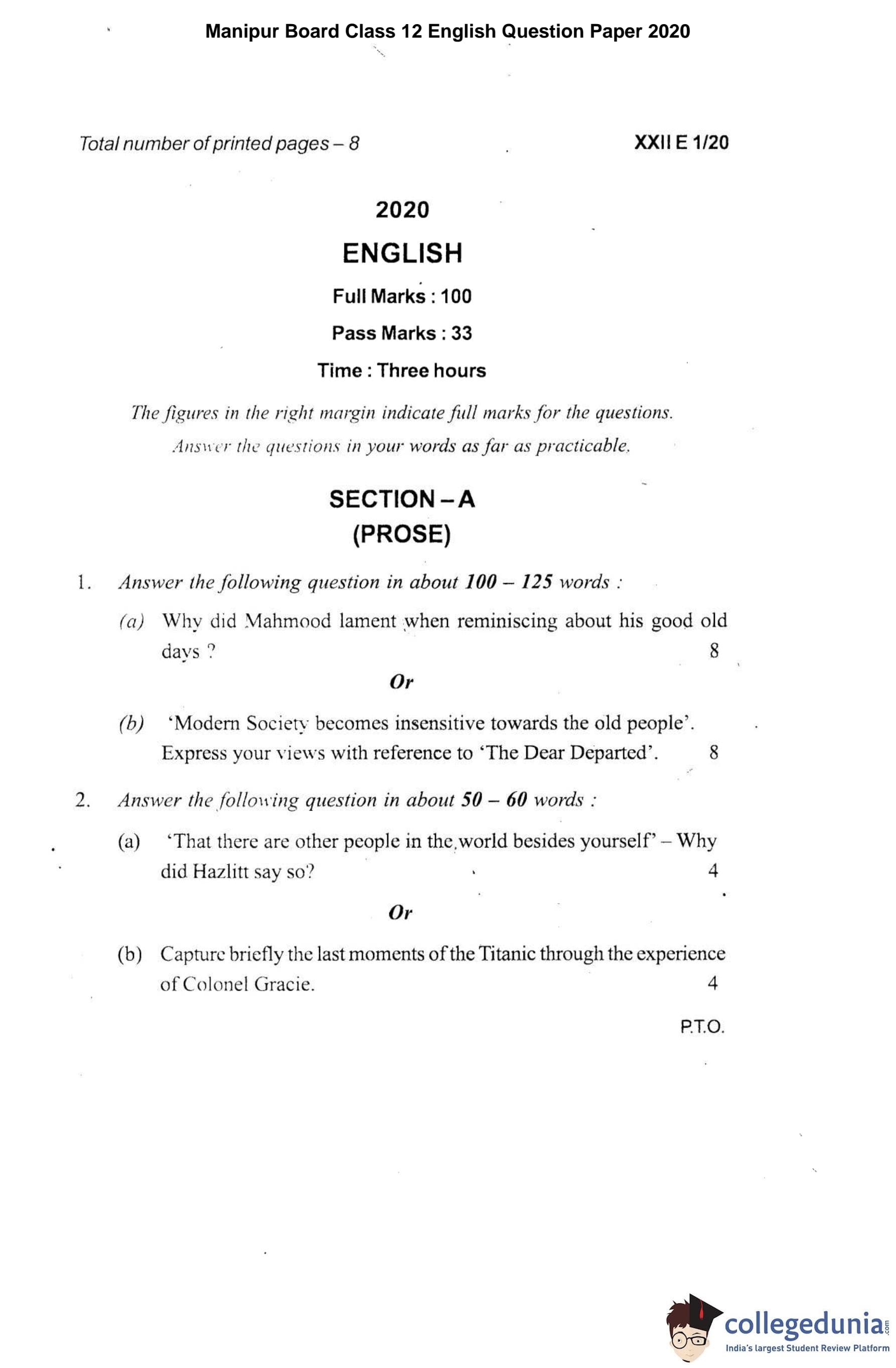 Manipur Board Class 12 English Question Paper 2020