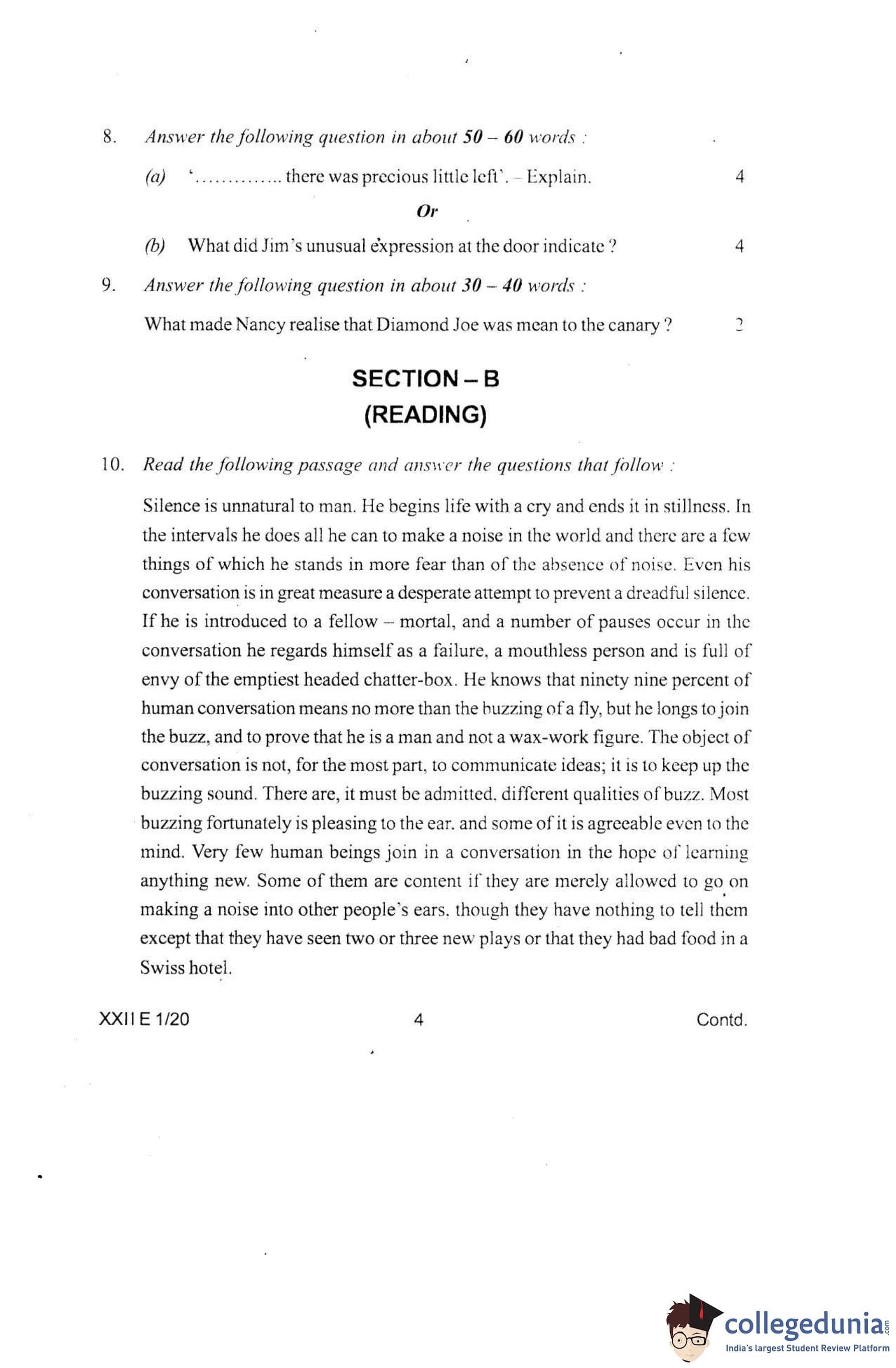 Manipur Board Class 12 English Question Paper 2020 with Answer Key pdf is available for download here. The exam was conducted by Council Of Higher Secondary Education, Manipur on Febraury 14, 2020. The question paper comprised a total of 17 questions divided among 4 sections.