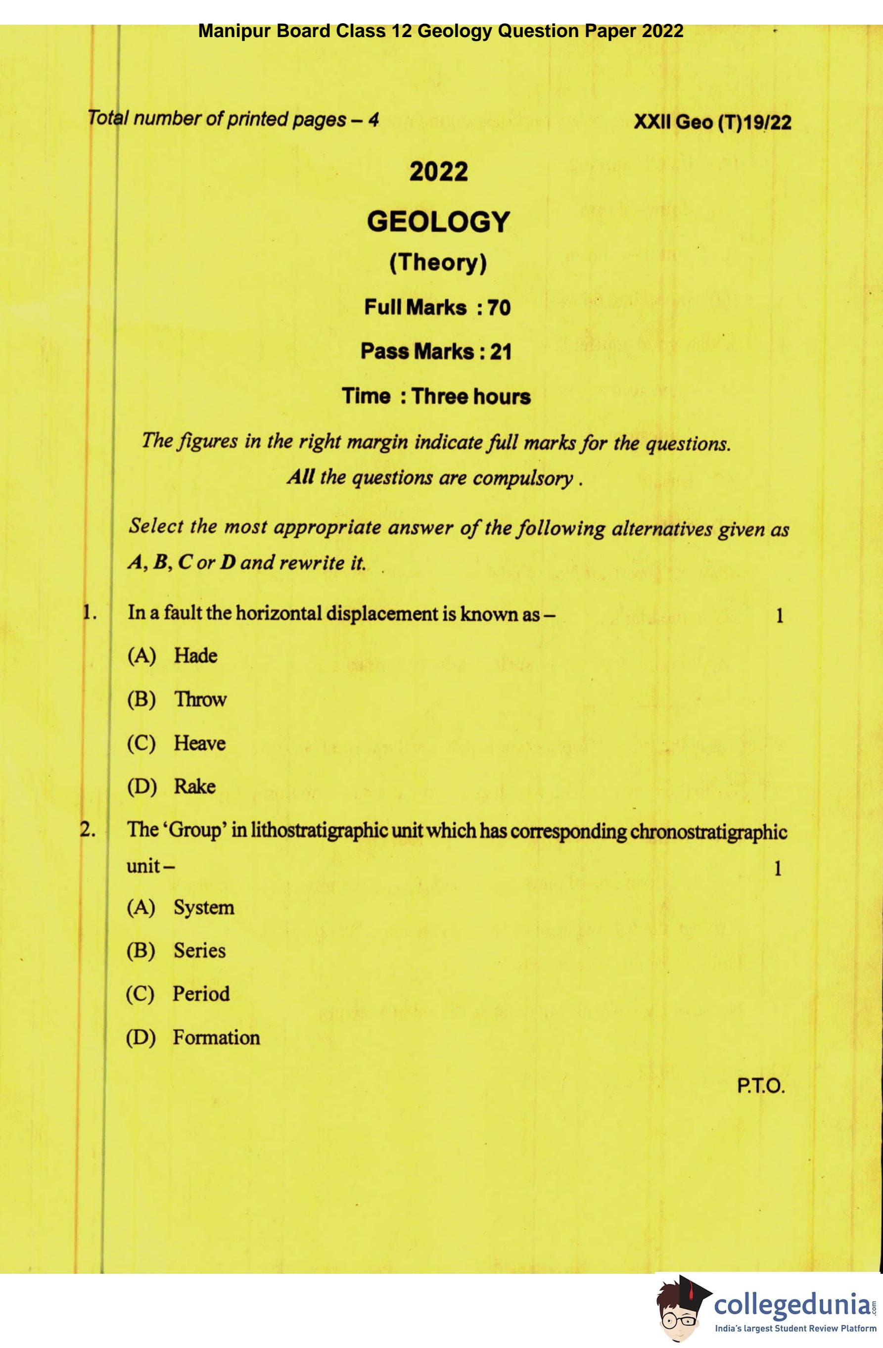| Manipur Board Class 12 Geology Question Paper 2022 PDF | Manipur Board Class 12 Geology Answer Key 2022 PDF |