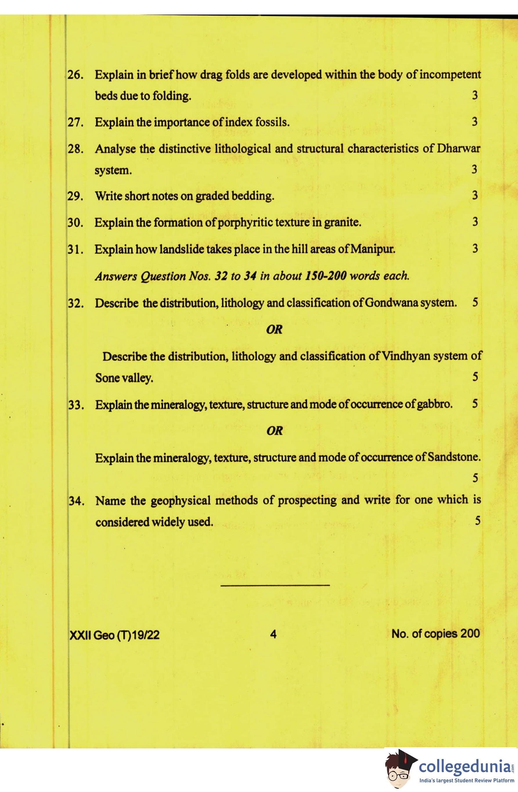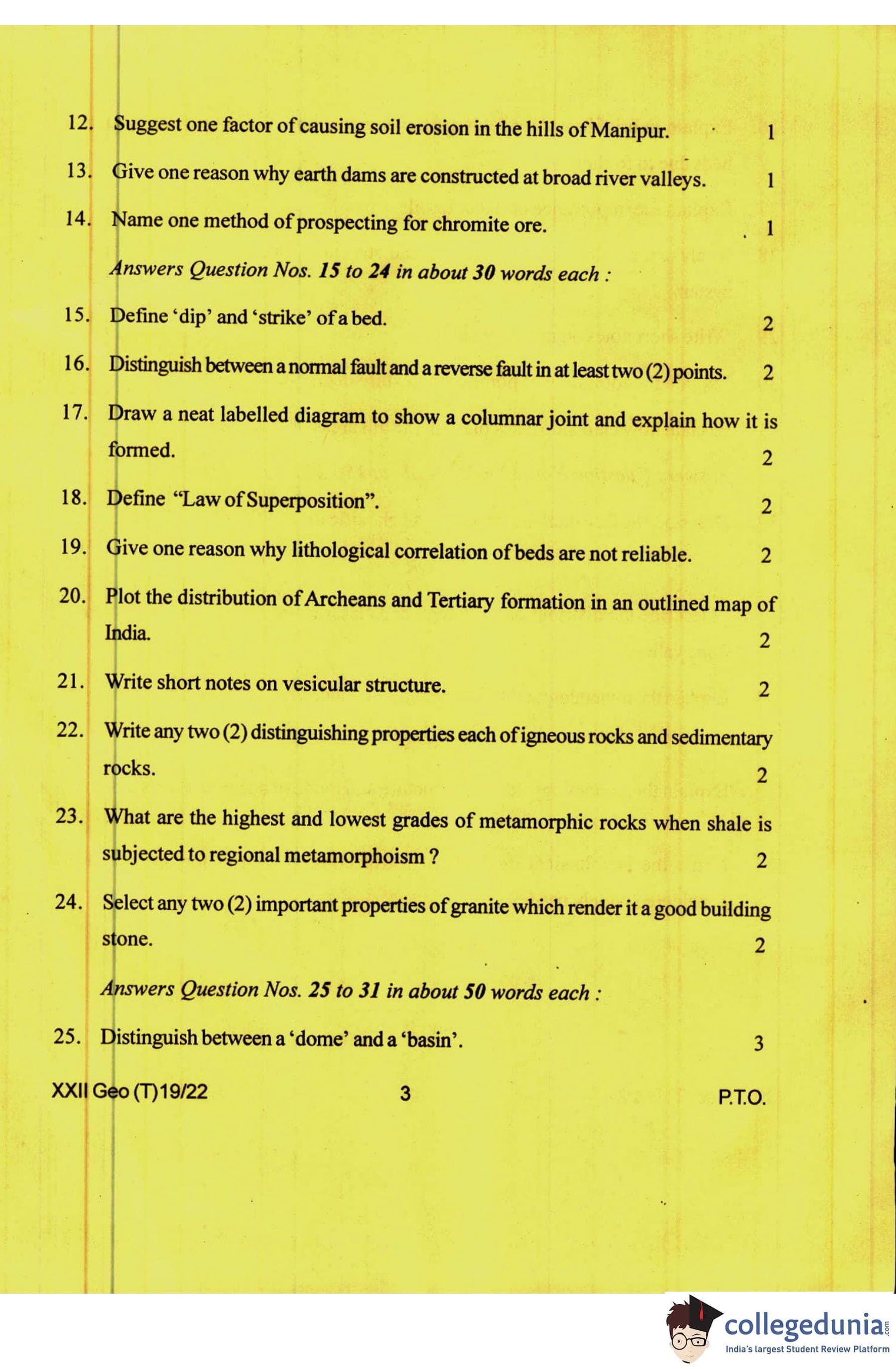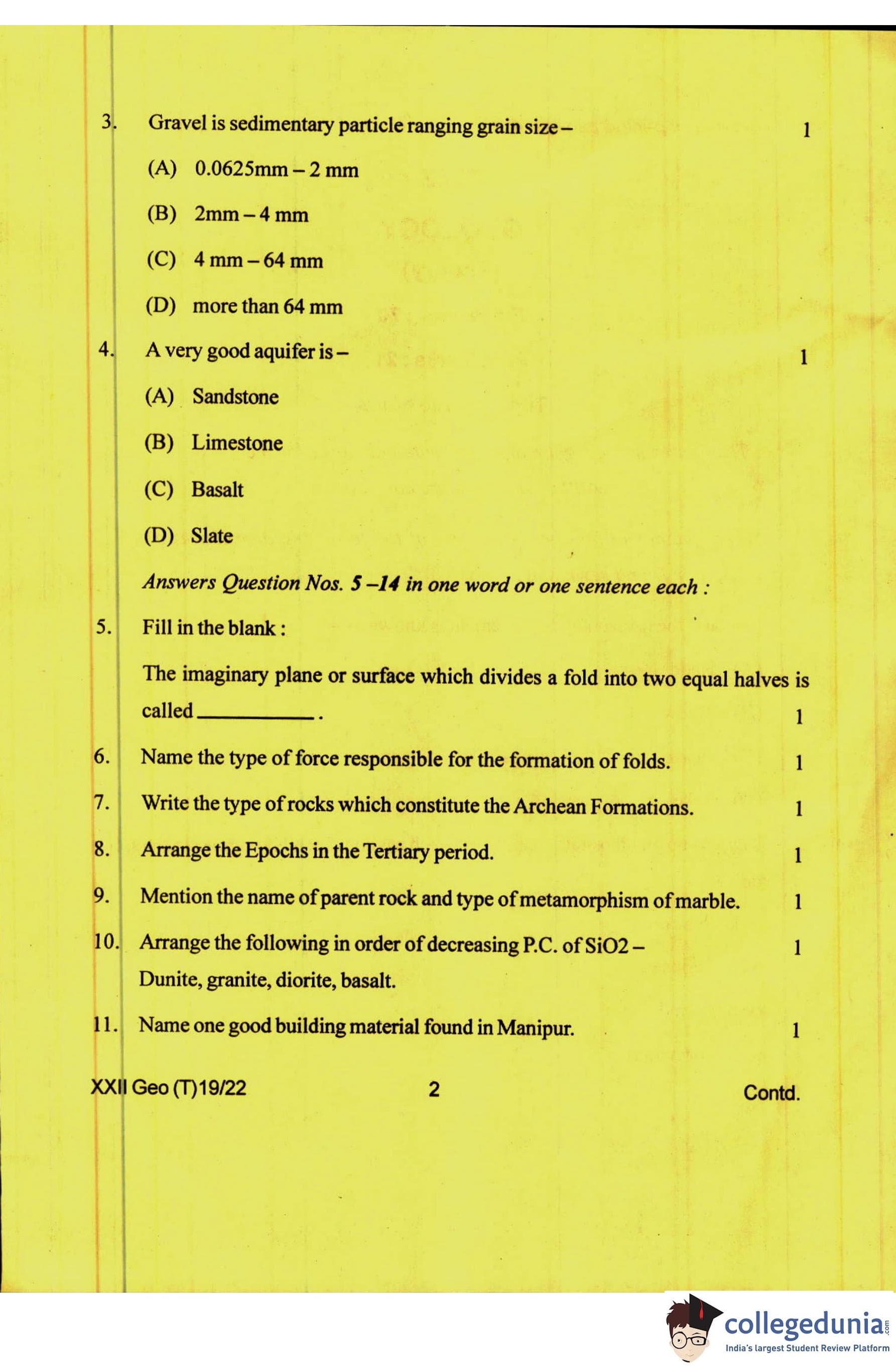 Manipur Board Class 12 Geology Question Paper 2022 with Answer Key pdf is available for download here. The exam was conducted by Council Of Higher Secondary Education, Manipur on May 6, 2022. The question paper comprised a total of 34 questions.