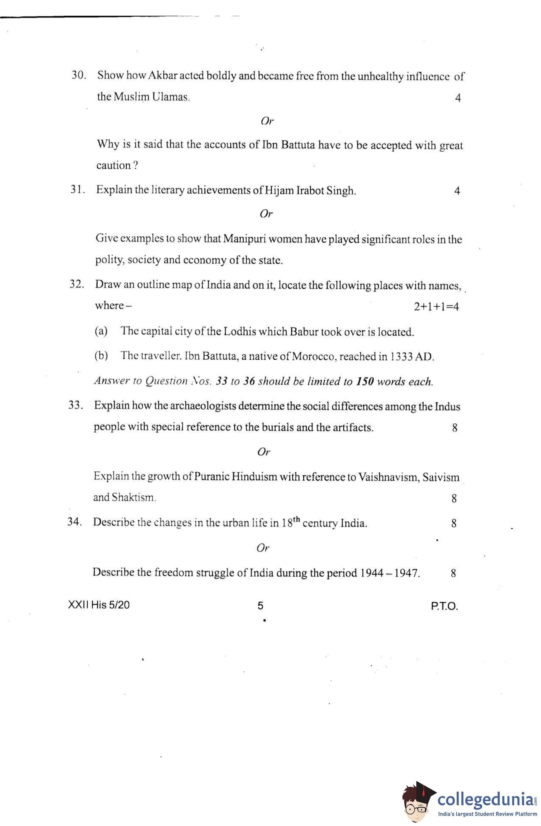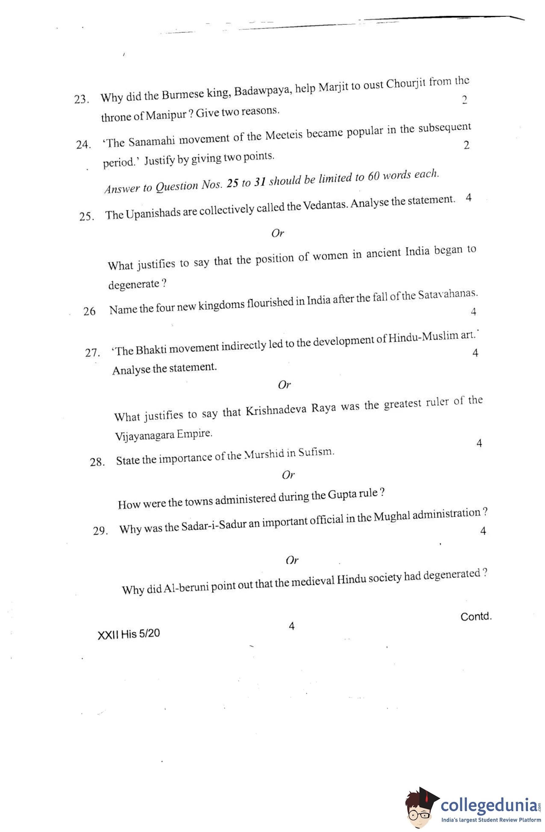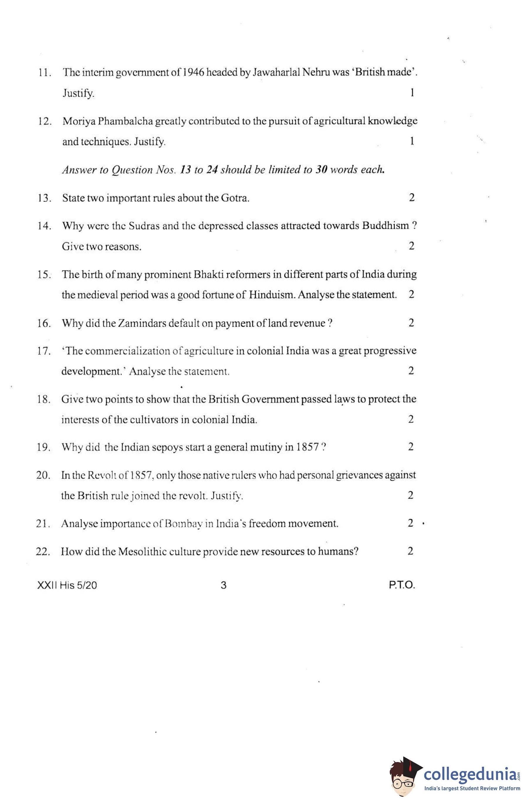 Manipur Board Class 12 History Question Paper 2020