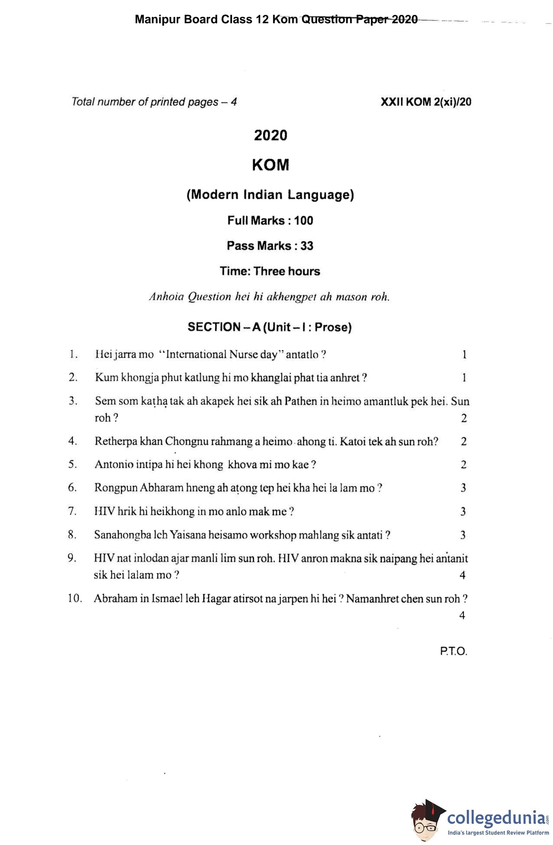 | Manipur Board Class 12 Kom Question Paper 2020 PDF | Manipur Board Class 12 Kom Answer Key 2020 PDF |