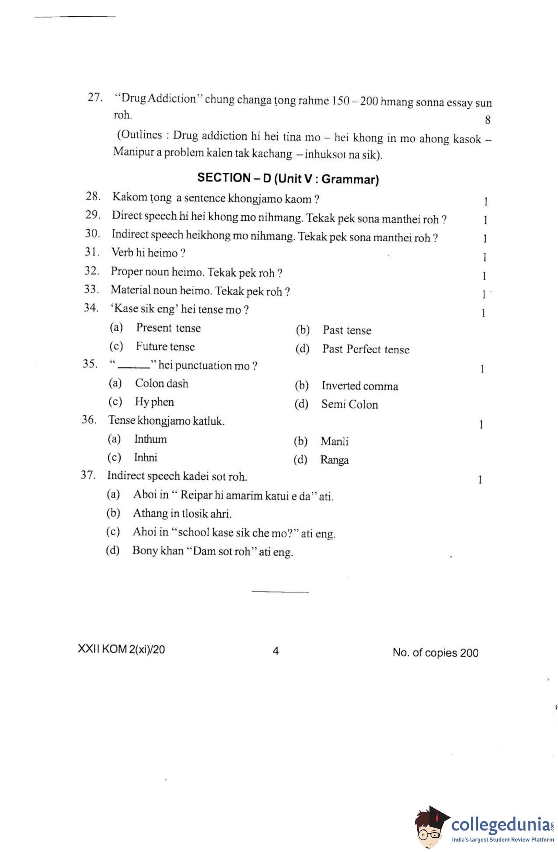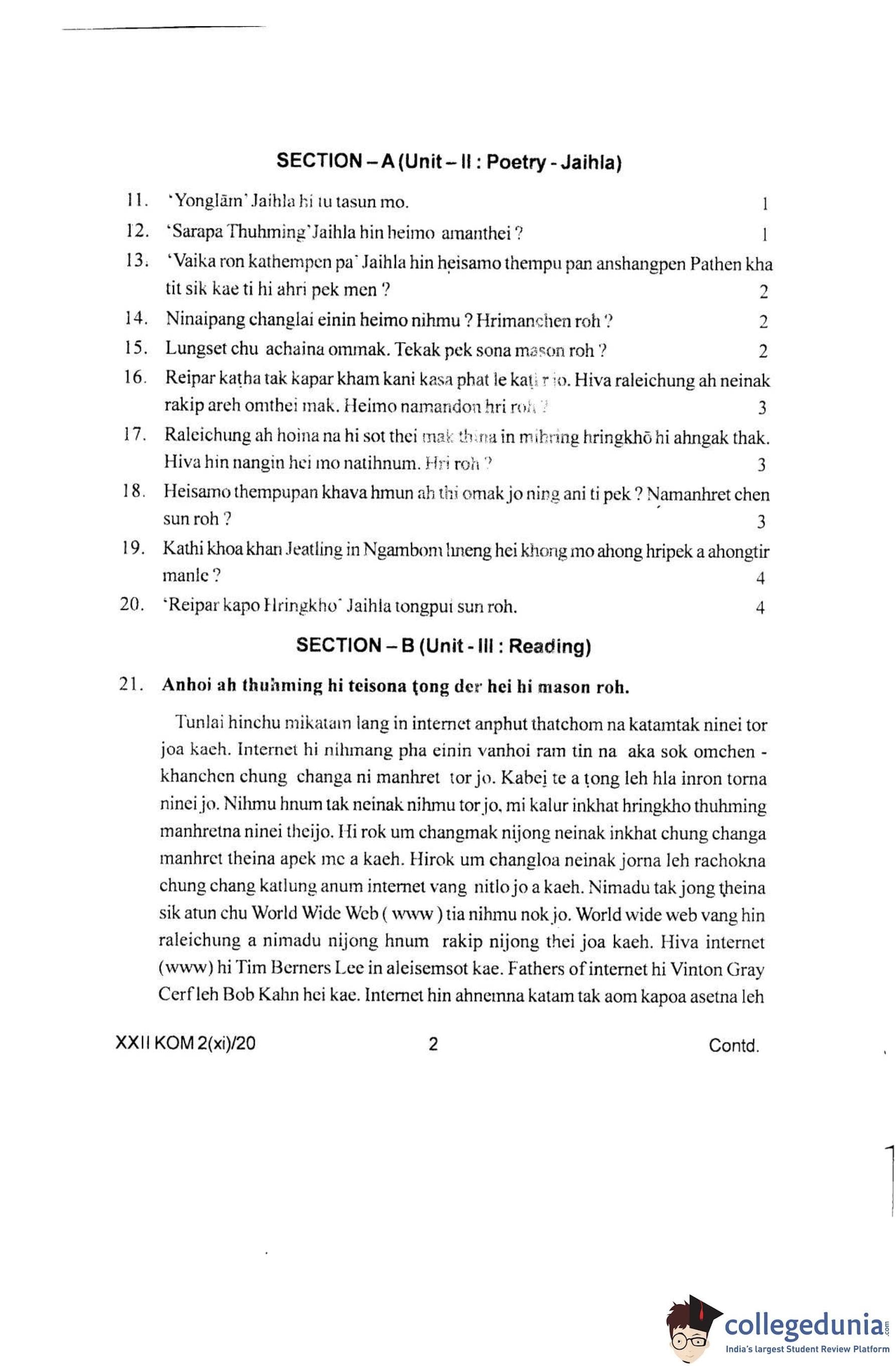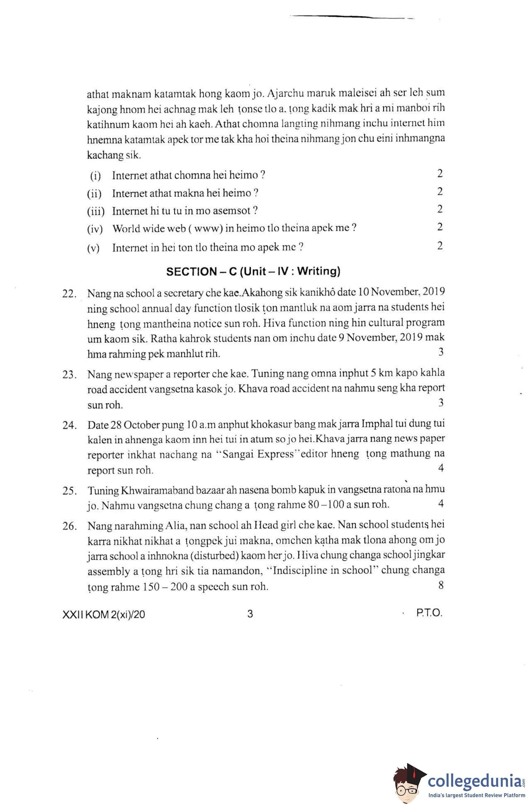 Manipur Board Class 12 Kom Question Paper 2020 with Answer Key pdf is available for download here. The exam was conducted by Council Of Higher Secondary Education, Manipur on Febraury 20, 2020. The question paper comprised a total of 37 questions divided among 4 sections.