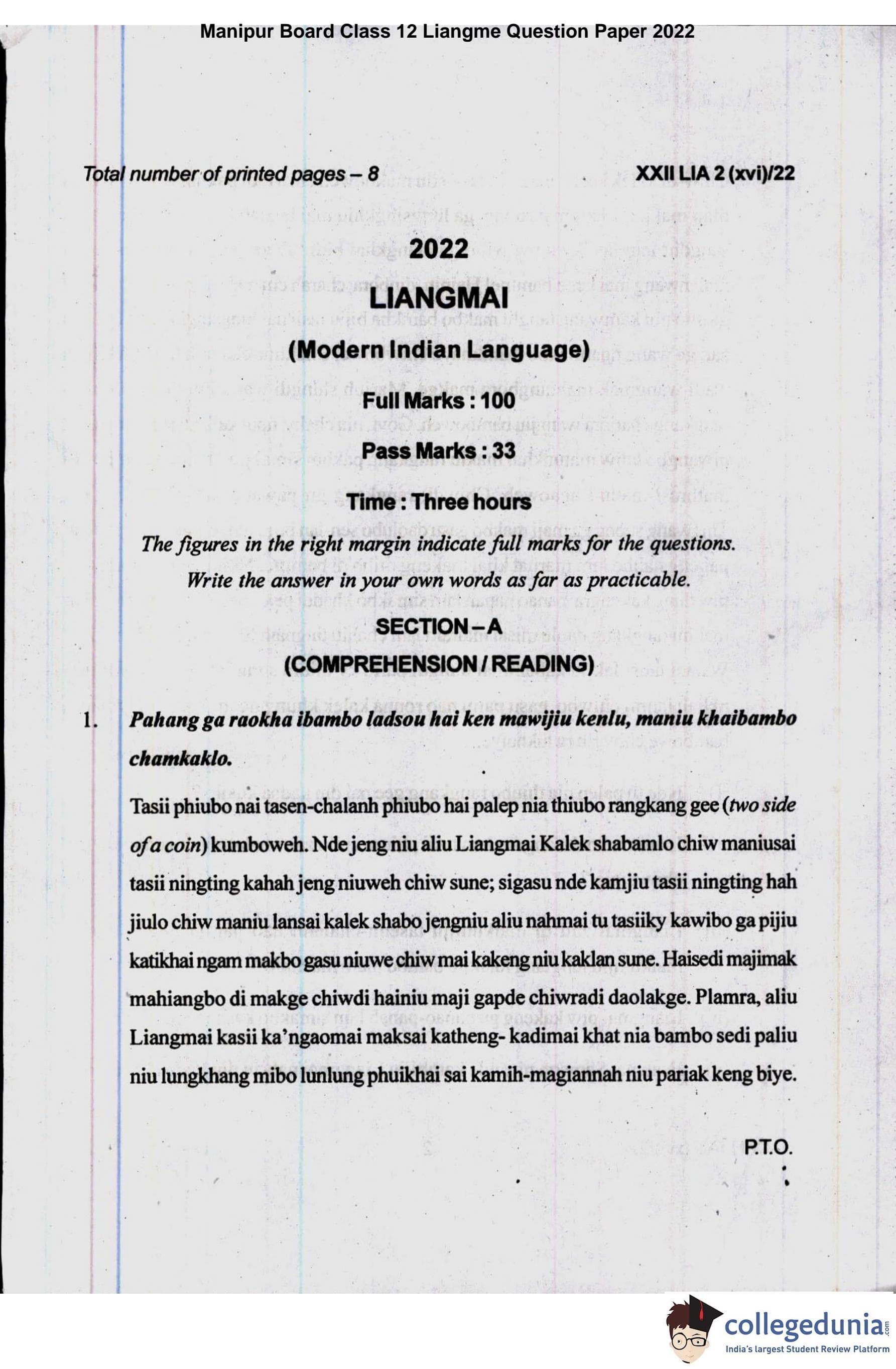 | Manipur Board Class 12 Liangme Question Paper 2022 PDF | Manipur Board Class 12 Liangme Answer Key 2022 PDF |