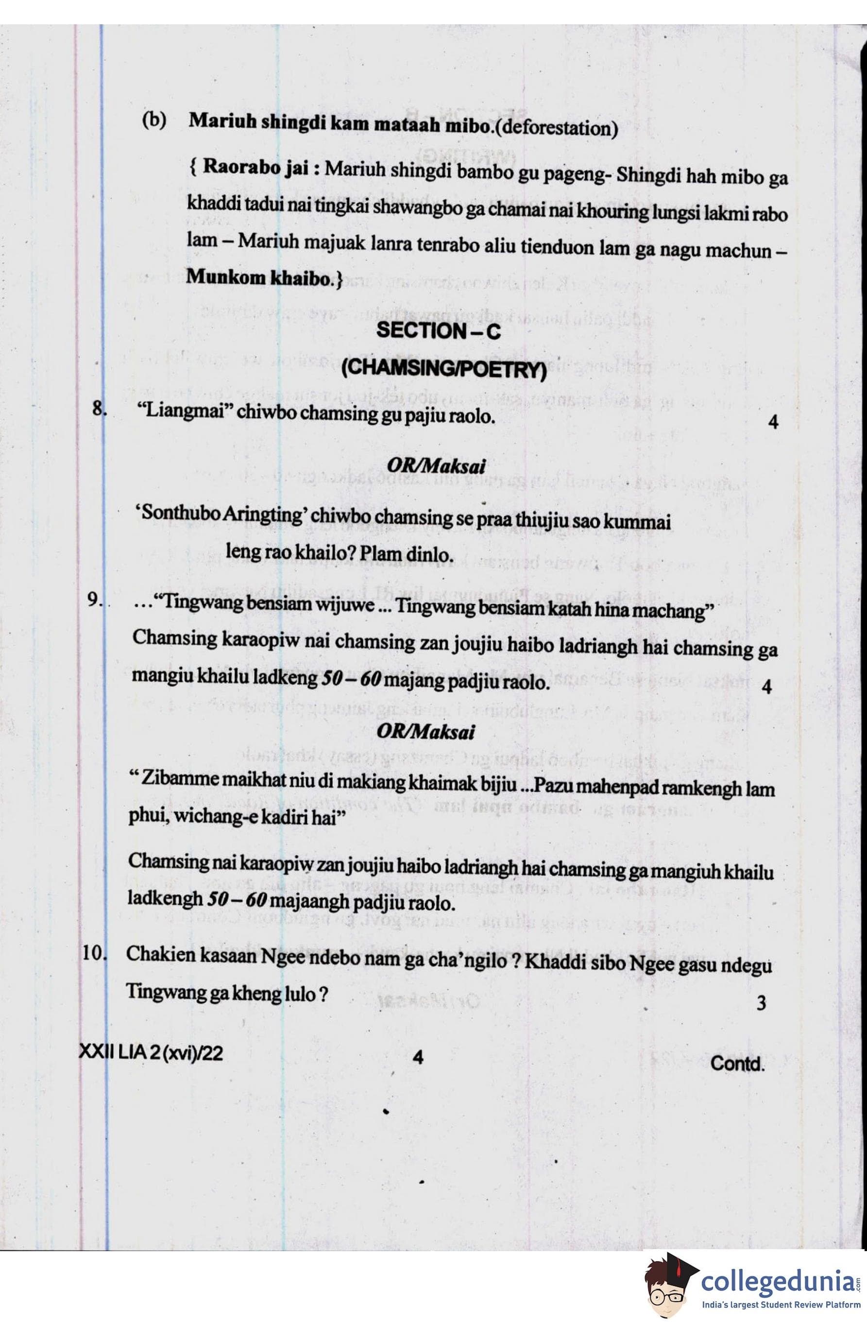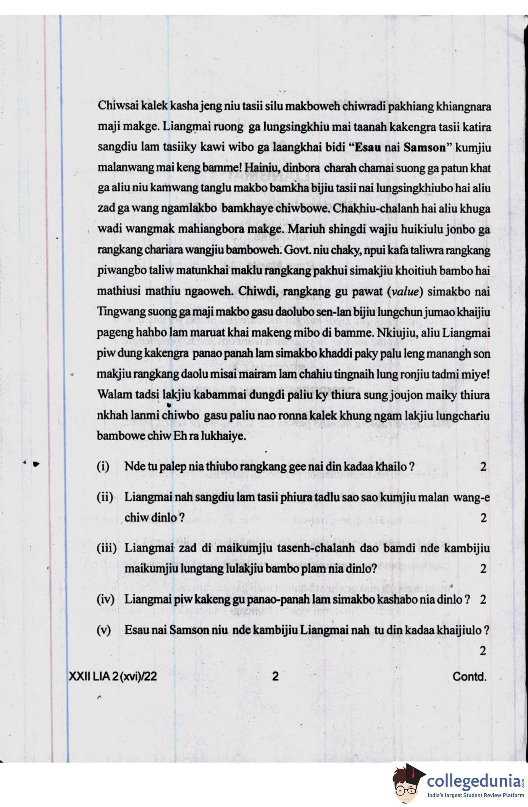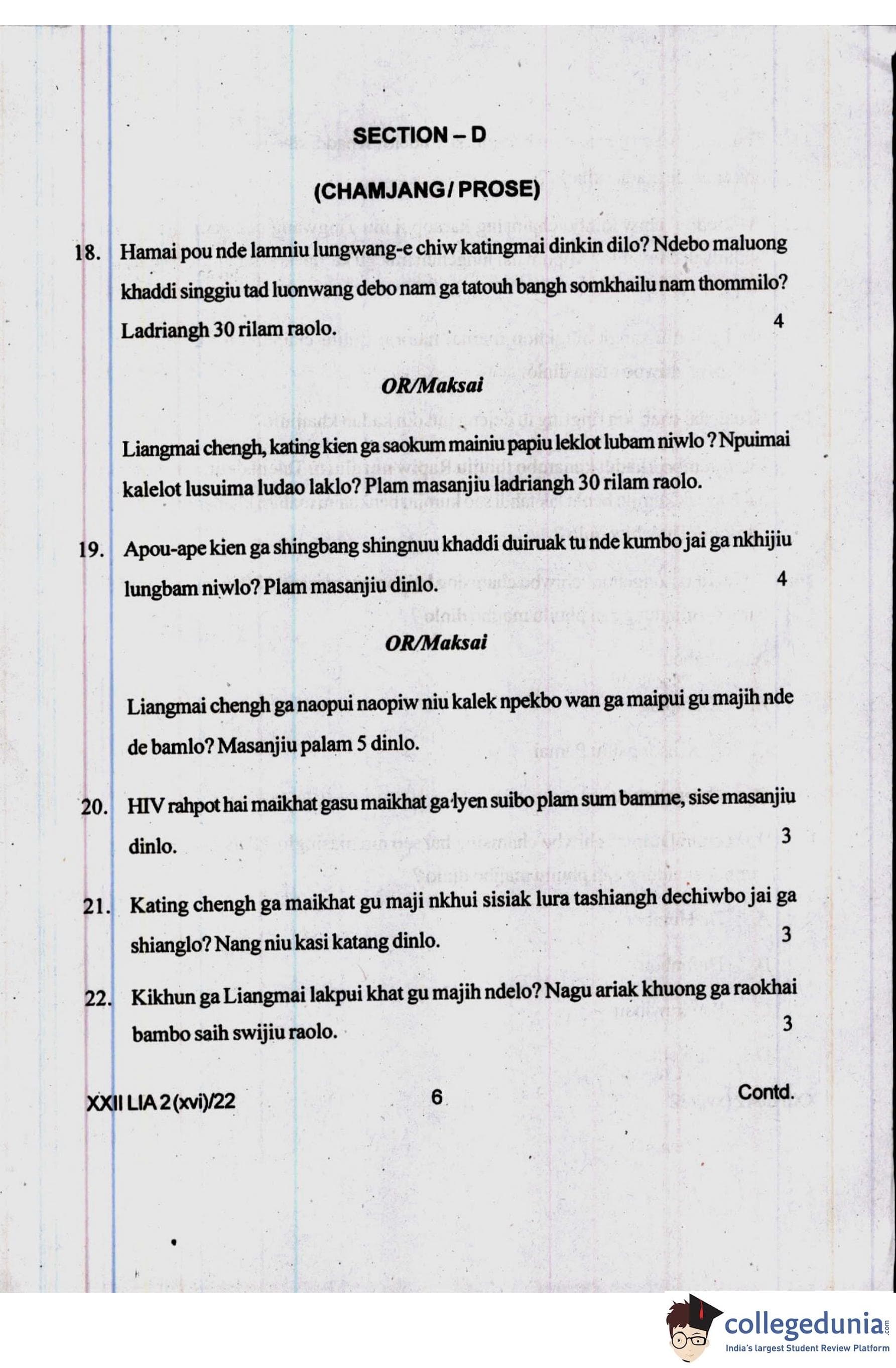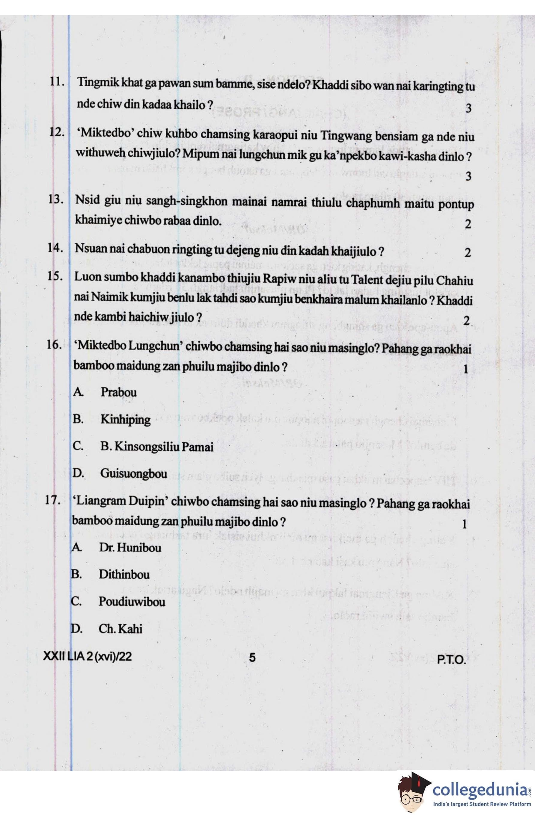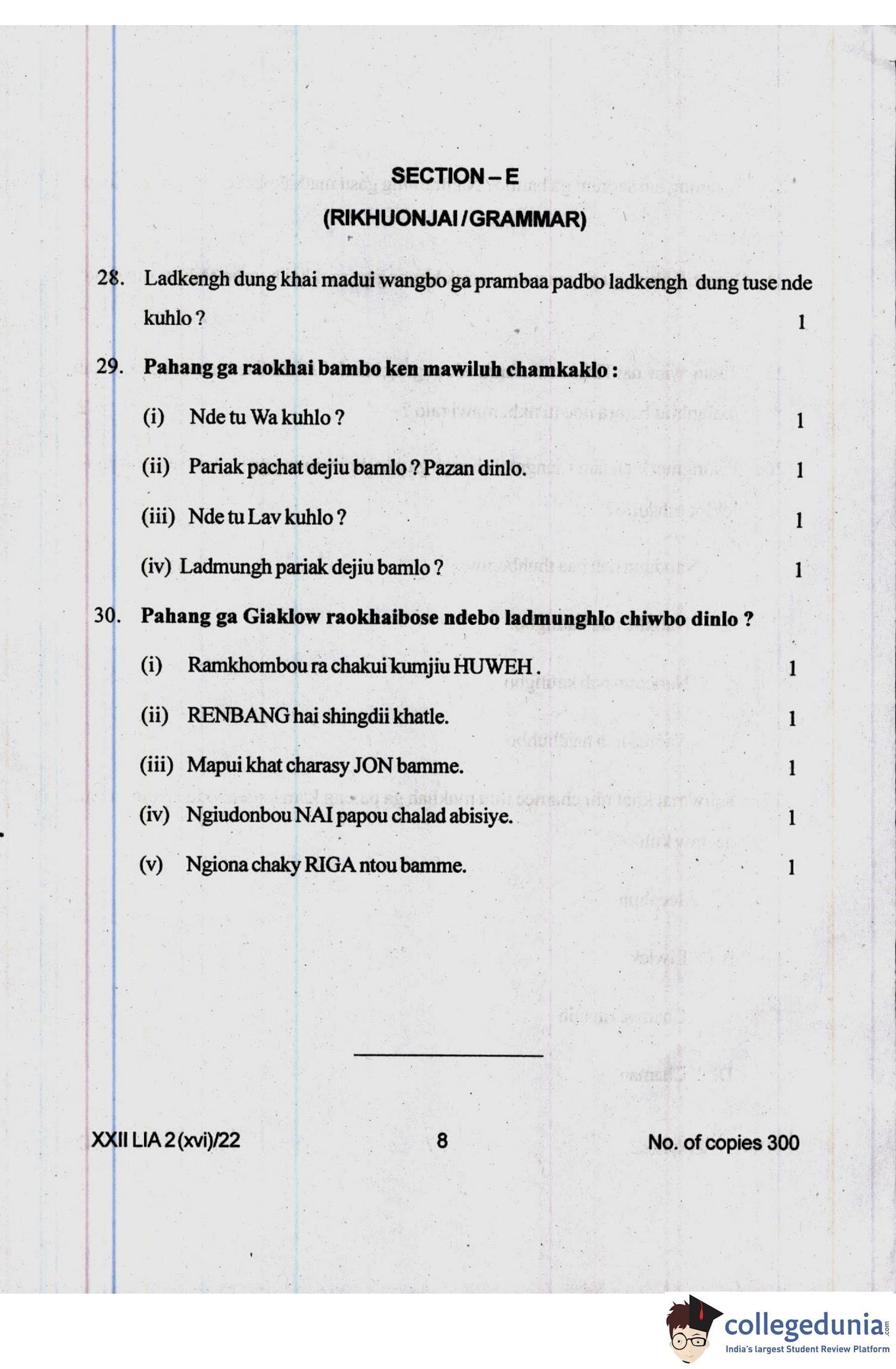Manipur Board Class 12 Liangme Question Paper 2022 with Answer Key pdf is available for download here. The exam was conducted by Council Of Higher Secondary Education, Manipur on April 9, 2022. The question paper comprised a total of 30 questions divided among 5 sections.