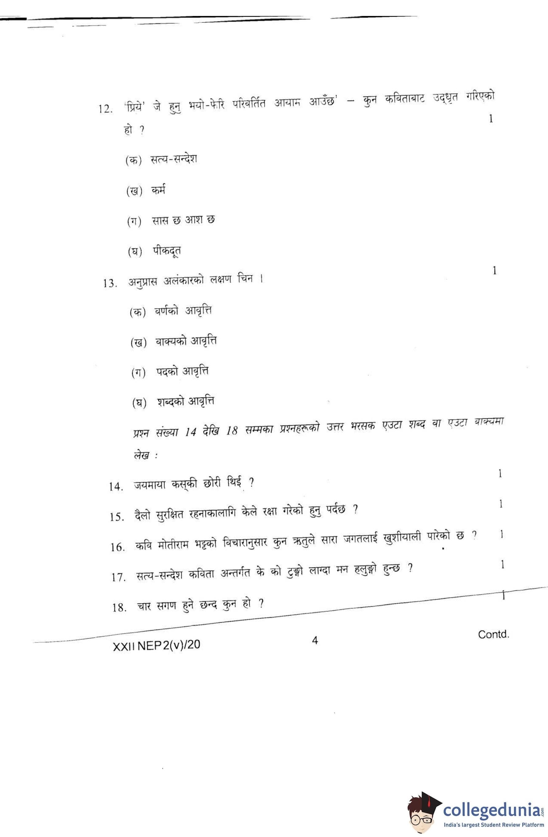 Manipur Board Class 12 Nepali Question Paper 2020 with Answer Key pdf is available for download here. The exam was conducted by Council Of Higher Secondary Education, Manipur on Febraury 20, 2020. The question paper comprised a total of 41 questions.
