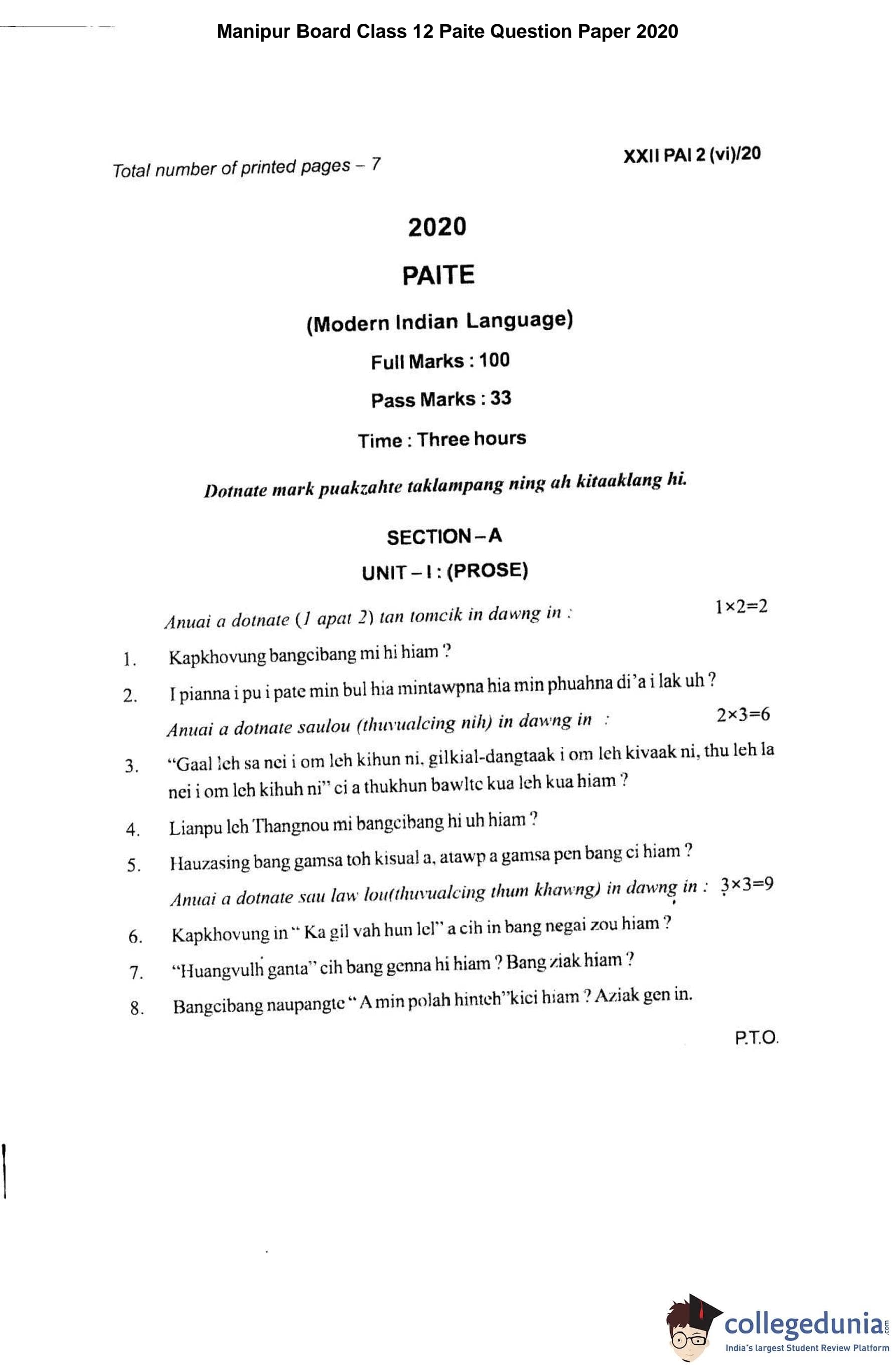 | Manipur Board Class 12 Paite Question Paper 2020 PDF | Manipur Board Class 12 Paite Answer Key 2020 PDF |