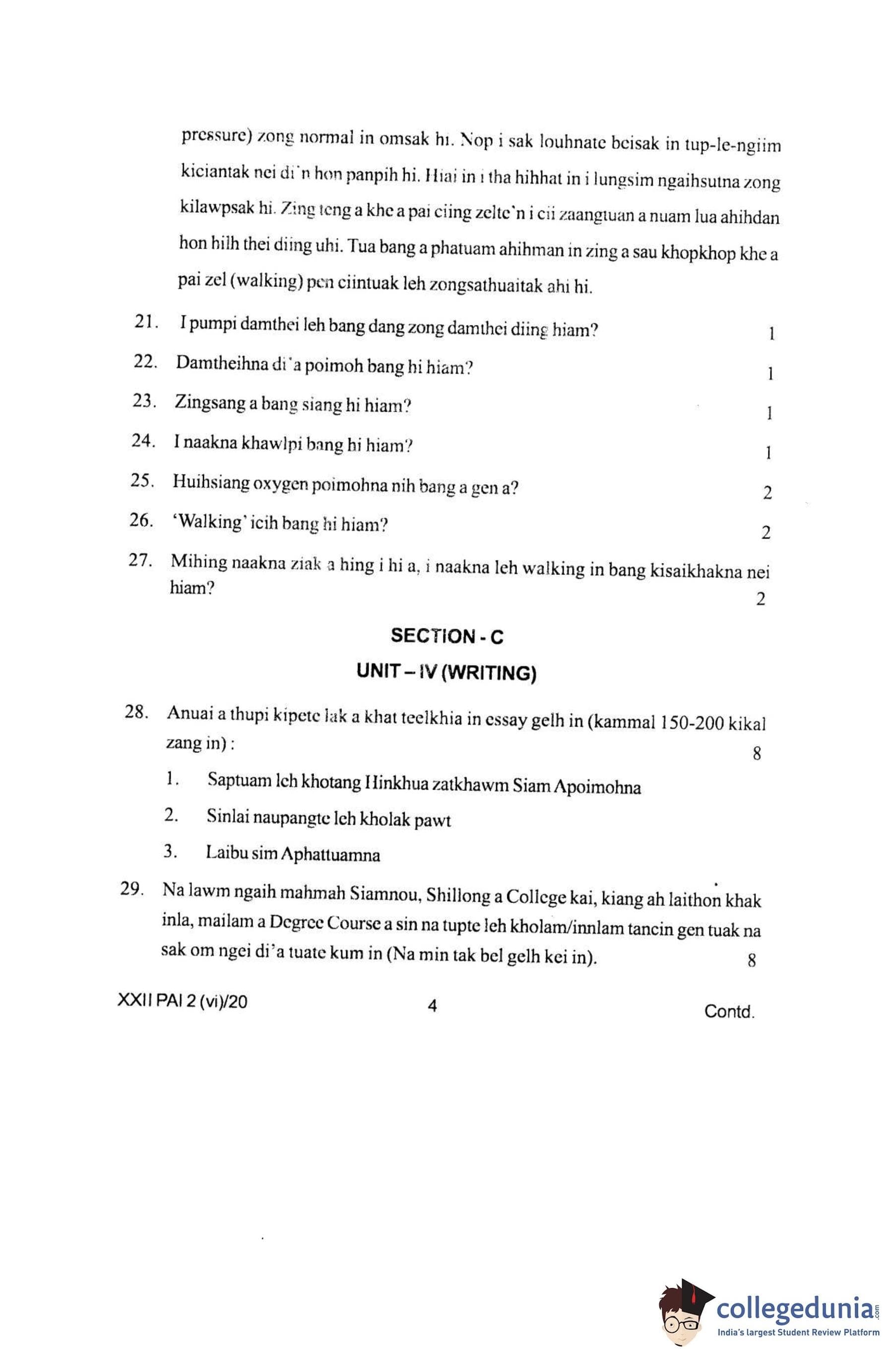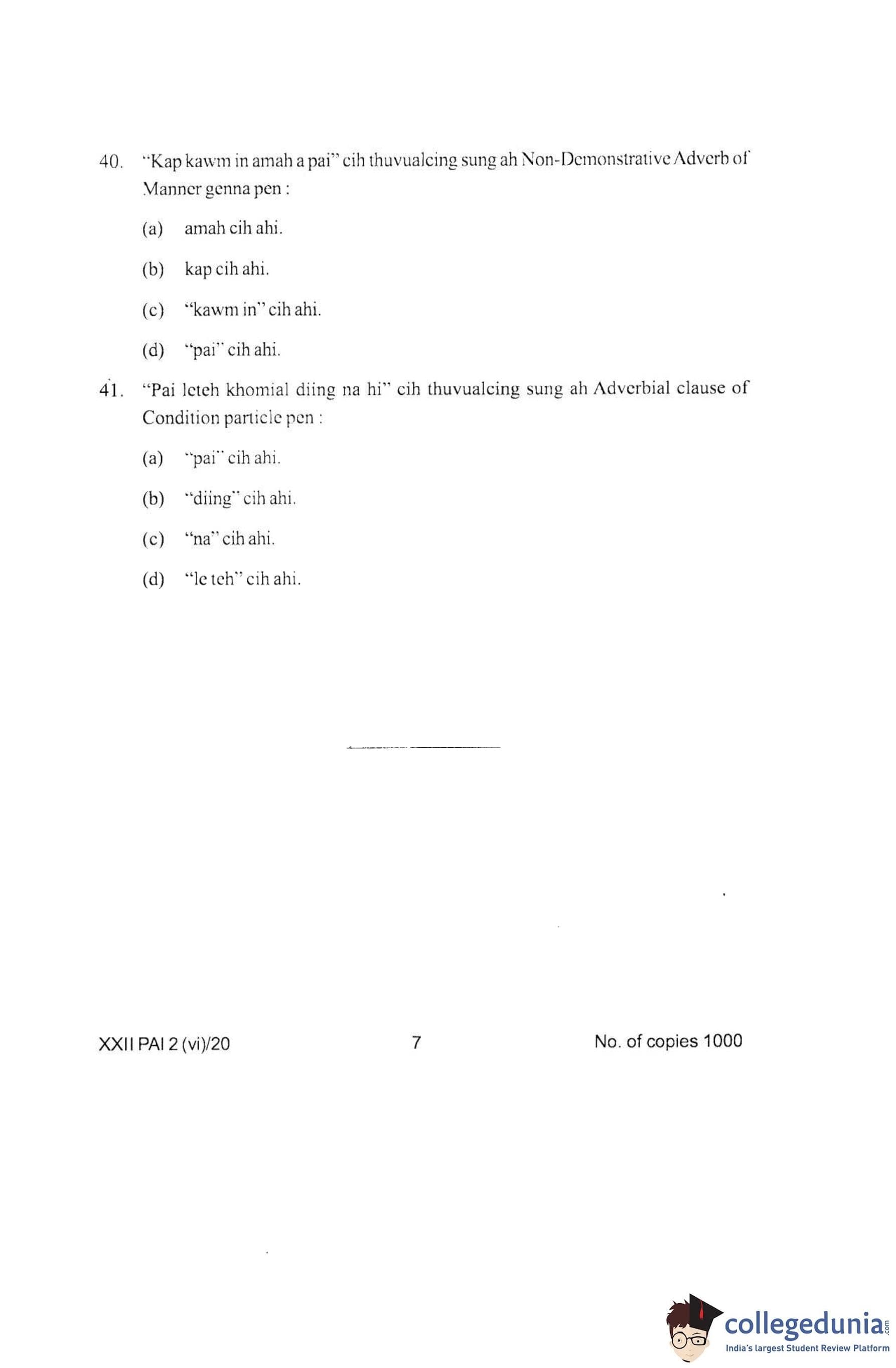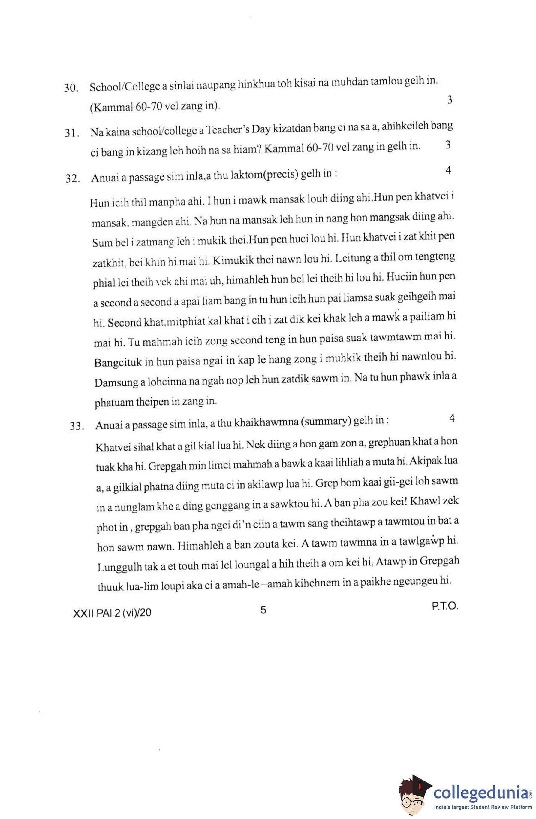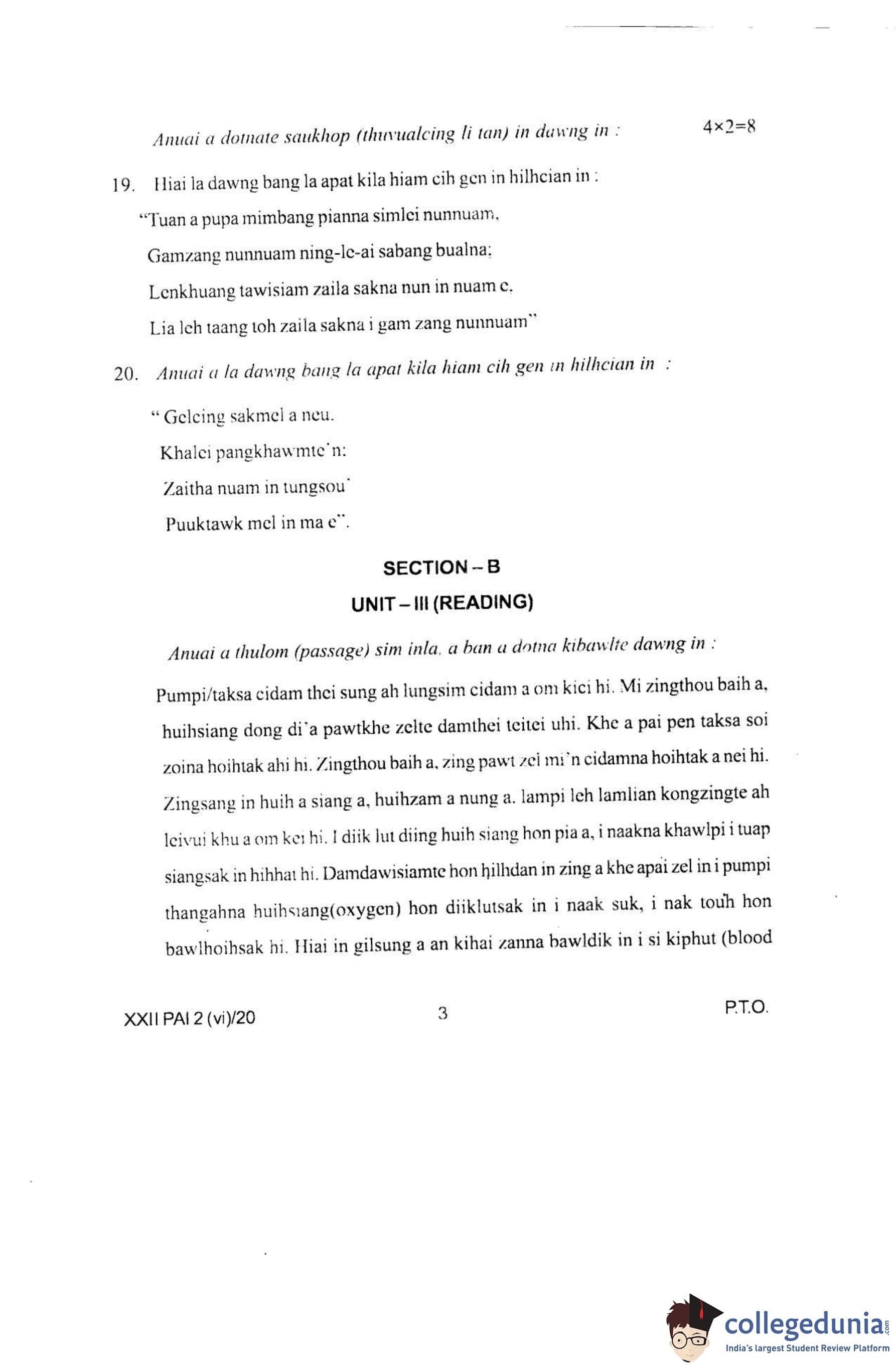 Manipur Board Class 12 Paite Question Paper 2020 with Answer Key pdf is available for download here. The exam was conducted by Council Of Higher Secondary Education, Manipur on Febraury 20, 2020. The question paper comprised a total of 41 questions divided among 4 sections.
