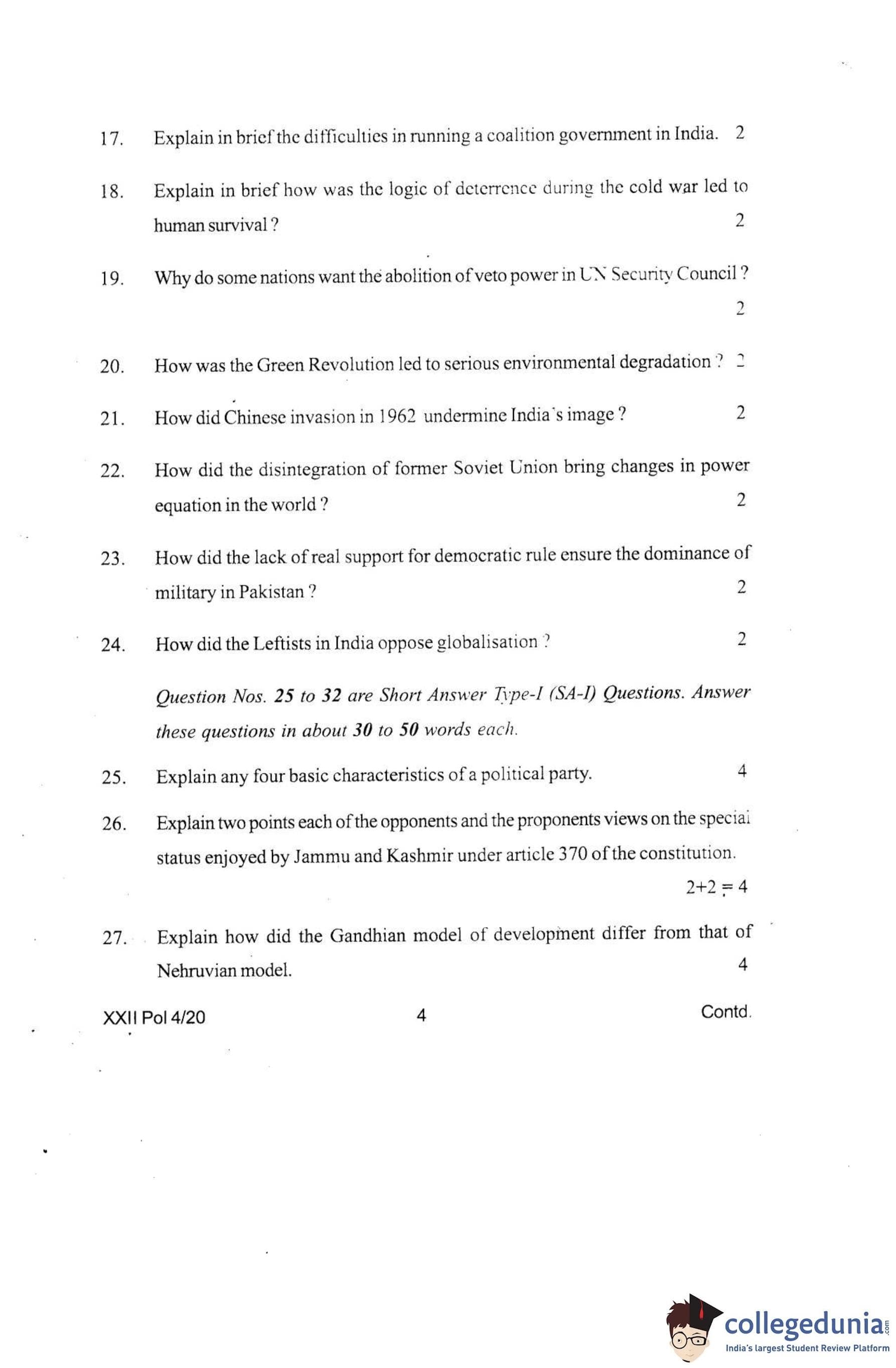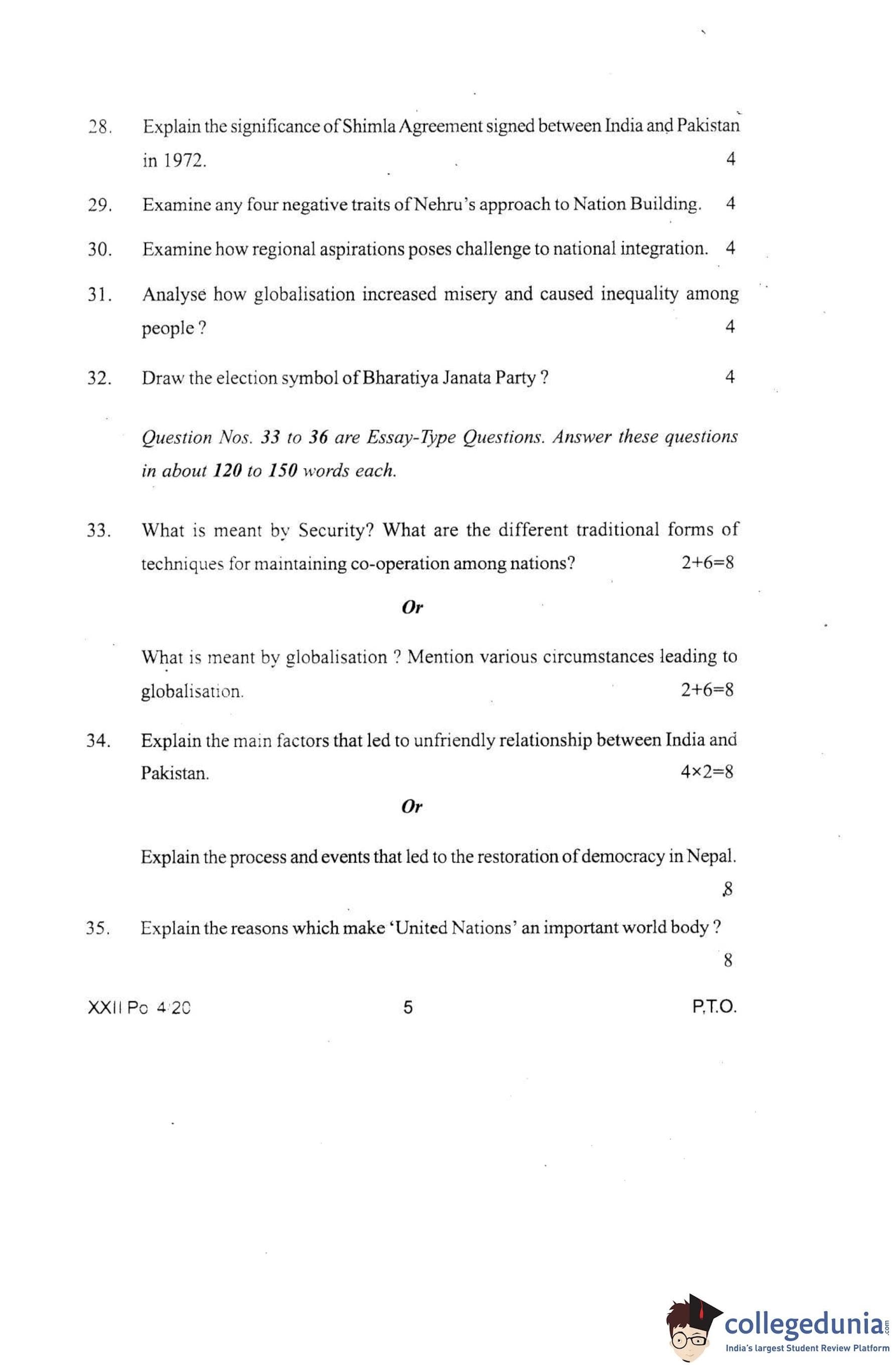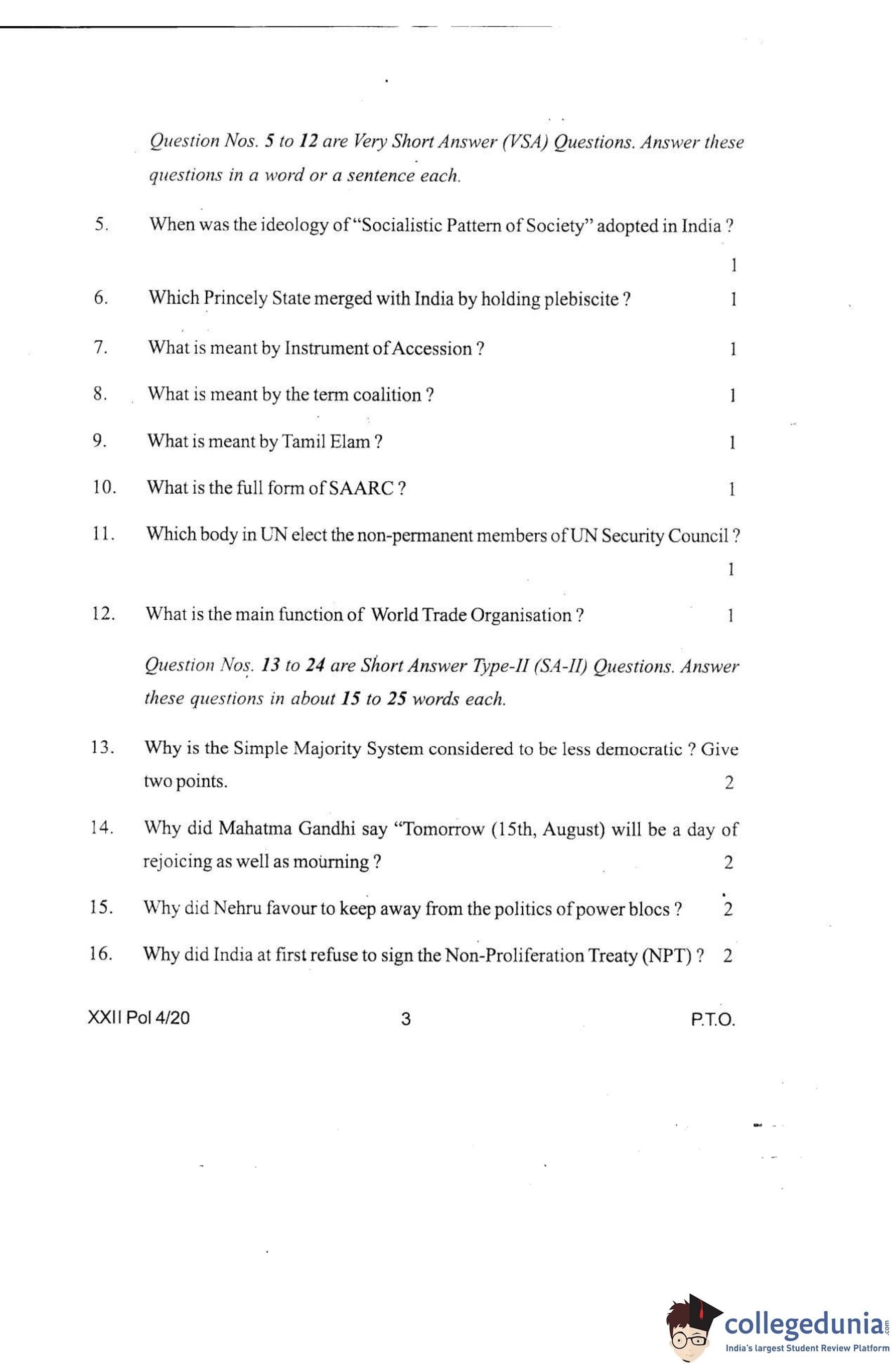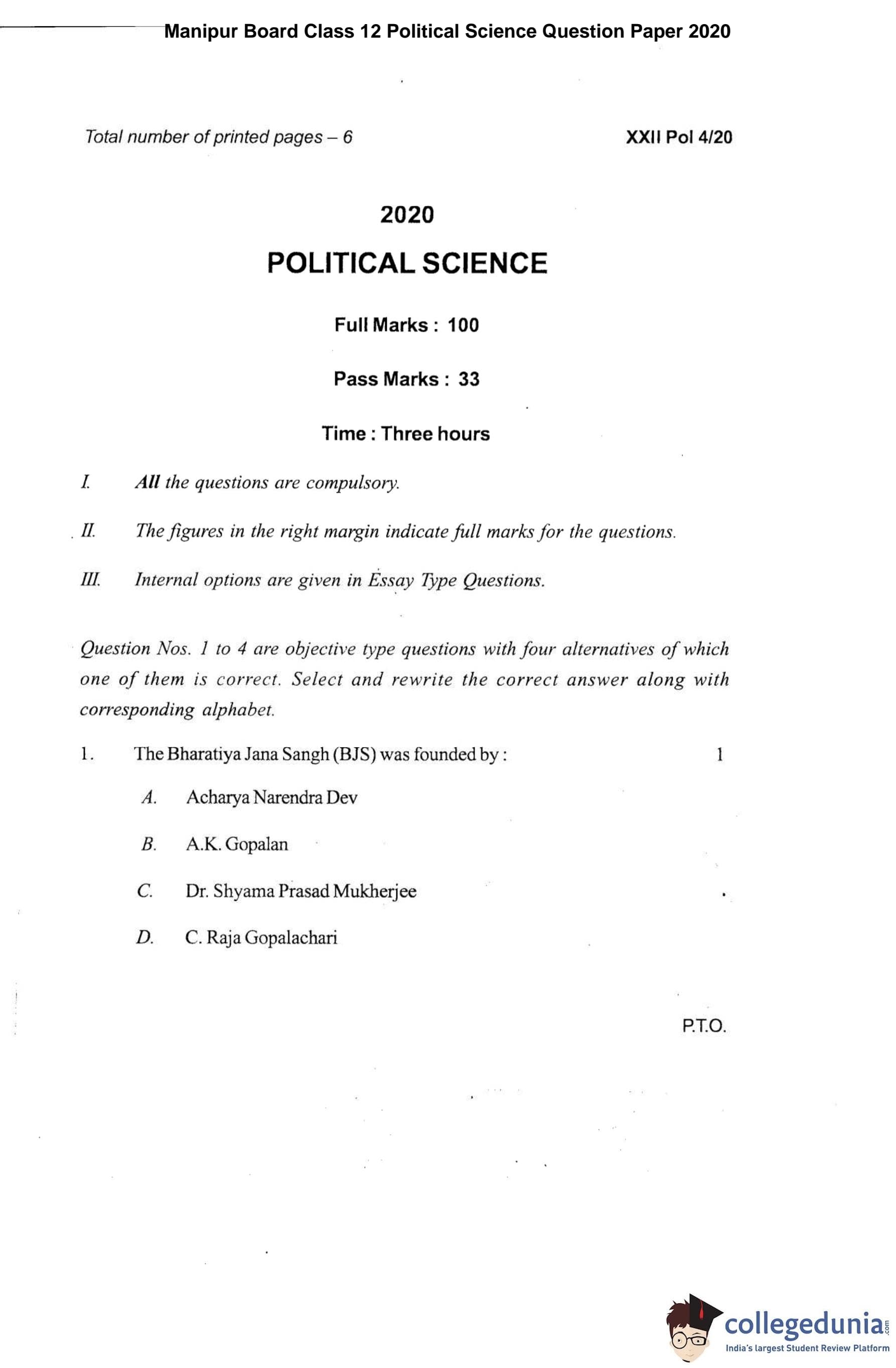 Manipur Board Class 12 Political Science Question Paper 2020 with Answer Key pdf is available for download here. The exam was conducted by Council Of Higher Secondary Education, Manipur on Febraury 22, 2020. The question paper comprised a total of 36 questions.