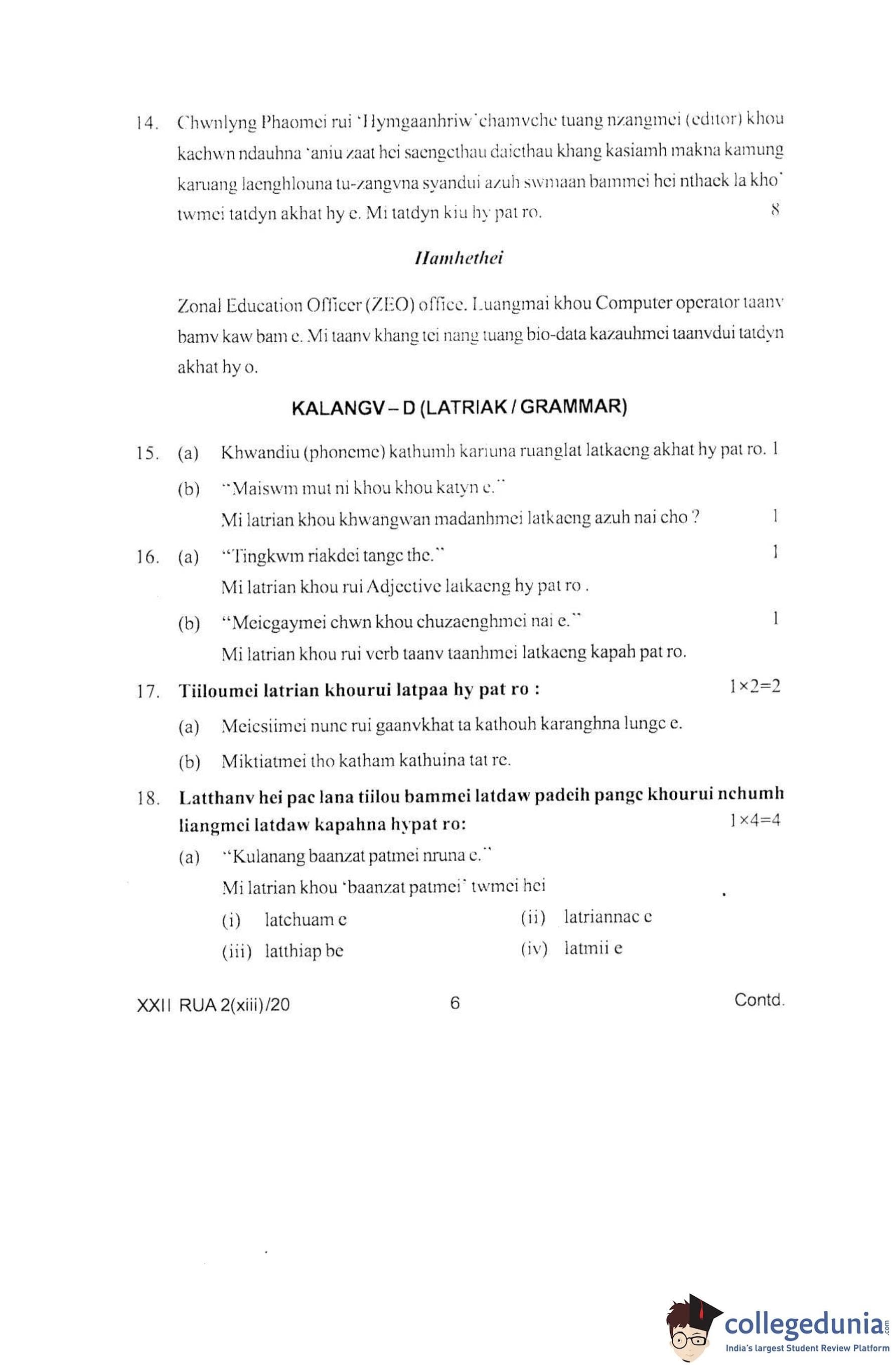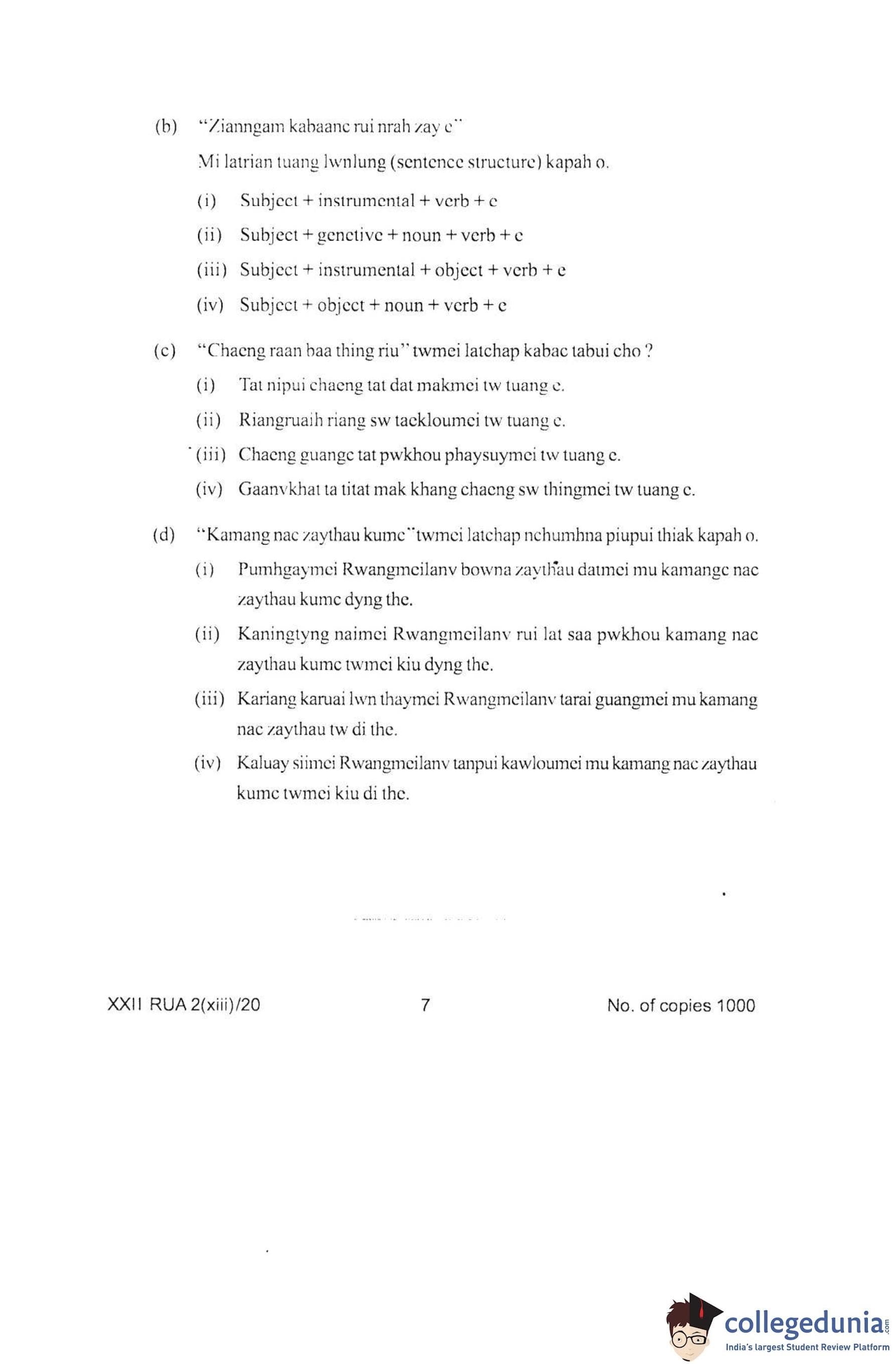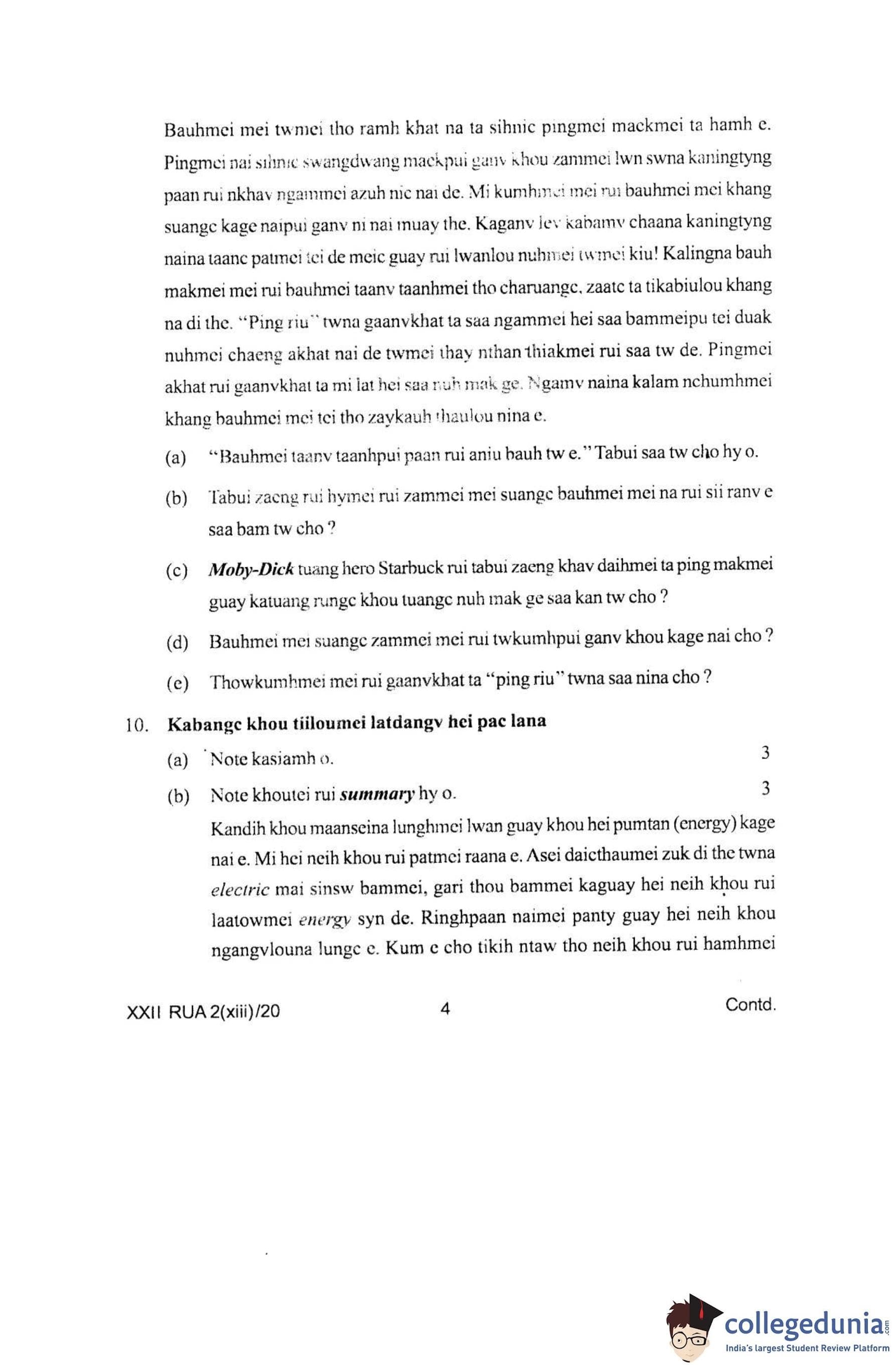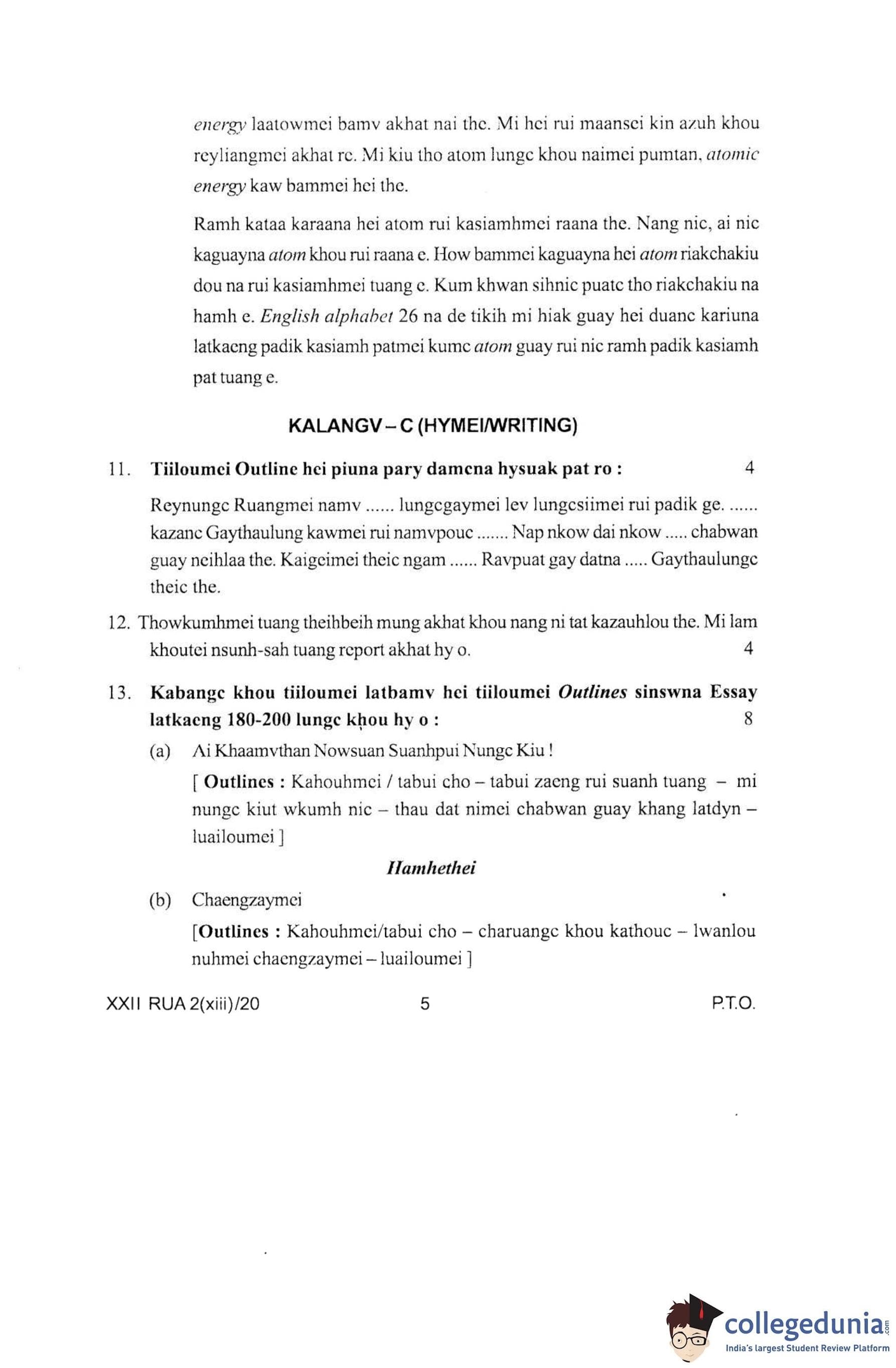 Manipur Board Class 12 Ruangmei Question Paper 2020