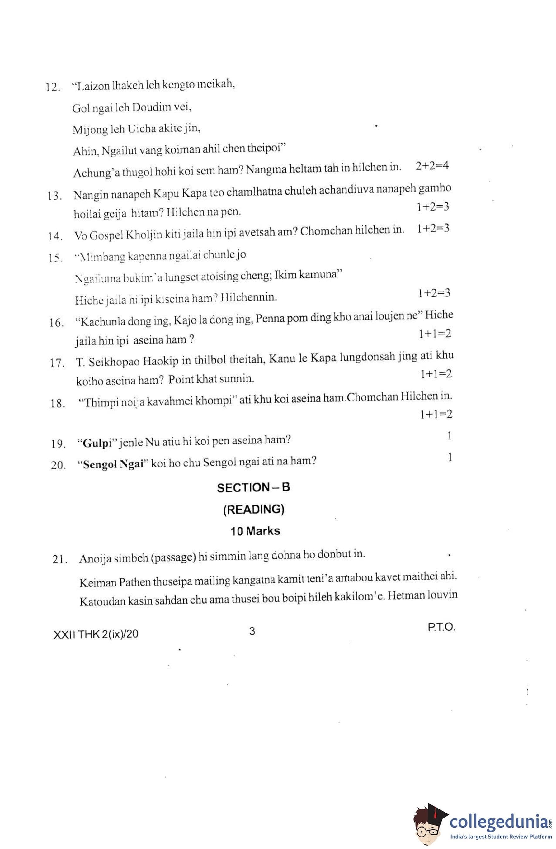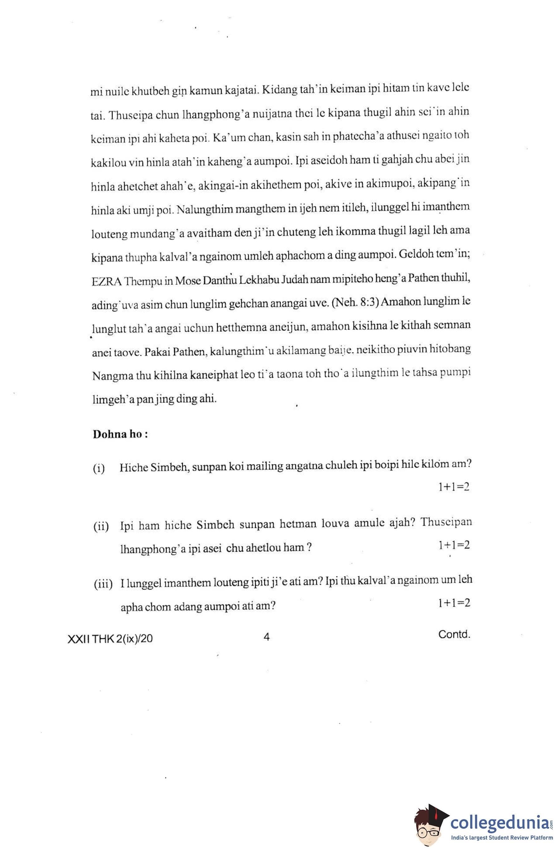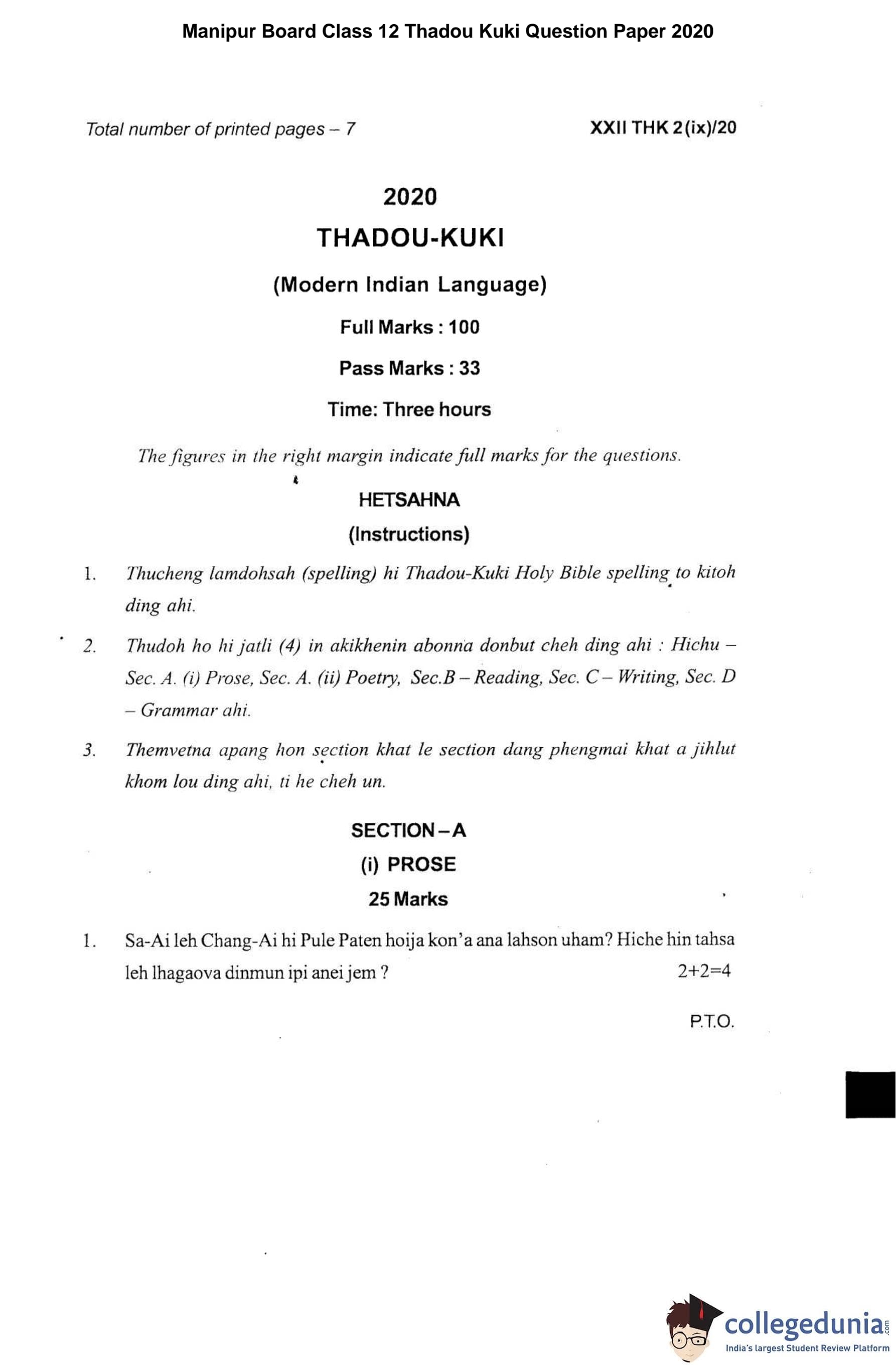 Manipur Board Class 12 Thadou Kuki Question Paper 2020