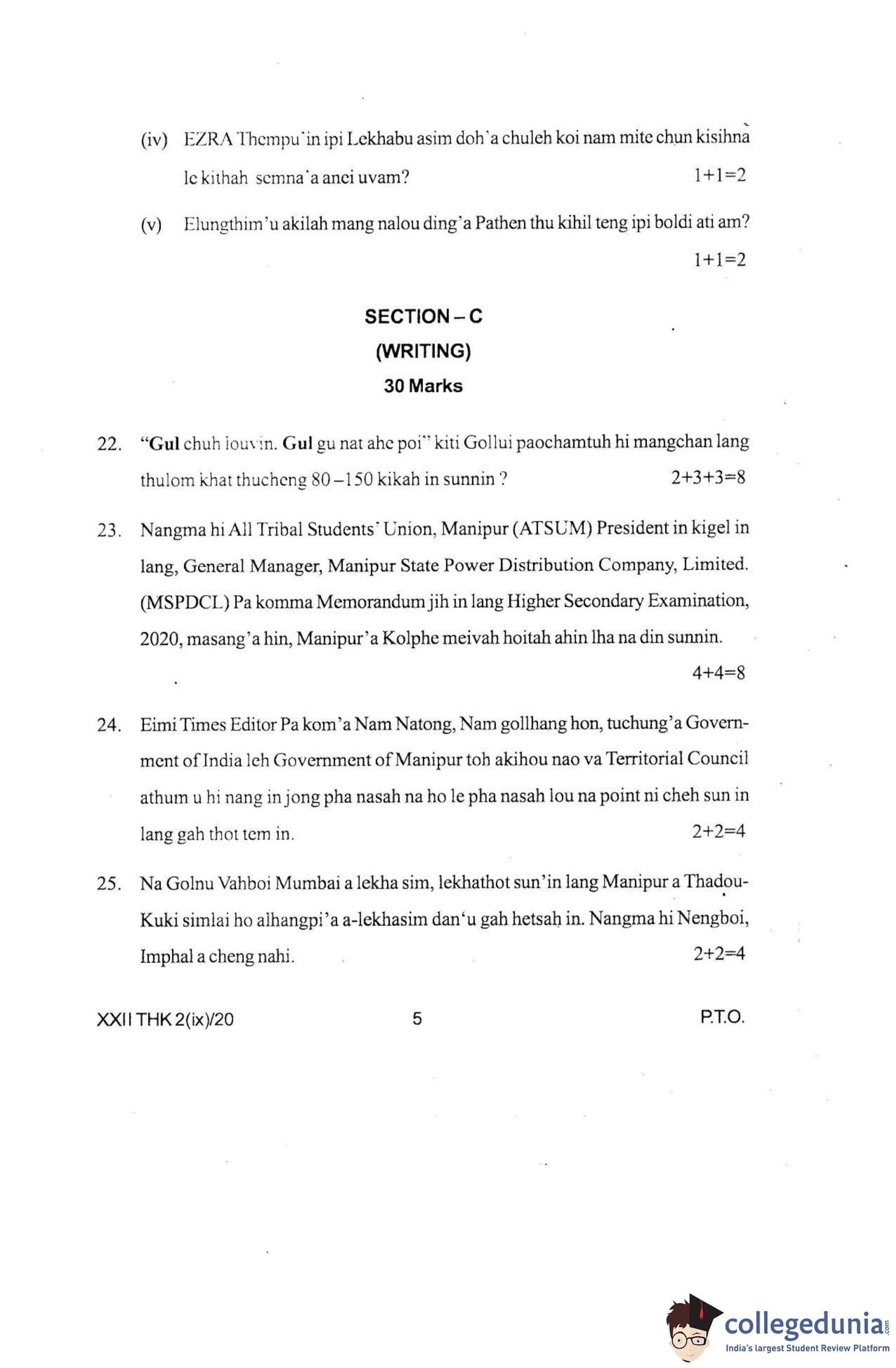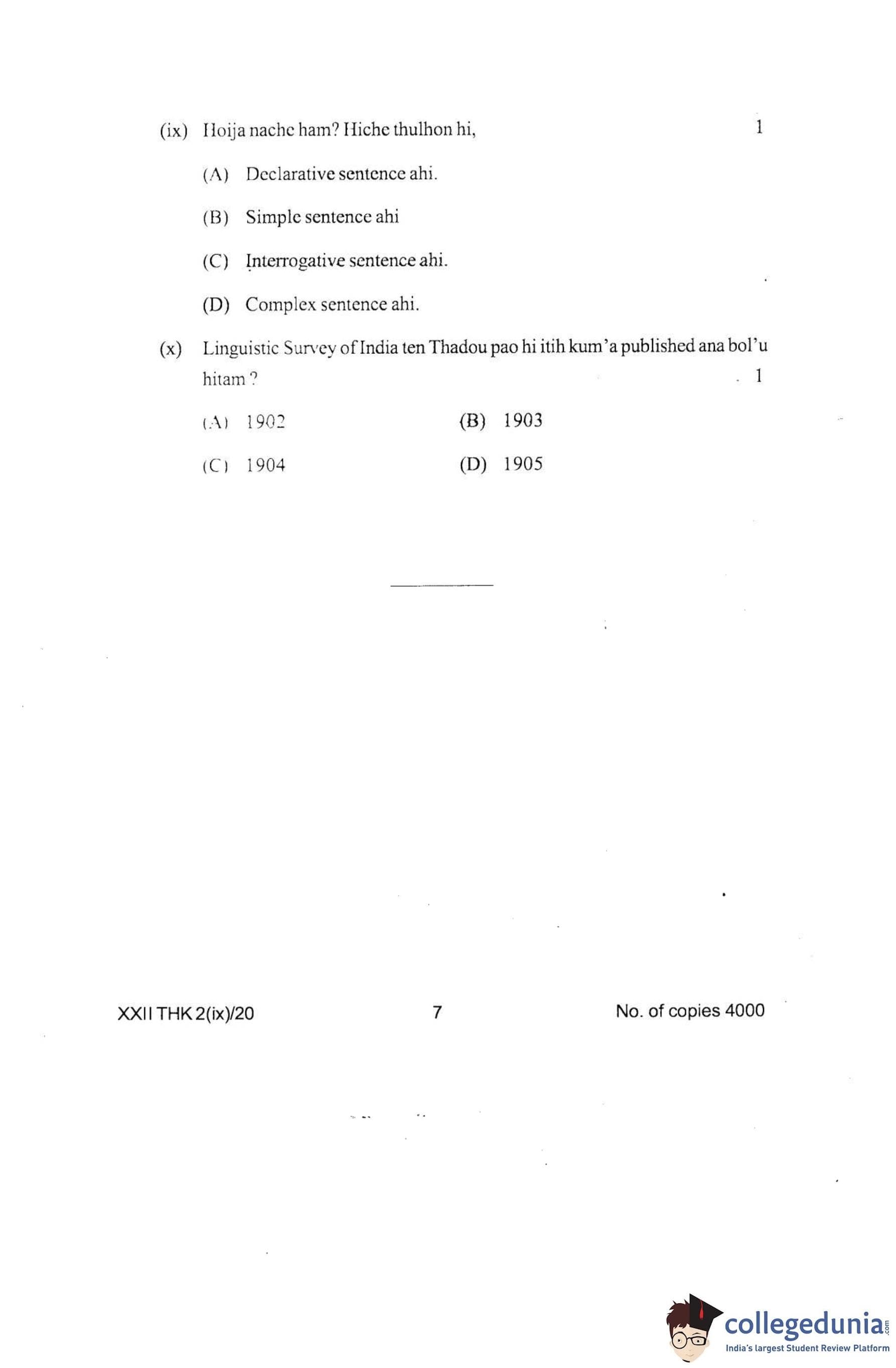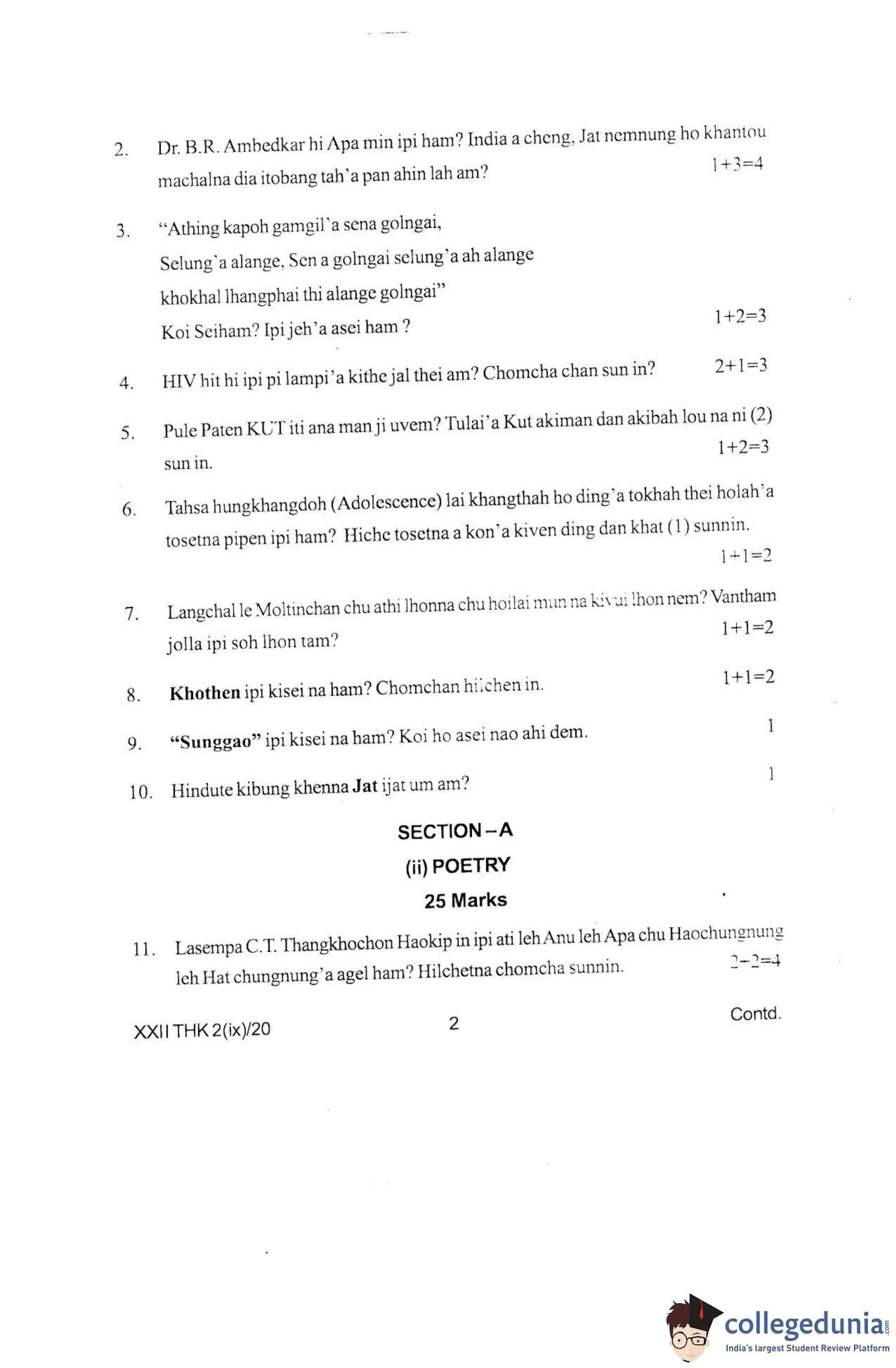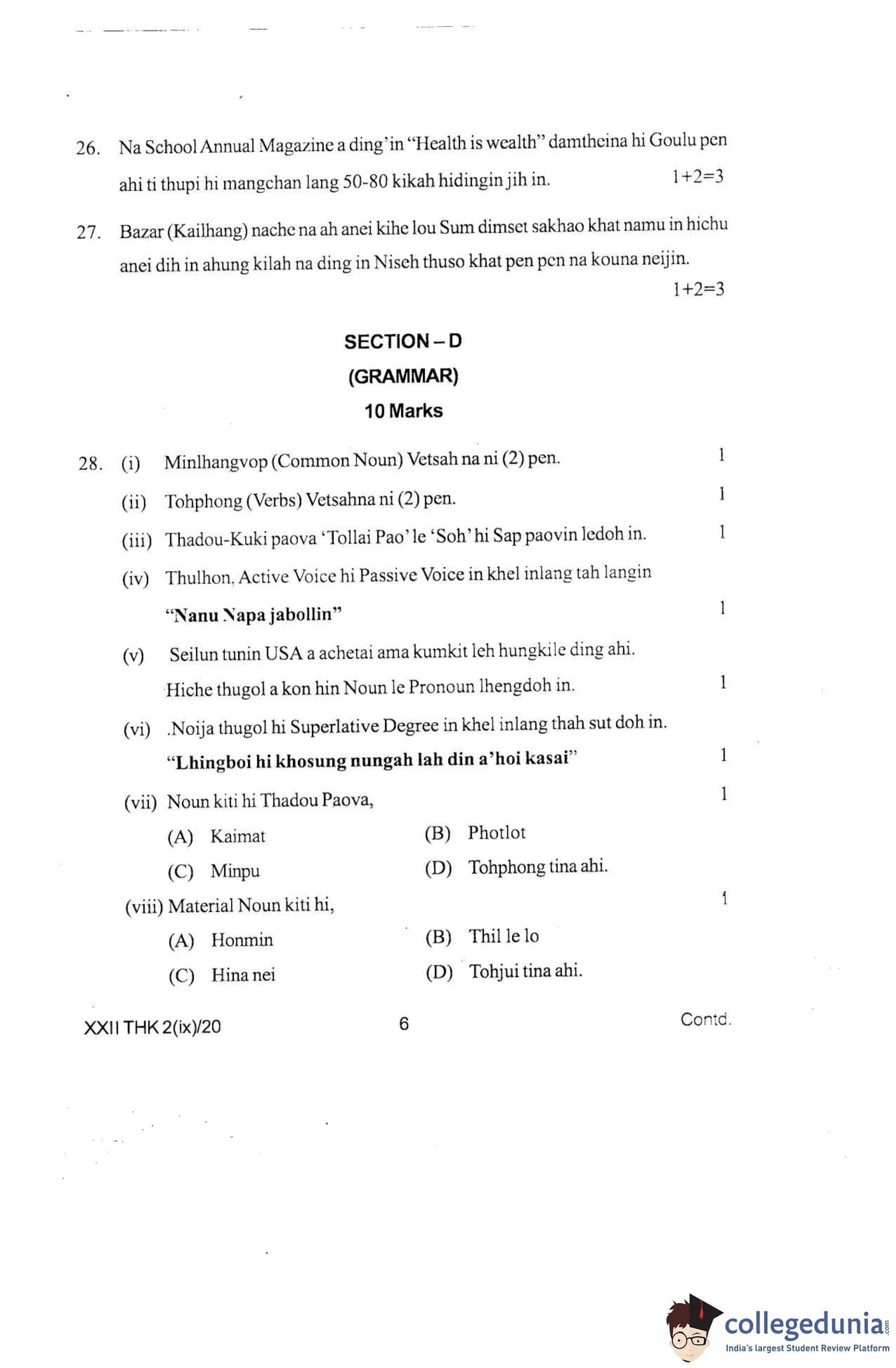 Manipur Board Class 12 Thadou Kuki Question Paper 2020