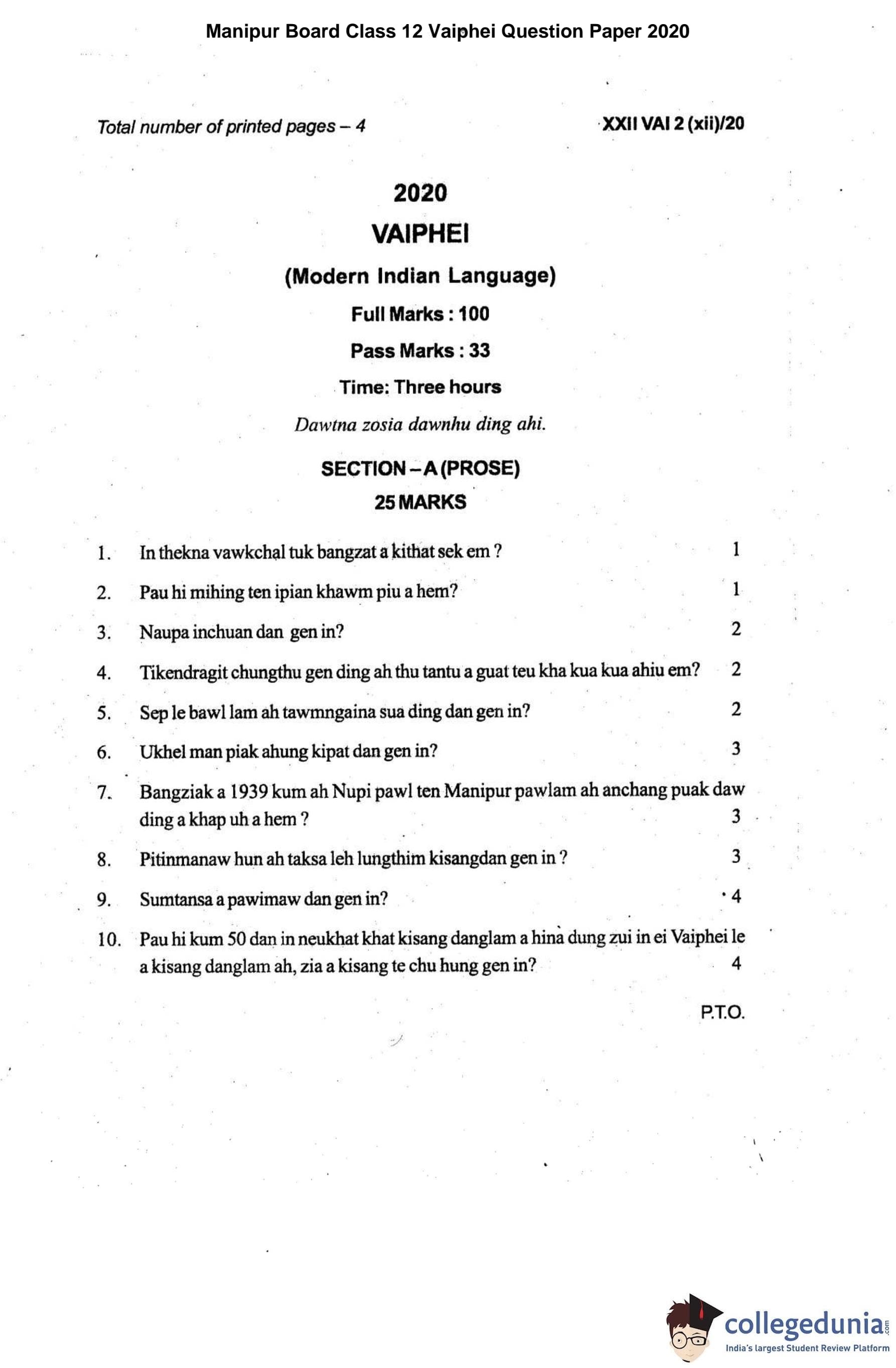 | Manipur Board Class 12 Vaiphei Question Paper 2020 PDF | Manipur Board Class 12 Vaiphei Answer Key 2020 PDF |
