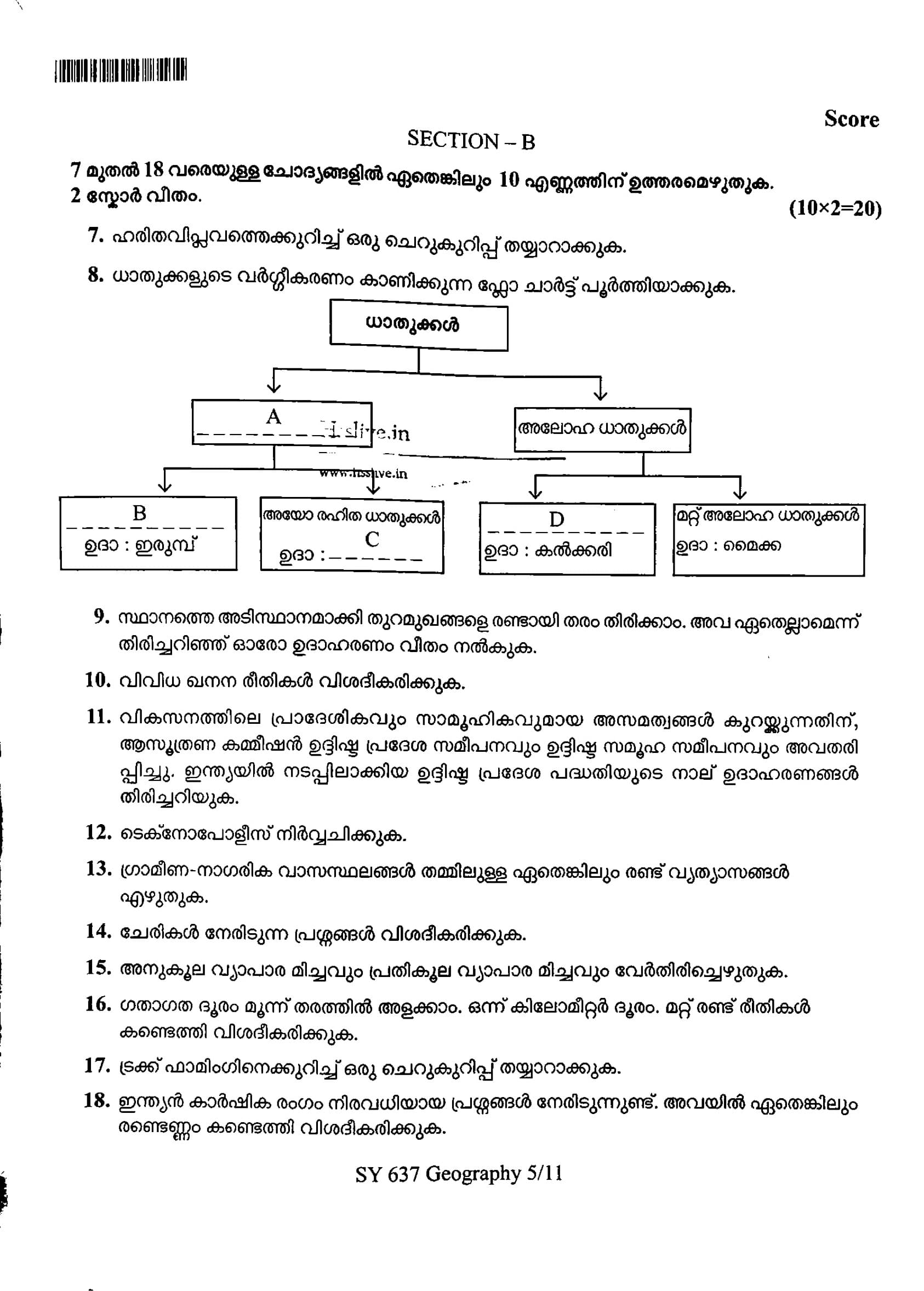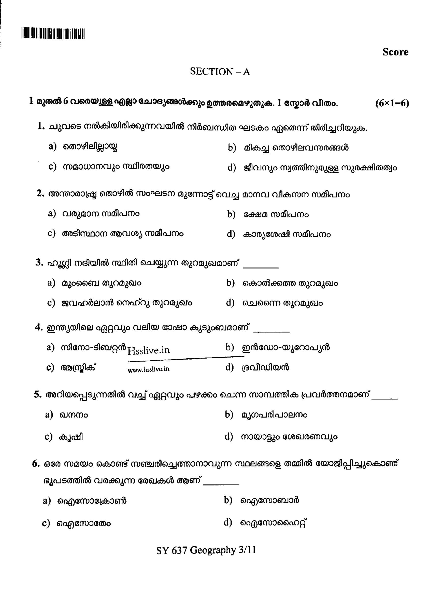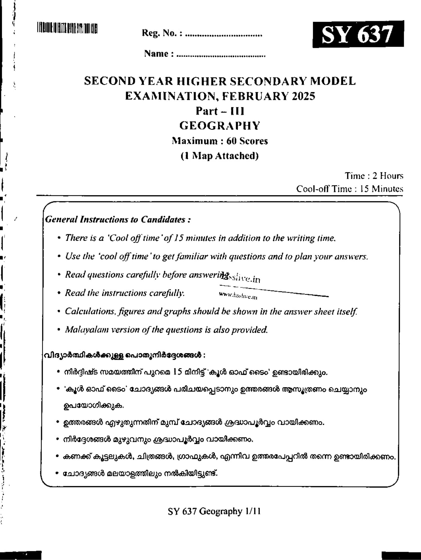 | Kerala Plus Two 2025 Geography (SY-637) Model Question Paper | Check Solutions |