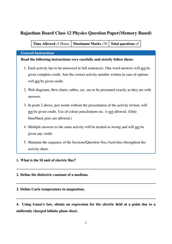 | Rajasthan Board 2026 Class 12 Physics Question Paper with Solutions PDF | Download | Check Solutions |