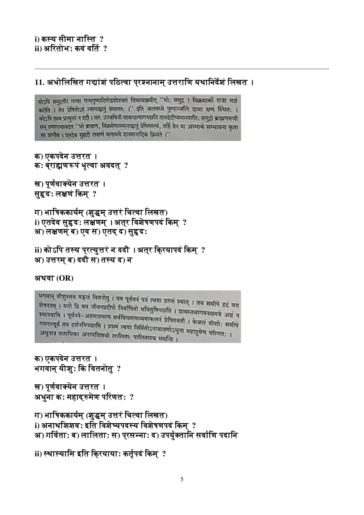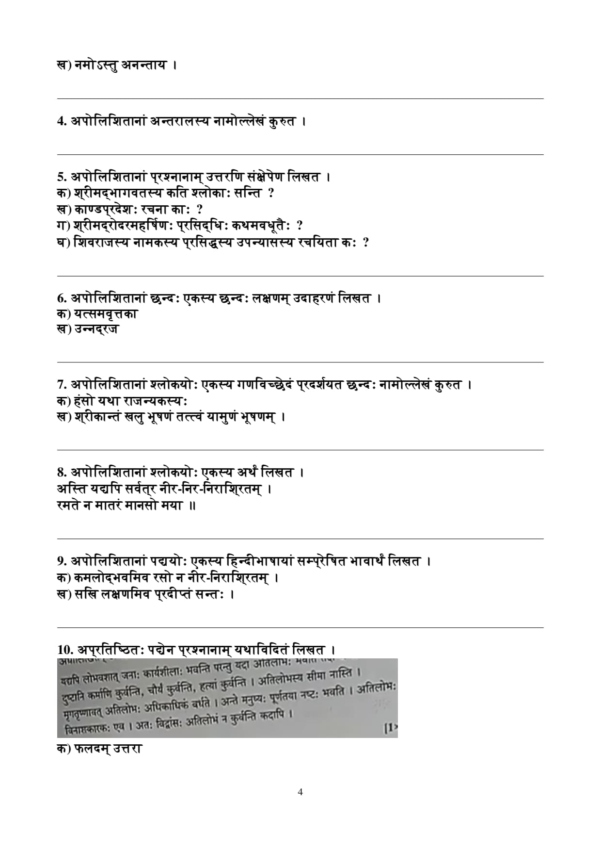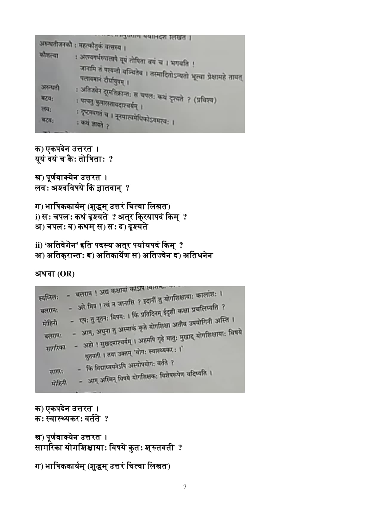 अधोलिखितं नाट्यांशं पठित्वा प्रश्नानाम् उत्तराणि यथानिर्देशं लिखत ।