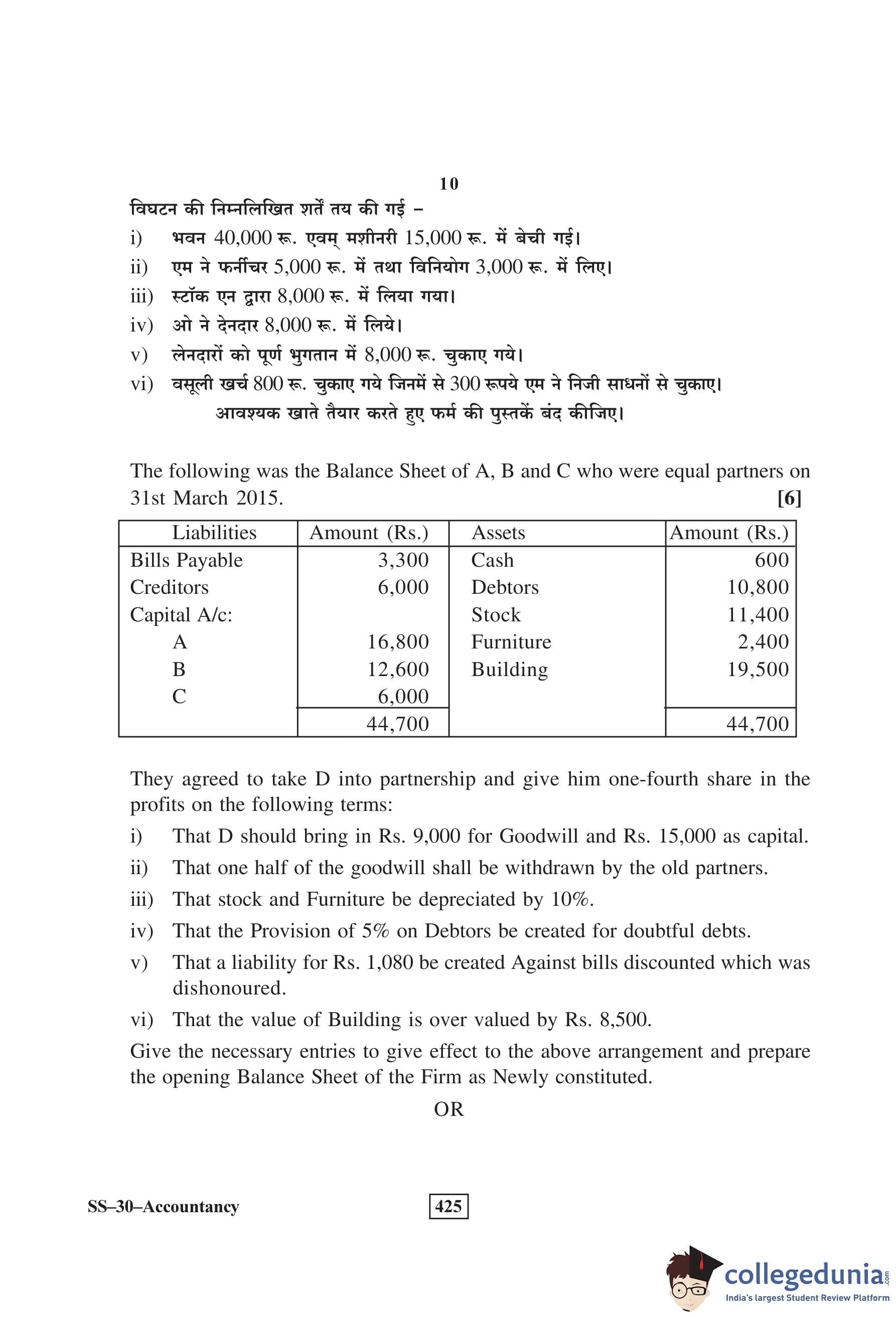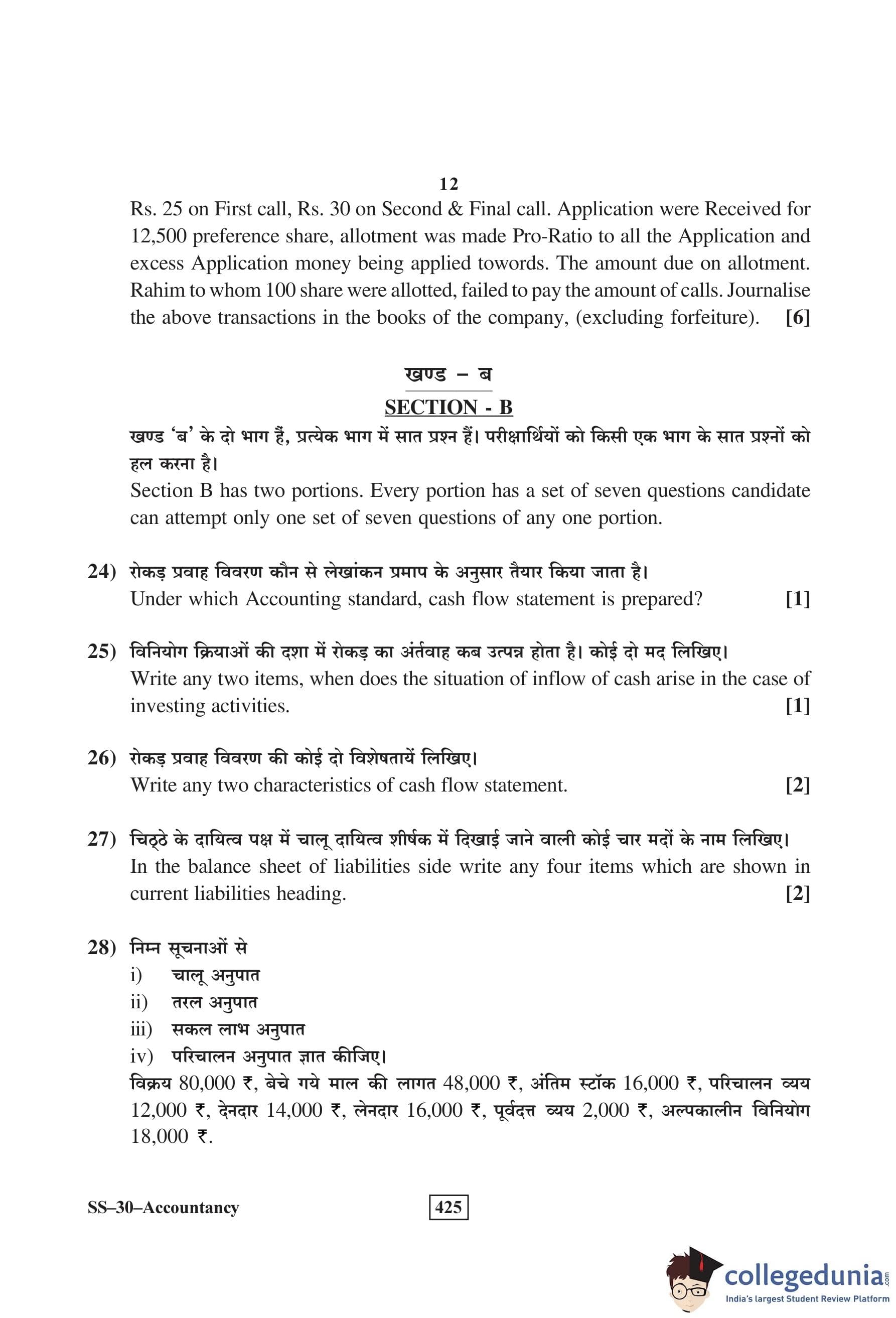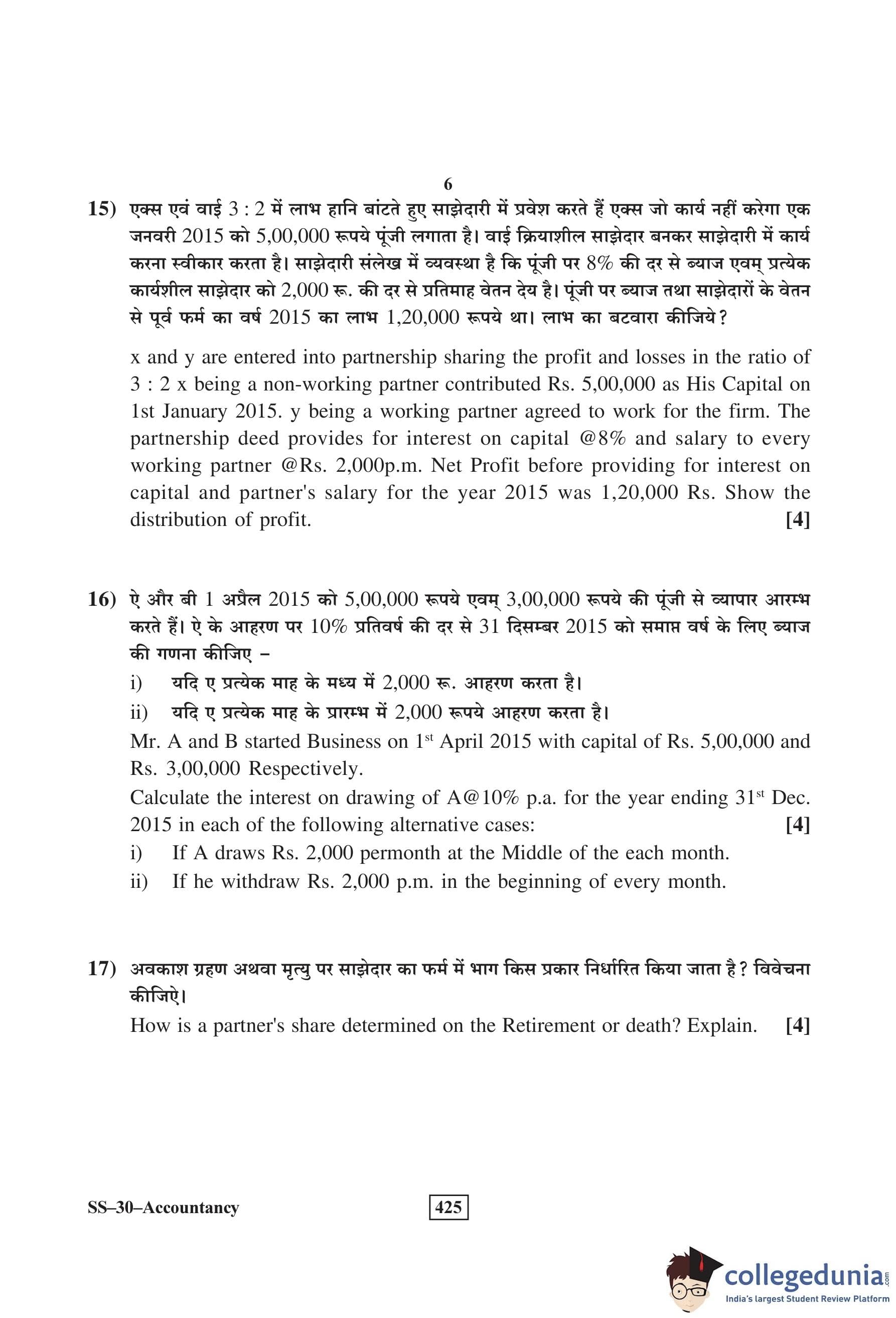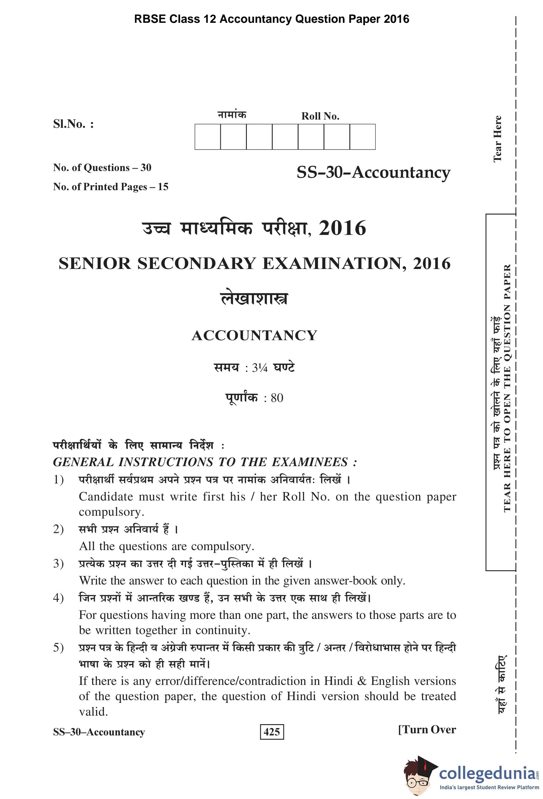 RBSE Class 12 Accountancy Question Paper 2016 with Answer Key pdf is available for download here. The exam was conducted by Board of Secondary Education Rajasthan (BSER) on March 8, 2016 in the Morning Session 8:30 AM to 11:45 AM. The question paper comprised a total of 30 questions divided among 2 sections.